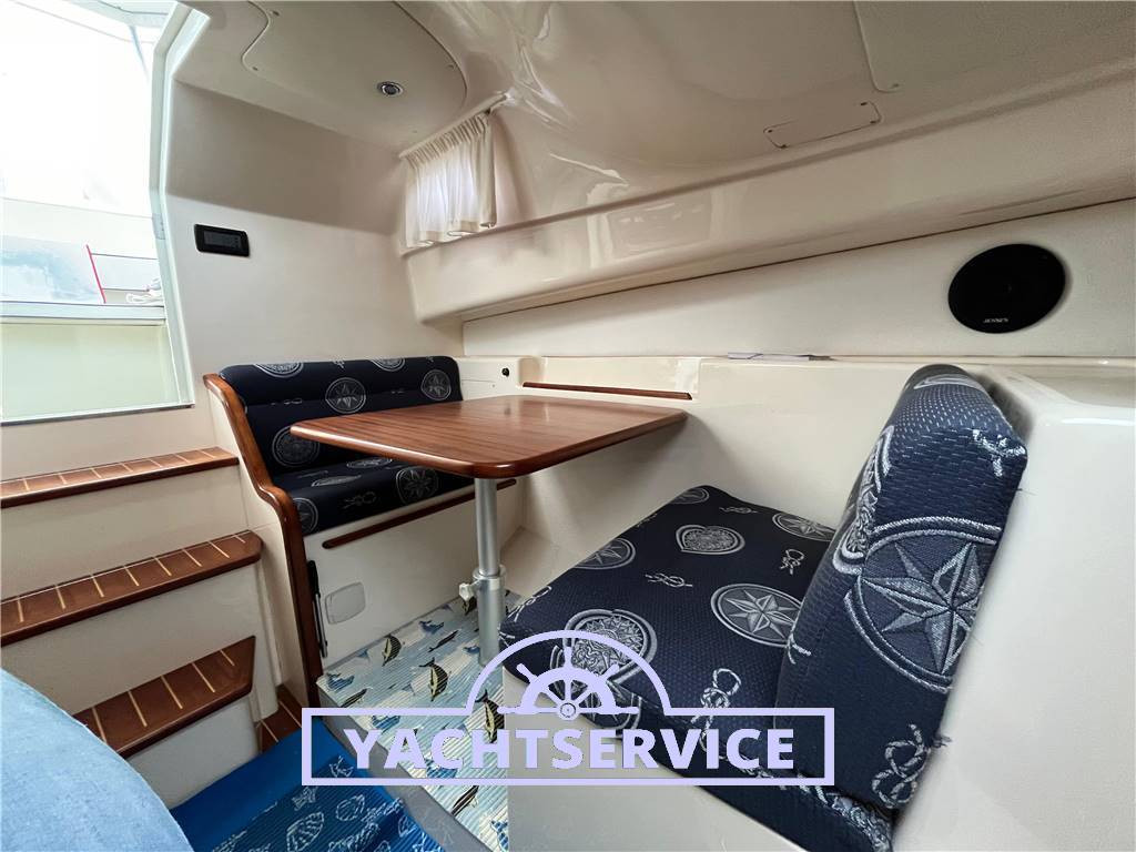 Notas internasDOPPIA DINETTE CON TAVOLO ABBATTIBILE E TRASFORMABILE IN LETTO, WC SEPARATO CON DOCCIA, LAVELLO E WC ELETTRICO. FRIGO DA 42 LT. Notas de la instrumentaciónAUTOPILOTA RAYMARINE, BUSSOLA, ECOSCANDAGLIO CON SONDA PASSANTE DA 1KW, GPS, PLOTTER RAYMARINE C 120 DA 12?, RADAR RAYMARINE, VHF RAY 218E, STEREO.BOILER, IMPIANTO ACQUE GRIGIE. DOPPIE BATTERIE DA 200 AH, 2 SERBATOI CARBURANTE DA 220 LITRI IN ACCIAIO. SERBATOIO ACQUA 120 LT. Notas de armamentoTUNA DOOR SULLO SPECCHIO DI POPPA, POMPA LAVAGGIO POZZETTO E VASCA DEL VIVO.T-TOP ORIGINALE IN ACCIAIO E VTR, TELI CHIUSURA POSTAZIONE DI GUIDA + TENDALINO ESTRAIBILE POZZETTO NUOVI, 2 ELICHE DI RISPETTO. ATTACCO PER CAVO BANCHINA IN POZZETTO, 2 INGRESSI 12V. IN POZZETTO. PASSERELLA ALLUMINIO MANUALE. PREDISPOSIZIONE TAVOLO IN POZZETTO CON TAVOLO IN LEGNO, REALIZZATE 2 PANCHE ABBATTIBILI AI LATI DEL POZZETTO. CUSCINI ESTERNI COMPLETI E NUOVI COMPRESI IL CUSCINO PARACOLPI POZZETTO + PRENDISOLE A PRUA. SCALA BAGNO. CUCINA A 2 FUOCHI A GAS + LAVANDINO. INTERNAMENTE TROVIAMO UN OPEN SPACE CON LETTO MATRIMONIALE A PRUA, DOPPIA DINETTE CON TAVOLO ABBATTIBILE E TRASFORMABILE IN LETTO, WC SEPARATO CON DOCCIA, LAVELLO E WC ELETTRICO. FRIGO DA 42 LT. VERRICELLO ELETTRICO CON ANCORA E CATENA 10 PORTACANNE PESCA FARO ORIENTABILE A PRUA + 2 FARETTI ILLUMINAZIONE POPPA |