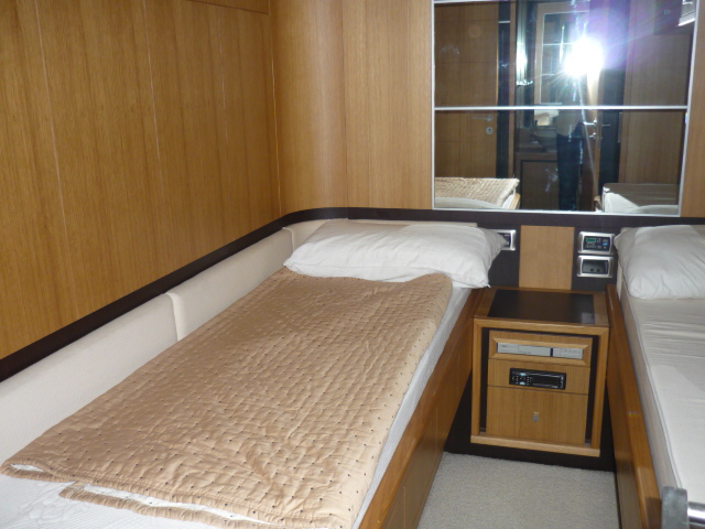 Notas internasCamarotes: 1 camarote VIP-BOW con cama de matrimonio con baño -1 Cabina principal con cama de matrimonio con baño -1 Camarote con 2 camas individuales + baño -1 Camarote con 2 camas de Cruz + baño -CABINAS de AFT 1 con baño Notas de la instrumentaciónGPS/PLOTTER, SONDA, VHF, PILOTO AUTOMÃTICO, RADAR, ANTENA VHF, BRÚJULA, RADIO + ANTENA DE TV, GENERADORNotas de armamentoCALENTADOR DE AGUA, CARGADOR DE AIRE ACONDICIONADO, BOMBAS DE ACHIQUE, AUTOCLAVES, STERN THRUSTER, PROA A PROA, RADIO/REPRODUCTOR DE CD, PLATAFORMA, CABINA DE TECA, DUCHA POPA, NEVERA, PARRILLA AL AIRE LIBRE, FLAPS ELÉCTRICOS, FARO DE PROFUNDIDAD AJUSTABLE, MOLINETE ELÉCTRICO, NATACIÓN PLATAFORMA AFT. |