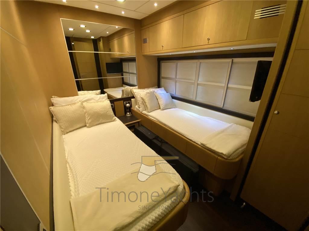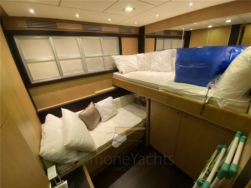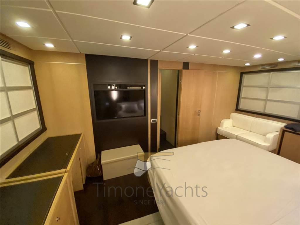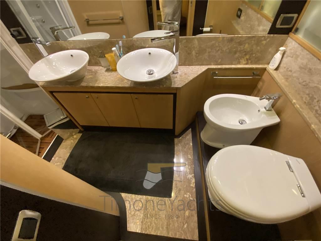 Notas internasDue posti equipaggio molto comodi, con bagno. Squisita la sala macchine dove si gira comodamente intorno a tutti gli impianti. Notas de la instrumentación2 Comando motori elettronico, Contametri catena, Ecoscandaglio, GPS, Pilota automatico, Plotter, Radar.Notas de armamentoAllestimento tecnico e di coperta:Camminamenti laterali in teak, Doccia esterna, Elica di poppa - stern thruster, Elica di prua - bow thruster, Faro orientabile, Flap idraulici, Impianto antincendio, Indicatori Flaps, Lavaggio catena, Luci di cortesia, Luci subacquee, Passerella, Porta laterale, Pozzetto Teak, Presa 220V banchina, Presa acqua banchina, Tavolo pozzetto, 2 Winch tonneggio di poppa, Winch tonneggio di prua. Dotazioni domestiche di bordo: Aria condizionata, BBQ/ Grill, Controllo Domotica, Impianto acque nere, Prese interne 12v, Prese interne 220v, Riscaldamento, 4 WC marino elettrico. Intrattenimento: Antenna Satellitare TV, Decoder satellite, Impianto TV, Radio AM/FM, 6 TV. Cucina ed elettrodomestici: Congelatore, Forno, Frigorifero esterno, Frigorifero interno, ICE Maker, Lavasciuga, Lavastoviglie, Piastra elettrica. Tappezzerie: Bimini (fly awning with 4 poles (no bimini)), Cuscineria completa, Cuscineria di poppa, Cuscineria di prua, Cuscineria fly, Cuscineria Pozzetto, Telo Copertura Fly, Telo copriconsolle, Telo coprisedile. |