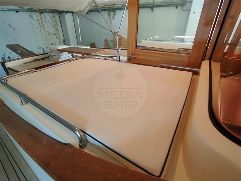 Notas internasNotas de la instrumentaciónBussola, Ecoscandaglio, Pilota automatico, Radar, Radio VHF.Notas de armamentoAllestimento tecnico e di coperta:Ancora, Elica di prua - bow thruster, Passerella, Piattaforma, Pompa di sentina elettrica, Scaletta da bagno, Tavolo pozzetto, Winch. Dotazioni domestiche di bordo: Aria condizionata. Cucina ed elettrodomestici: Congelatore, Forno, Frigorifero interno (Electric), Ghiacciaia, Lavastoviglie, Lavatrice, Microonde, Piastra in vetroceramica. Tappezzerie: Bimini. |