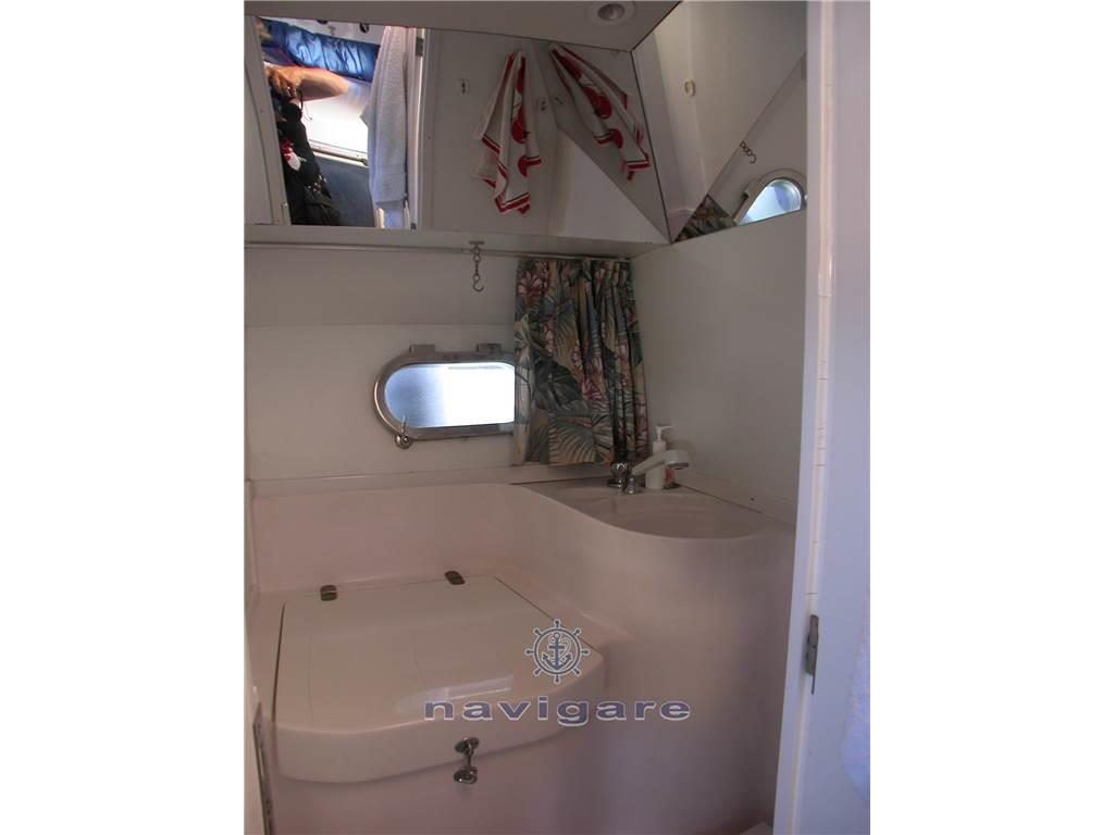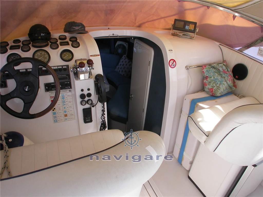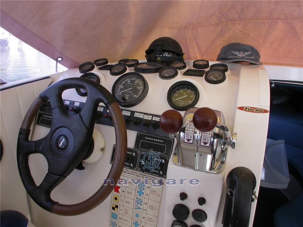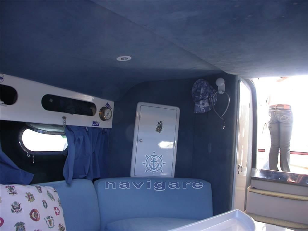 Notas internasNotas de la instrumentaciónAutoclave, Batterie, Bussola, Caricabatterie, Ecoscandaglio, Flap elettrici, GPS, Luci di cortesia, Pompa di sentina automatica, Pompa di sentina elettrica, Presa 220V banchina, Radio VHF, Scaletta da bagnoNotas de armamentoSin dal primo gennaio del 1969 la mia scelta progettuale ha sempre tenuto conto di tre elementi basilari: bellezza - affidabilità - velocità. In tanti anni ho soddisfatto clienti sparsi in tutto il mondo, gli scafi firmati "Tullio Abbate" hanno solcato e solcano mari ed acque interne, e hanno avuto come proprietari nomi illustri degli sport. Inutile dirvi che avere accontentato questi clienti, vuol dire essere in grado di offrire un prodotto pressochè unico, che si pone ai vertici della più alta fascia del mercato nautico internazionale." |