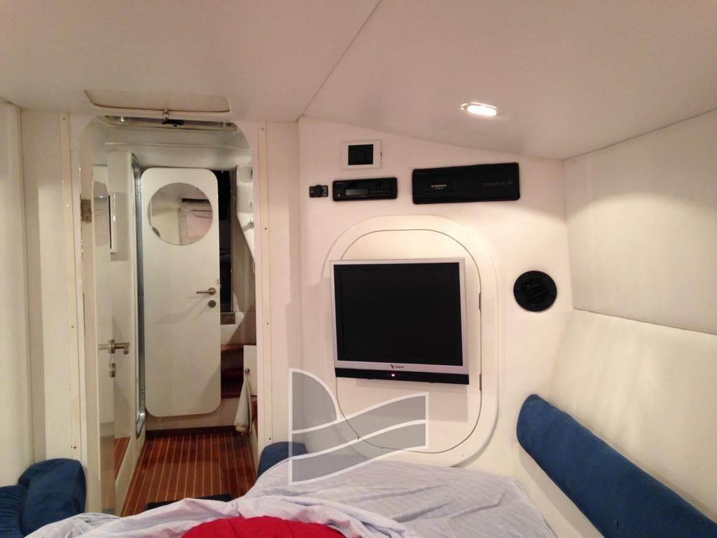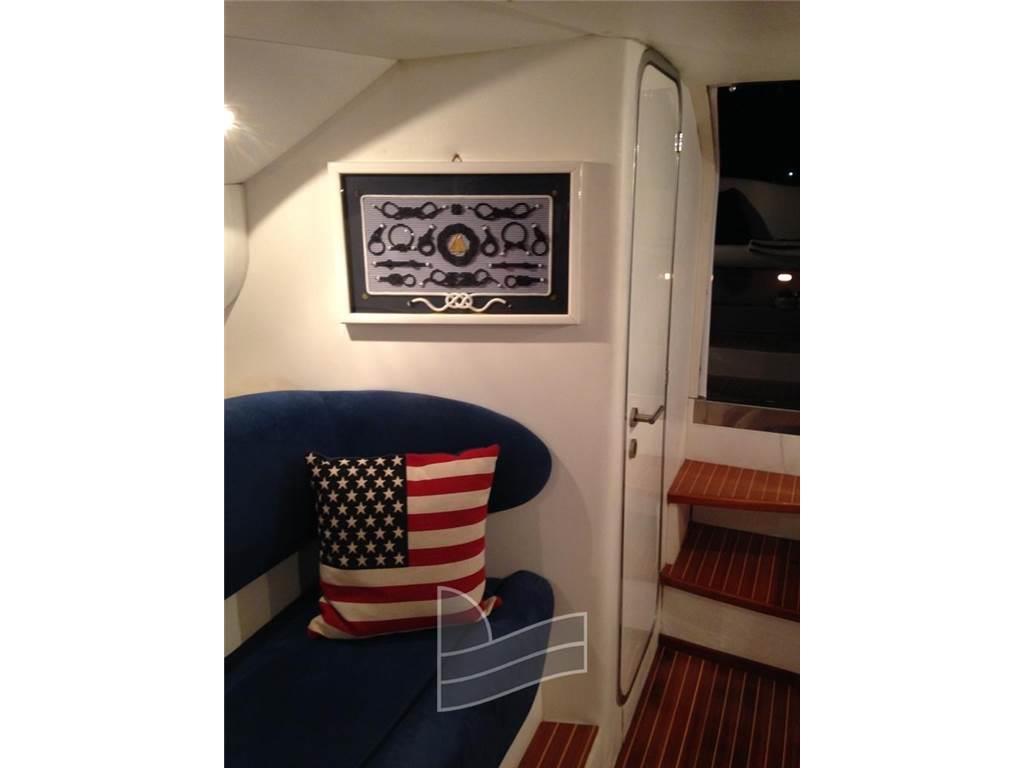 Notas internasNotas de la instrumentaciónAncora, Angolo barra, Apertura Vano Motore Elettrica, Bussola, Caricabatterie, Doccia esterna, Ecoscandaglio, 2 Flap elettrici, Plotter con antenna GPS, Pompa di sentina elettrica, Pompa di sentina manuale, Presa 220V banchina, Radio VHF, Salpa Ancore Elettrico, Scaletta da bagno, Sedile Copilota, TrombaNotas de armamentoAltoparlanti, Aria condizionata, Boiler, Cappottina, Copripozzetto, Cuscineria di poppa, Frigorifero interno, Impianto TV, Pavimento interno in legno, Prese interne 12v, Prese interne 220v, Telo copriconsolle, TV, WC marino elettrico |