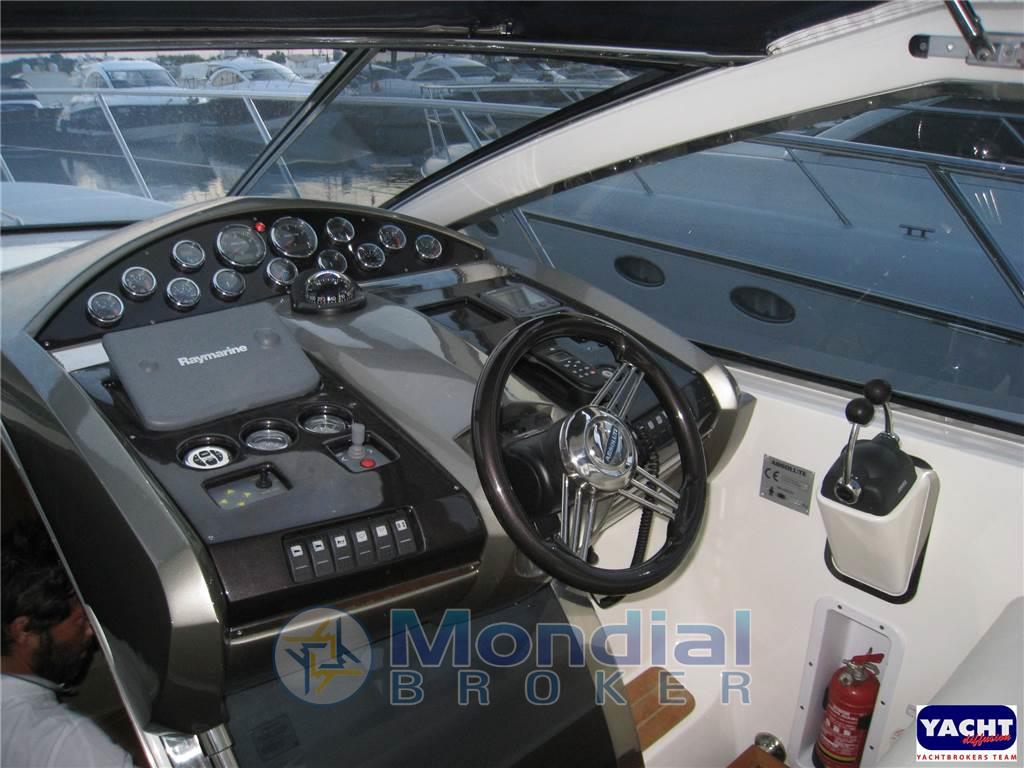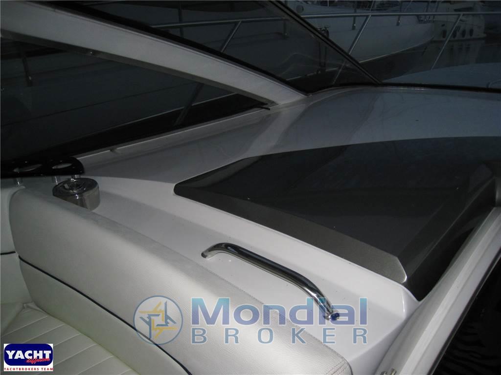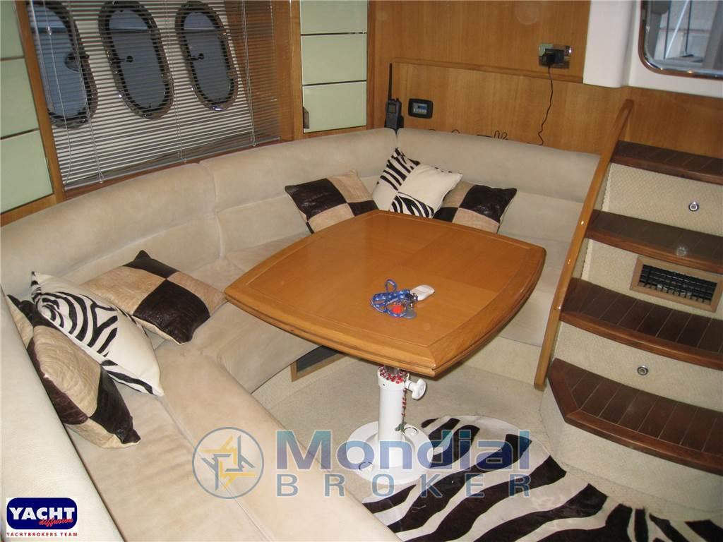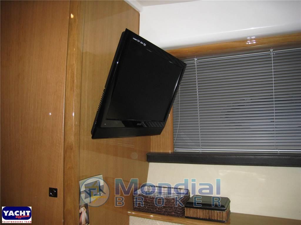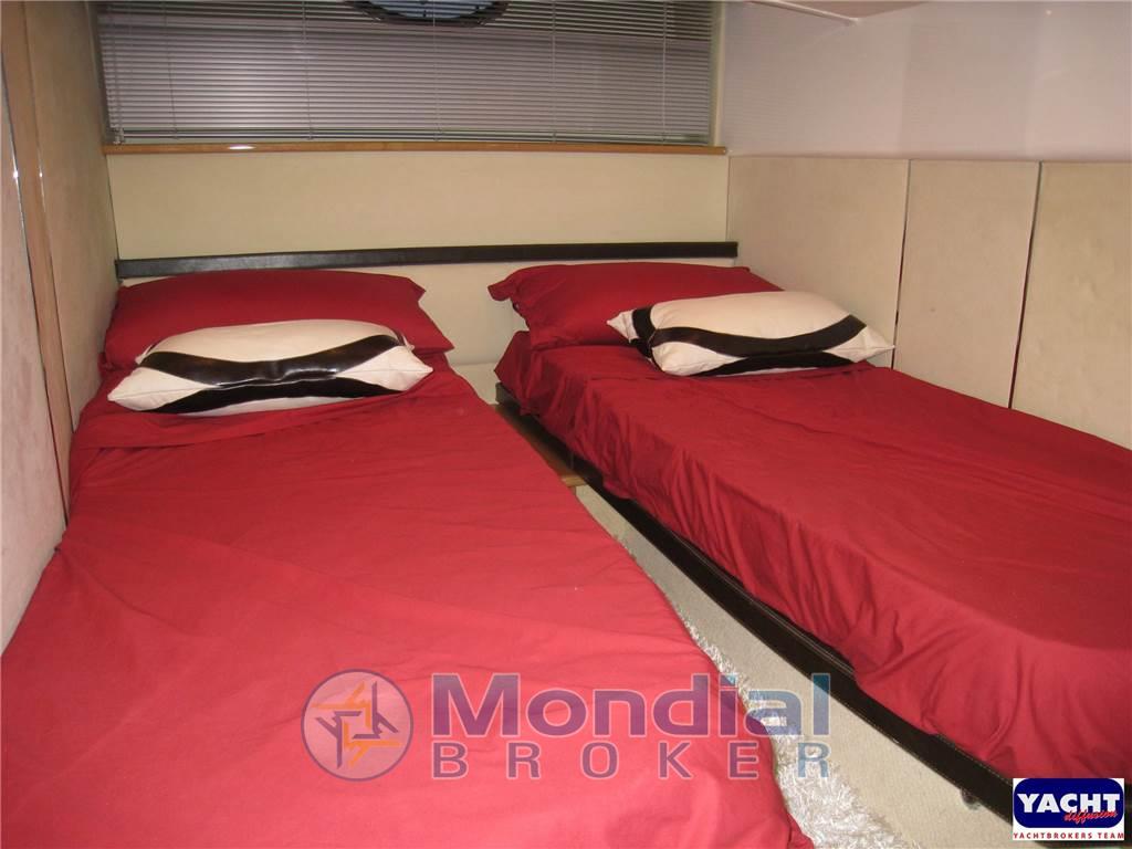 Notas internasNotas de la instrumentaciónAngolo barra, Bussola, Computer di bordo, Contametri catena, Contamiglia, Display, Ecoscandaglio, GPS (Garmin), Pilota automatico, Plotter, Radio VHF.Notas de armamentoAllestimento tecnico e di coperta:Allarme motore, Allarme sentina, Apertura Vano Motore Elettrica, Autogonfiabile, Doccia esterna, Elica di prua - bow thruster, Faro orientabile, Flap idraulici, Garage per tender, Impianto antincendio, Indicatori Flaps, Luci di cortesia, Luci subacquee, Passerella (Idraulica), Piattaforma, Pompa di sentina automatica, Pompa di sentina manuale, Pozzetto Teak, Presa 220V banchina, Presa acqua banchina, Raddrizzatore, Rollbar, Salpa Ancore Elettrico, Scaletta da bagno, Sistema Depurazione acque nere, Tavolo pozzetto, Tavolo Salone Abbattibile, Tromba. Dotazioni domestiche di bordo: Aria condizionata, BBQ/ Grill, Clima reversibile, Impianto acque nere, Prese interne 12v, Prese interne 220v, Serbatoio Acque Nere, 2 WC marino elettrico. Dotazioni di sicurezza: Giubbetti di salvataggio. Intrattenimento: Altoparlanti, Decoder satellite, Impianto TV, Meccanismo saliscendi per TV, Radio AM/FM, Stereo, TV. Cucina ed elettrodomestici: Cucina, Frigorifero esterno, Frigorifero interno (LT 145), Ghiacciaia, Macchina caffè, Microonde, Piastra in vetroceramica. Tappezzerie: Cappottina, Cuscineria completa, Cuscineria di poppa, Cuscineria di prua, Cuscineria Pozzetto, Oscuranti, Teli copri finestra, Telo copriconsolle, Tendalino, Zanzariere. |