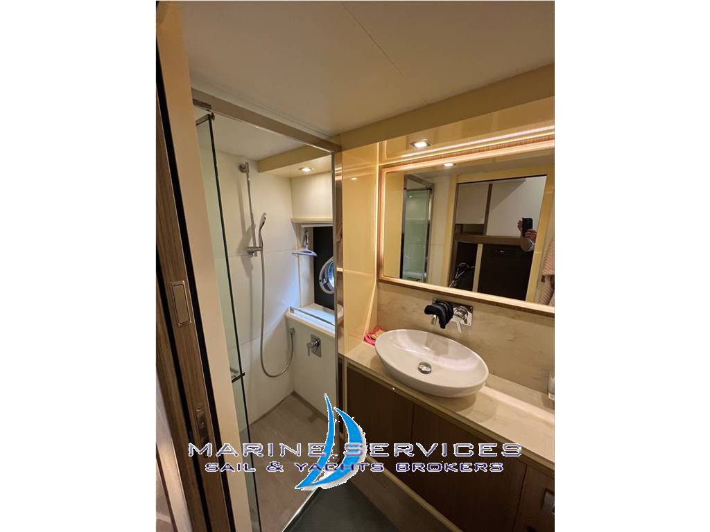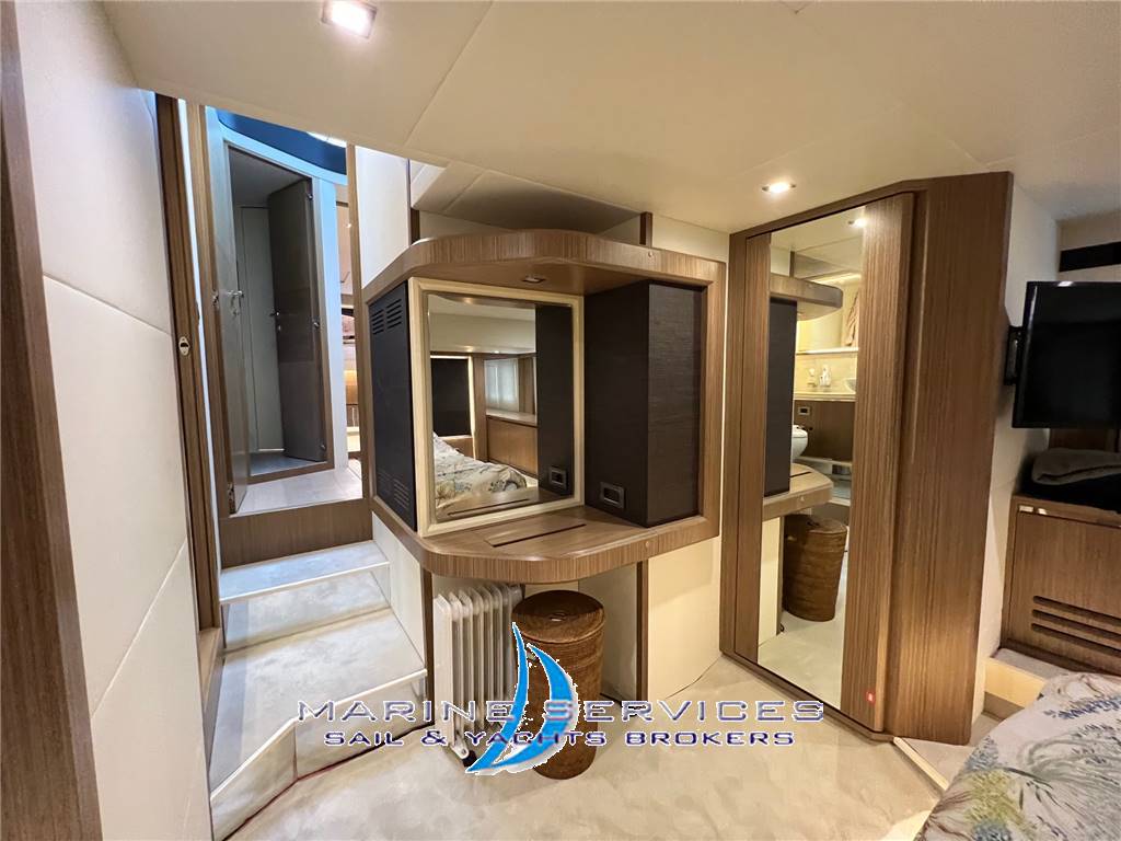 Notas internasMaster cabin a centro barca : Letto matrimoniale + bagno privato con box doccia - Cassaforte , TV . Guest cabin: 1 Letto matrimoniale + bagno con box doccia e doppio accesso intrno e disimpegno , TV. Guest cabin : 2 Letti singoli in piano Finiture Legno Chiaro - Parquet salone e scale accesso cabine Moquette nelle cabine nuova 2023 Cucina attrezzata con frigorifero , freezer, lavastoviglie Siemens , piano cottura 4 fuochi induzione , forno combinato Smeg, wine cooler e ice maker . Divani salone in Pelle beige , dinette trasformabile , TV a scomparsa Disposizione : attraverso la porta vetrata scorrevole si accede alla zona cucina , posizionata tra il pozzetto esterno e il salone. Un solo gradino separa la cucina dal salone. La zona pranzo è composta da un grande divano e da un tavolo allungabile fino a mt 0.80 x 145 cm, permettendo a 6/8 ospiti di pranzare comodamente.Quando il tavolo è chiuso la zona pranzo diventa zona conversazione arredata con due divani contrapposti Finiture di qualità: falegnameria, ferramenta, illuminazione e impianti tutti scelti e realizzati con estrema cura . Scendendo la scaletta posta a sinistra della timoneria, arriviamo al ponte inferiore che ospita tre cabine e due bagni . -Cabina armatoriale a tutto baglio di 4,5 metri e con una lunghezza di 3,5 metri ( circa 15 metri quadrati ), dotata di diverse finestrature laterali e di un divano di oltre 2 metri . Il letto misura 200 x 150 cm , l'altezza interna supera i 190 cm. Lo spazio di stivaggio è eccellente e vi si trova inoltre un mobile toilette dotato di specchio e sgabello. . il bagno armatoriale è spazioso e include un box doccia separato. . - cabina Vip a prua molto luminosa. Arredata con un letto di 140 x 200 cm, ha un'altezza di 110 centimetri sopra il materasso e presenta tre finestre e un oblò. - cabina ospiti con due letti singoli di 80 x 200 cm . Nel ponte inferiore tutti gli ambienti , due bagni compresi , non misurano meno di 190 cm di altezza. Esterni Volumi esterni generosi , flybridge di circa 28 mq con tavolo pranzo e un grande divano a U, può ospitare comodamente 6-8 persone .Prima della zona pranzo e accanto alla timoneria, un secondo divano ospita 5-6 posti a sedere , oltre all'enorme prendisole del flybridge .Sia a prua che a poppa sono presenti altri due prendisole, ognuno dei quali può ospitare fino a 3 persone. In particolare, la zona del pozzetto di poppa sfrutta la parte superiore delle sedute con schienale scorrevole per creare il terzo prendisole dell'imbarcazione .Il pozzetto di poppa ospita un divano a sei posti e un tavolo da 80 x 120 cm. Notas de la instrumentaciónElettronica completa :Radar GPS VHF Schermo Volvo EVC 7 Autopilota Contametri catena AUDIO VIDEO 3 Televisions LED con Wifi e Bluetooth - Master cabin , Salone e Cabina VIp Décoder digitale terrestre Lettore Blu-ray ( europe) Antenna TV Sat Notas de armamentoDotazioni di Sicurezza CompleteInverter 1800W Presa acqua dolce per lavaggio ponte esterno Luci di cortesia per Fly e passavanti Serbatoio acque nere e grigie Bimini su Fly Tenda elettrica privacy in pozzetto Cappottina chiusura invernale poppa Telecamera a poppa Luci subacquee Desalinizzatore Aria condizionata Generatore I.S.16 B - 15,3kw Elica di Prua BBQ cockpit a poppa Inverter 1800 W Passerella idraulica Plancetta idraulica Rivestimento Teak plancetta òpoppa e scalini salita a Fly Ice maker Wine cooler Vitrifrigo in salone Frigo aggiuntivo su Fly Tender Plastimo con motore elettrico Torqeedo |