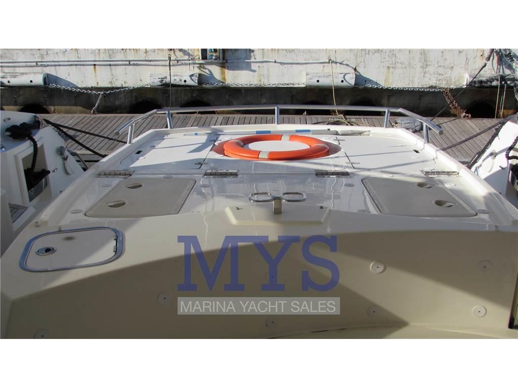 Notas internasSottocoperta volumetrie e piani di calpestio molto ben strutturati, a vantaggio di ambienti ariosi ed eleganti. L’allestimento prevede tre cabine, la VIP di prua, la ospiti a letti sovrapposti e l’armatoriale a tutto baglio, nella parte mediana della barca verso poppa. Due le toilette, entrambe fornite di cabina doccia separata; cambusa e dinette contrapposte a centro barca. Notas de la instrumentaciónAISGPS VHF Log Bussola Ecoscandaglio Pilota automatico Plotter Comando motori elettronico Joystick Tromba Antenna radar Radar Faro orientabile Indicatori Flaps Flap elettrici Contametri catena Salpa Ancore Elettrico Winch tonneggio di poppa Presa 220V banchina Caricabatterie Inverter Prese interne 24v Prese interne 220v Luci di cortesia Altoparlanti Stereo Radio AM/FM Impianto TV 5 TV Presa acqua banchina Boiler 60lt/h Aria condizionata Clima reversibile Congelatore Frigorifero esterno Frigorifero interno ICE Maker Lavastoviglie Grill Garage per tender Passerella Piattaforma Notas de armamentoColorazione speciale bluHard top Cuscineria completa Cuscineria di poppa Cuscineria di prua Cuscineria Pozzetto Pozzetto Teak Tavolo pozzetto Doccia esterna Tender Scaletta da bagno Bimini Tendalino Cappottina Copripozzetto |