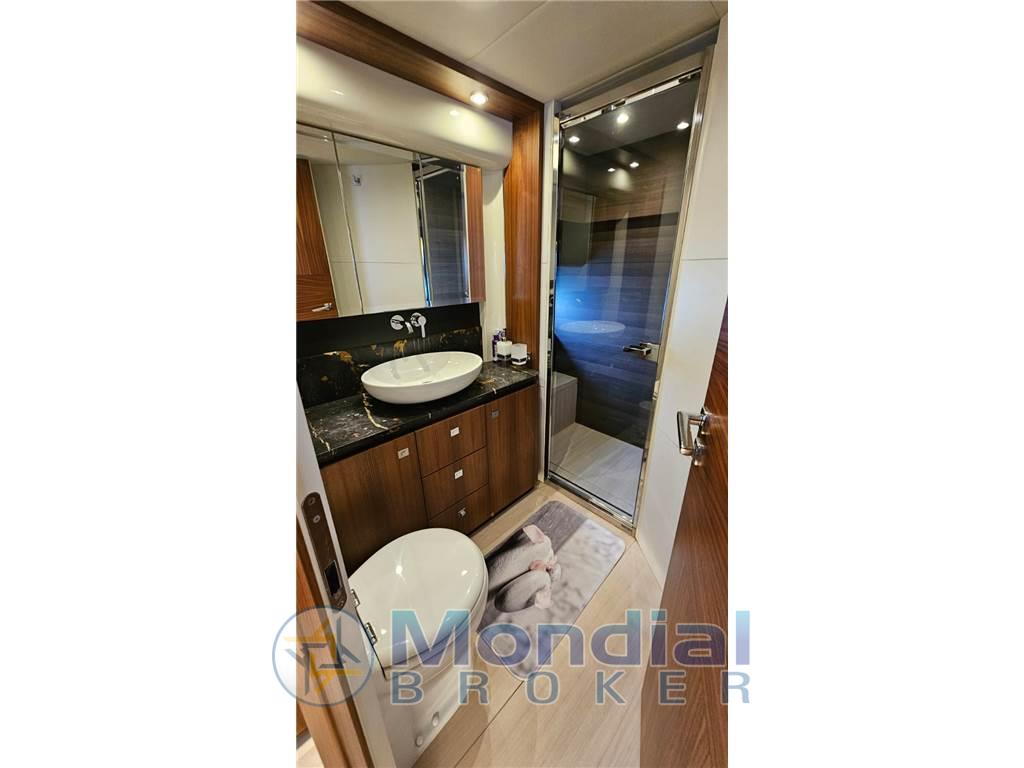 Notas internasNotas de la instrumentaciónAngolo barra, Antenna radar, Bussola, Comando motori elettronico, Computer di bordo, Contametri catena, DSC vhf, Ecoscandaglio, Pilota automatico, Plotter con antenna GPS, Radar, Radio VHF.Notas de armamentoAllestimento tecnico e di coperta:Allarme motore, Colorazione speciale (White Hull), 2 Doccia esterna, Elica di prua - bow thruster, Faro orientabile, Flap elettrici, Hard top, Impianto antincendio, Luci di cortesia, Passerella (Electrohydraulic letter box type), Piattaforma (with tender lift system), Porta laterale, Pozzetto Teak, Presa acqua banchina, Scaletta da bagno, Stabilizzatori (Seakeeper 9), Tavolo pozzetto (Teak), 2 Winch tonneggio di poppa. Dotazioni domestiche di bordo: Aria condizionata, Clima reversibile, Dissalatore (HP Watermakers), Impianto acque nere, Pavimento interno in legno, Prese interne 220v, Serbatoio Acque Nere, 3 WC marino elettrico. Intrattenimento: Antenna Satellitare TV, Decoder satellite, Impianto TV, Stereo, TV. Cucina ed elettrodomestici: Congelatore, Forno, Frigorifero esterno, Frigorifero interno, ICE Maker, Lavasciuga, Piastra in vetroceramica. Tappezzerie: Copripozzetto, Cuscineria completa, Teli copri finestra, Telo Copertura Fly, Telo copriconsolle, Telo coprisedile, Tenda Elettrica, Zanzariere. |