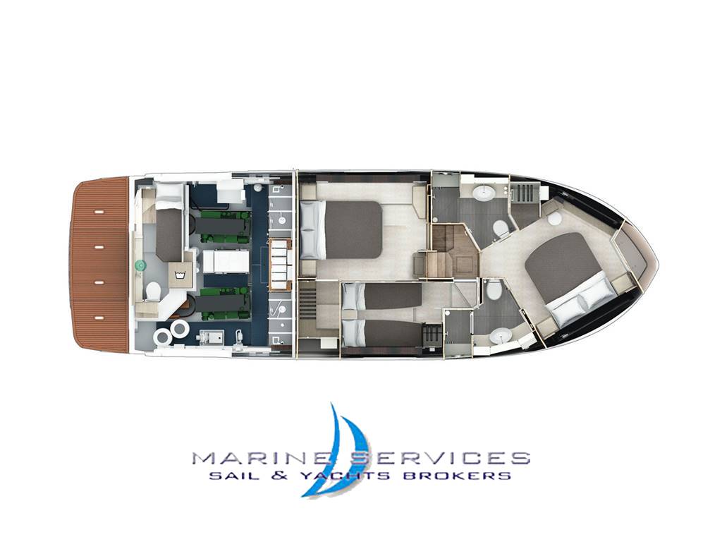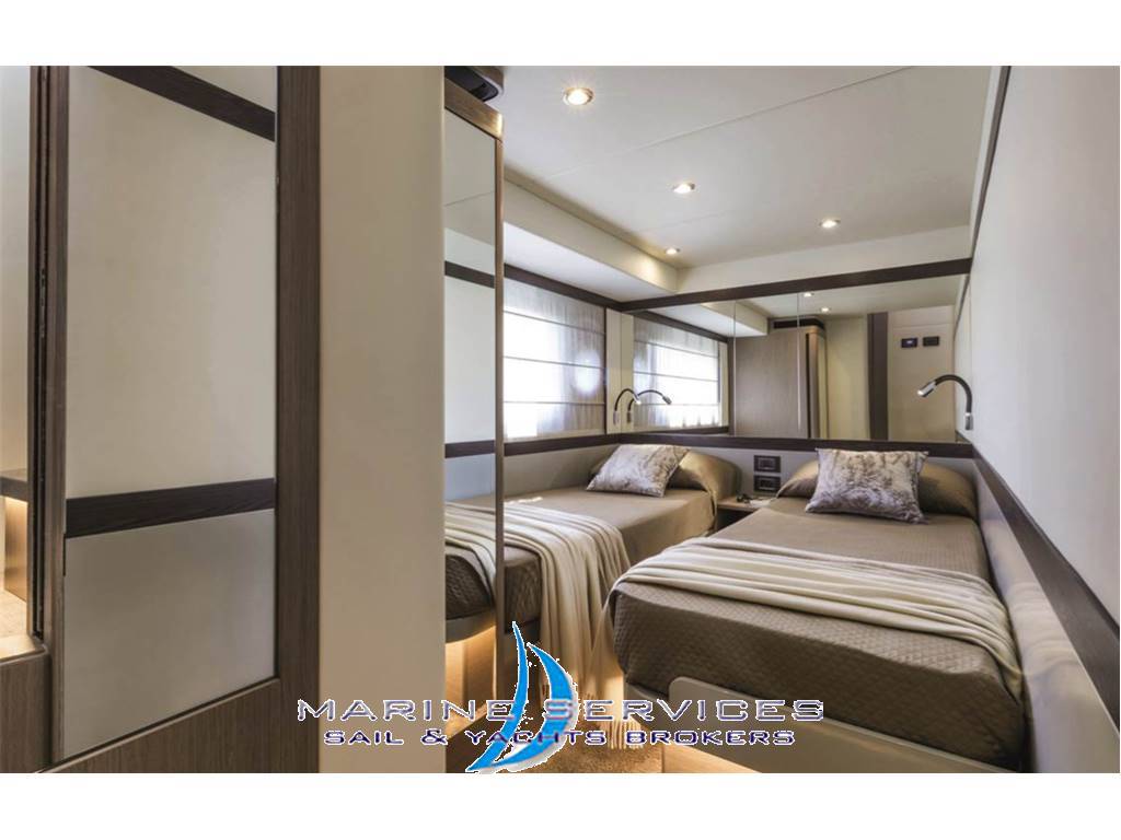 Notas internasPonte principale : cucina situata all'ingresso , salone con divani contrapposti rivestiti in tessuto , zona timoneria con sedile pilota in pelle .Tv a scomparsa . Porta laterale per accesso a camminamento Aria condizionata in tutti i vani Ponte inferiore: Cabina armatore a centro barca con bagno ensuite , Tv , cabina armadio Cabina Vip matrimoniale a prua con Tv Cabina ospiti doppia trasformabile in matrimoniale Secondo bagno ospiti con doccia wc elettrico La Cabina di poppa esterna è adibita a spazio storage e ricambi ospita anche lavatrice Notas de la instrumentaciónElettronica completa :Radar GPS Garmin doppio schermo 12" - doppia postazione ECV Volvo penta 7" Pilota automatico Joystick Manovra VHF Antenna Glomex Notas de armamentoPlancetta Poppa idraulicaElica di prua Tavolo pozzetto in teak Bimini su fly Argani tonneggio a poppa Chiusura completa invernale su fly e pozzetto poppa Set coperture completo per cuscinerie esterne Cuscineria prendisole a prua Mobile attrezzato su fly con BBq, Frigo e lavello Ampio vano Storage con accesso da plancetta poppa Lavatrice Wine cooler in cucina Tender con motore Fb |