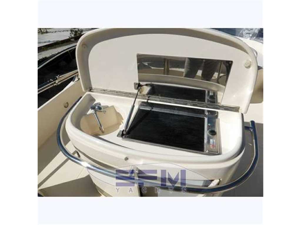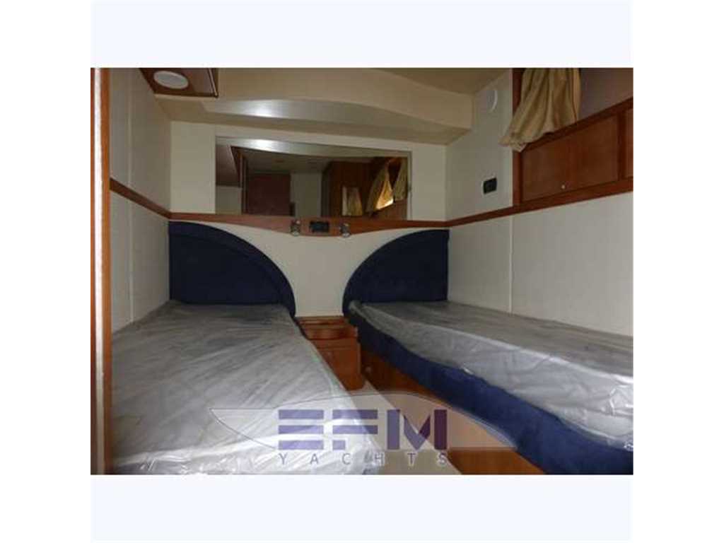 Notas de armamentoElica di prua - raddrizzatore - gruppo elettrogeno maggiorato - climatizzatore automatico , riscaldamento - lavastoviglie - Forno grill Sharp- frigo 120 lt. con congelatore Copriparabrezza parasole completi nuovi - cuscinerie eterne prendisole prua e fly complete in ski bianco TUTTE come nuove - mobile con lavabo barbecue e frigo sul fly - passerella idraulica besenzoni con inserti in teak - luci di cortesia pozzetto e camminamenti - ancora Bruce con catena del 12 e con comando salpancore in timoneria con contacatena - Zattera da revisionare - 2 winches per tonneggio a poppa - impianto antincendio automatico - Wc elettrici con casse acque nere - Dotazioni di sicurezza complete per normativa italiana - Scafo e Coperta - Accessori di coperta in acciaio inox - Accesso ai locali ausiliari e al vano motori dal pozzetto - Alloggiamento catena ancora - Alloggiamento in pozzetto (2) per bitte passacavi lavandini e tonneggi - Ancora Bruce kg 40 con catena 75 mt - Avvisatore acustico a compressore - Barbotin 10 mm - Bitte a mezza barca (1 per lato) - Bitte a prua (1 per lato) - Bitte a poppa (1 per lato) - Bottazzo in acciaio inox - Camminamenti antisdrucciolo - Cassapanca di poppa con accesso cabina marinaio - Cavo per allacciamento 220V a banchina - Comandi elettronici per gas e invertitori MMC - Doccia acqua calda/fredda nel pozzetto - Accesso alla plancetta di poppa con chiusura - Dotazione di salvataggio per 8 persone composta da: Zattera da 8 persone, Razzi, Cassetta medicinali, Giubbotti salvagenti a corpetto (8) - Estintori da 1 kg omologati (5) TUTTO DA CONTROLLARE - Finestrature in cristallo temperato incassate nella vetroresina - Finestrature con aperture laterali - Flaps idraulici - Gaffa alloggiata - Gavone ampio a poppa - Gavone pozzetto con apertura manuale - Gruppo elettrogeno nel gavone di poppa - Imbarchi gasolio con portelli di copertura - Luci di navigazione - Luci pozzetto - Musone ancora in acciaio inox - Parabordi - Passacavi inox (4) - Passerella Besenzoni elettroidraulica con telecomando, finitura in teak, 2,5 mt - Plancetta di poppa allungata ricoperta in teak - Presa banchina in pozzetto 50A con cavo - Porta di accesso al salone in acciaio inox e cristallo temperato a due ante - Pozzetto e plancetta ricoperti in teak - Pulpito di prua con battagliole laterali e cavo centrale - Ripostigli nei laterali della plancetta di poppa - Scala bagno a scomparsa nella plancetta di poppa - Scala accesso fly in vetroresina con gradini ricoperti in teak - Scalini accesso camminamento laterale in teak - Serbatoi inox acqua e gasolio - Tergi-lavavetri elettrici - Tientibene e accessori in acciaio inox - Timoneria idraulica - Valvole intercettazione carburante a distanza - Vani laterali con chiusura nel pozzetto (2) - Vericello elettrico salpa ancora 1000 W con comando a prua in plancia e fly - Impianto Idrico - Autoclave con vaso di compensazione - Boiler 220V - Impianto acque grigie con serbatoio - Impianto lavaggio wc ad acqua dolce - Linea acqua calda/fredda in tutti i bagni, in pozzetto ed in cucina effettuata tramite miscelatori monocomando - Vaschetta di raccolta-espulsione automatica delle acque grigie.
