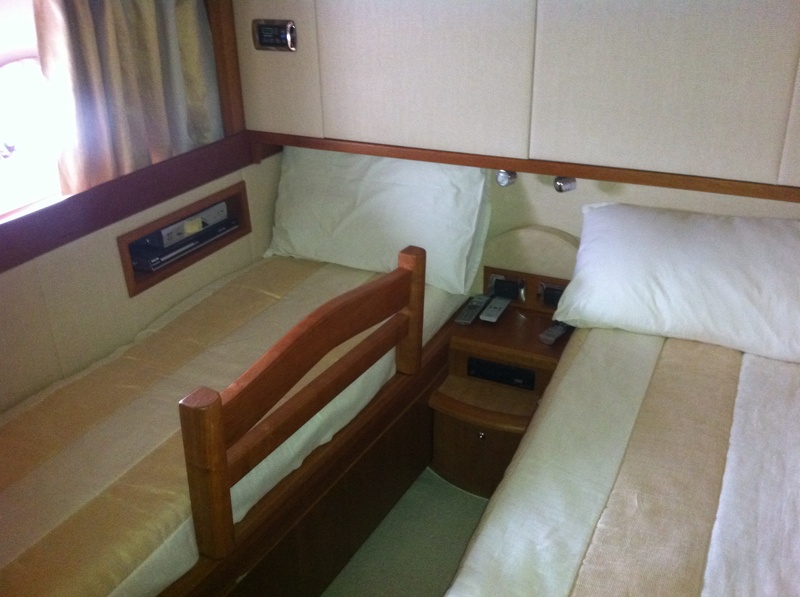Notas internasSegún la mesa y un sofá frente a 6 personas. Panel de Control central. la cabina en el centro del barco con una cama doble, baño privado con servicios de cerámica y ducha con hidromasaje. camarote de proa vip con cama doble y baño privado con ducha y cerámica. camarote de estribor con dos camas individuales. durante el dÃa cuarto de baño con ducha y servicios. cabina con cama y baño. acceso independiente del pecho de la cabina Interior Descripción: piloto doble silla. Sofá en forma de C con iluminación suave mate muebles de cerezo con estantes Notas de la instrumentaciónPrincipal: instrumental de tablero de comando y sistema de vigilancia.RADAR Chartplotter, RAYMARINE E 120 color piloto automático ST 6001 PLATINUM rayethon + interfaz y timón ángulo colgajo indicador tridata velocÃmetro electrónico VHF semillas dúplex con hélice Stern comando niveles de indicador de brújula magnética repetida sobre la marcha de la BOWTHRUSTER de indicadores del comando comandos: herramientas Notas de armamentoTECA en cubierta en los pasillos y los molinetes de cabrestante de volar 2 1000w pasarela con licitación licitación puede alcanzar 350 Kg longitud 3,0 m iluminación submarina. lavadora con función secador.sistema de aire acondicionado de 36000btu con ajuste digital en todos los ambientes. Antena TV digital por satélite cubierta de soláriums de LCD (cielo) nº 4 lonas cristal hojas mosca seti de placas y gafas para tops de 6 personas y guardabarros de licitación de amarre 6 motor 15 cv 3.30 con equipos de seguridad |