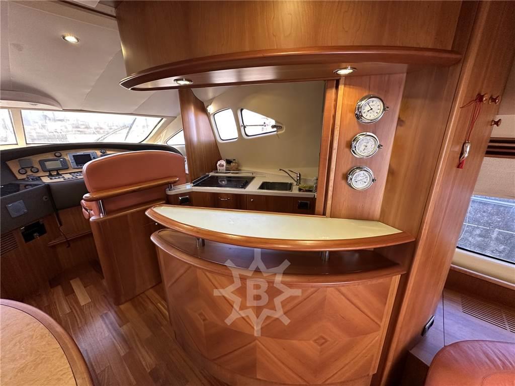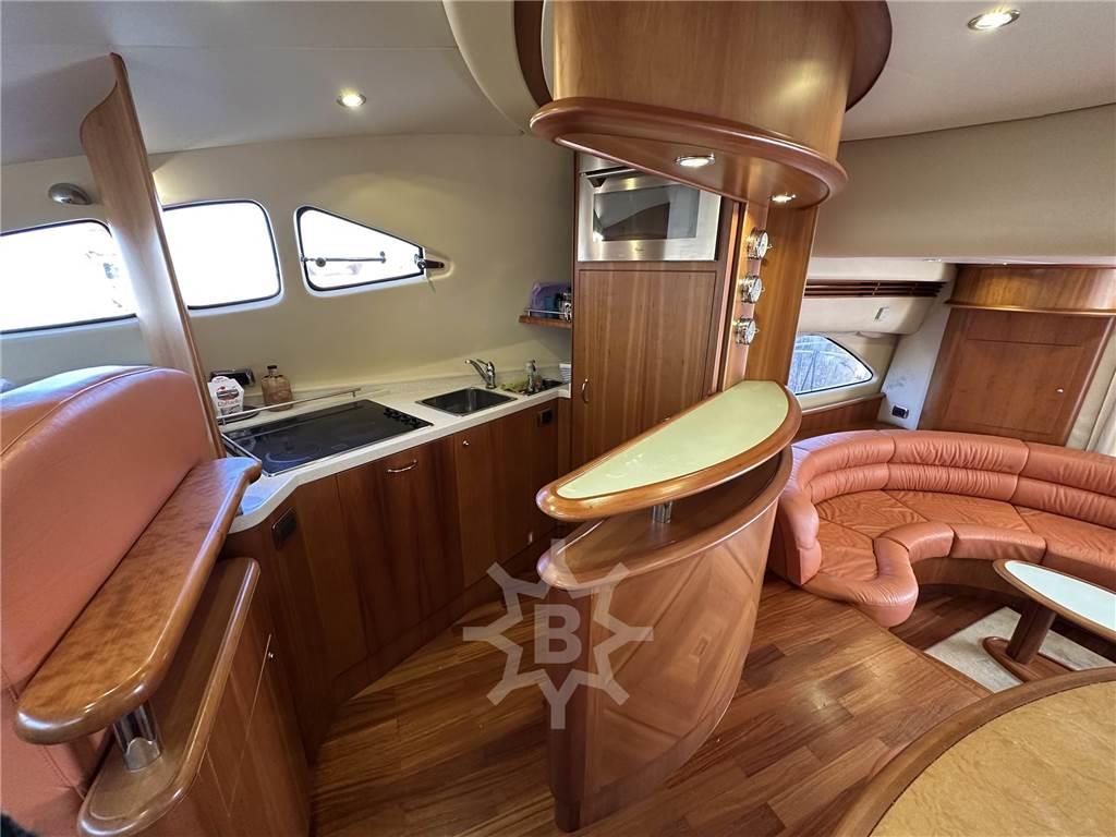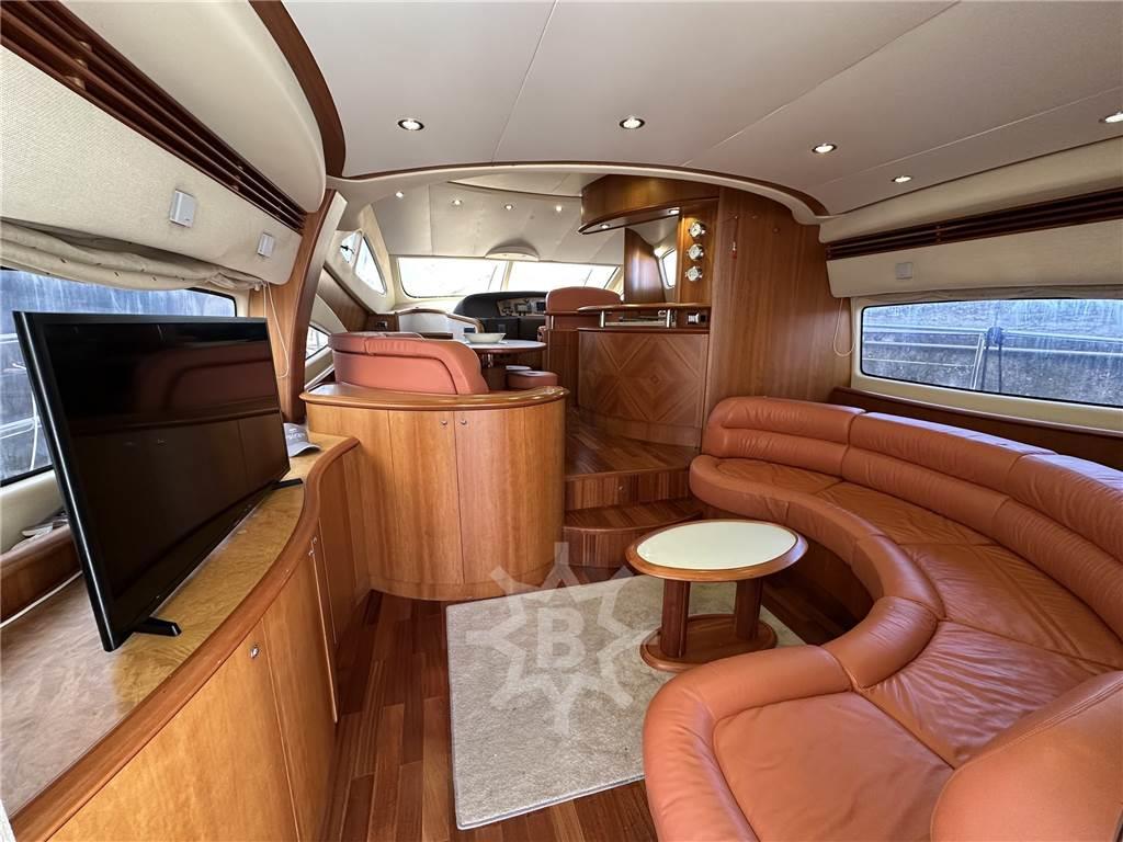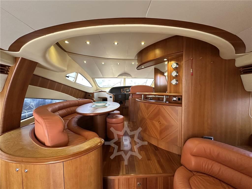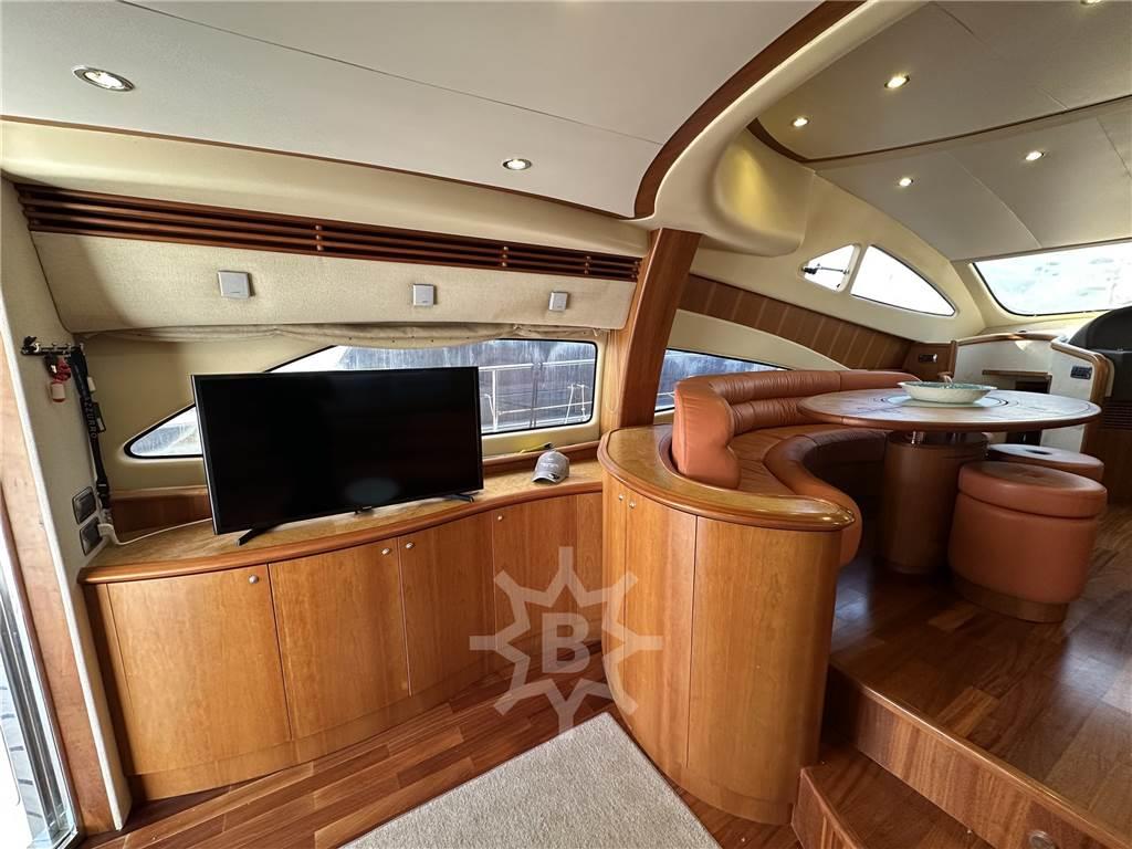 Notas de armamentoAltoparlanti, Antenna Satellitare TV (TRACVISION), Aria condizionata, Bimini, Boiler, Clima reversibile, Congelatore (Isotherm), Copripozzetto, Cucina, Cuscineria completa, Decoder satellite, Digitale Terrestre, Dissalatore (TECNICOMAR), Forno (Whirlpool), Frigorifero esterno, Frigorifero interno (Isotherm), Home Theater (Bose), Impianto acque nere, Impianto TV, Inverter, Lavatrice (Whirlpool), Oscuranti, Pavimento interno in legno, Piastra in vetroceramica, Prese interne 12v, Prese interne 220v, Radio AM/FM, Serbatoio Acque Nere, Stereo, Teli copri finestra, Telo Copertura Fly, 4 TV, 4 WC marino elettrico