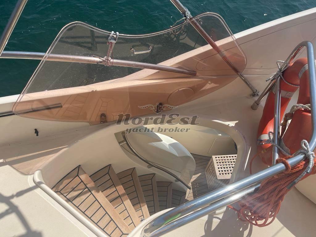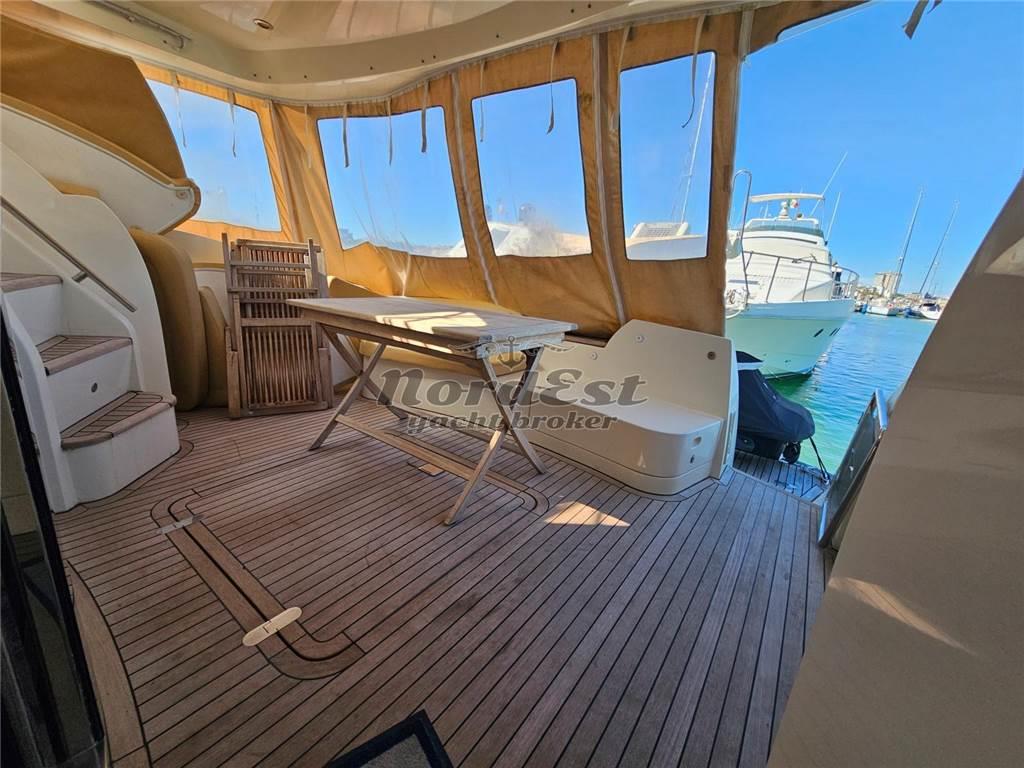 Notas internasAria condizionata: Presente Interni: DESCRIZIONE INTERNI n. 3 servizi con box doccia ----- Mobile bar Lavastoviglie Lavatrice Antenna TV satellitare Impianto stereo Impianto TV Tv Bagno equipaggio Bagni: 3 Cabina equipaggio Cabine: 3 Posti letto: 6 + 2 Cucina Forno: Presente Frigorifero Grill Piano Cottura: 1 Ghiacciaia Notas de la instrumentaciónPilota automatico: Raymarine Ecoscandaglio: Raymarine GPS: Raymarine Plancetta: in teak Radar: Raymarine Strumenti meteo Vhf: Presente Notas de armamentoDESCRIZIONE IMPIANTISTICA su richiesta si invia book fotografico e dettagli tecnici ----- Impianto antincendio Bimini top: si in acciao Copertura pozzetto Doccia esterna Elica di manovra a poppa: Presente Elica di manovra a prua: Presente Faro orientabile Flaps Frigorifero esterno Frigorifero sul flybridge Luci di cortesia Riscaldamento Terza stazione nel pozzetto Zattera di salvatagio |