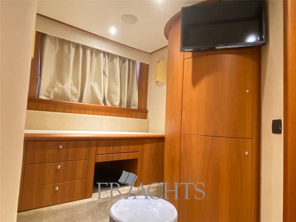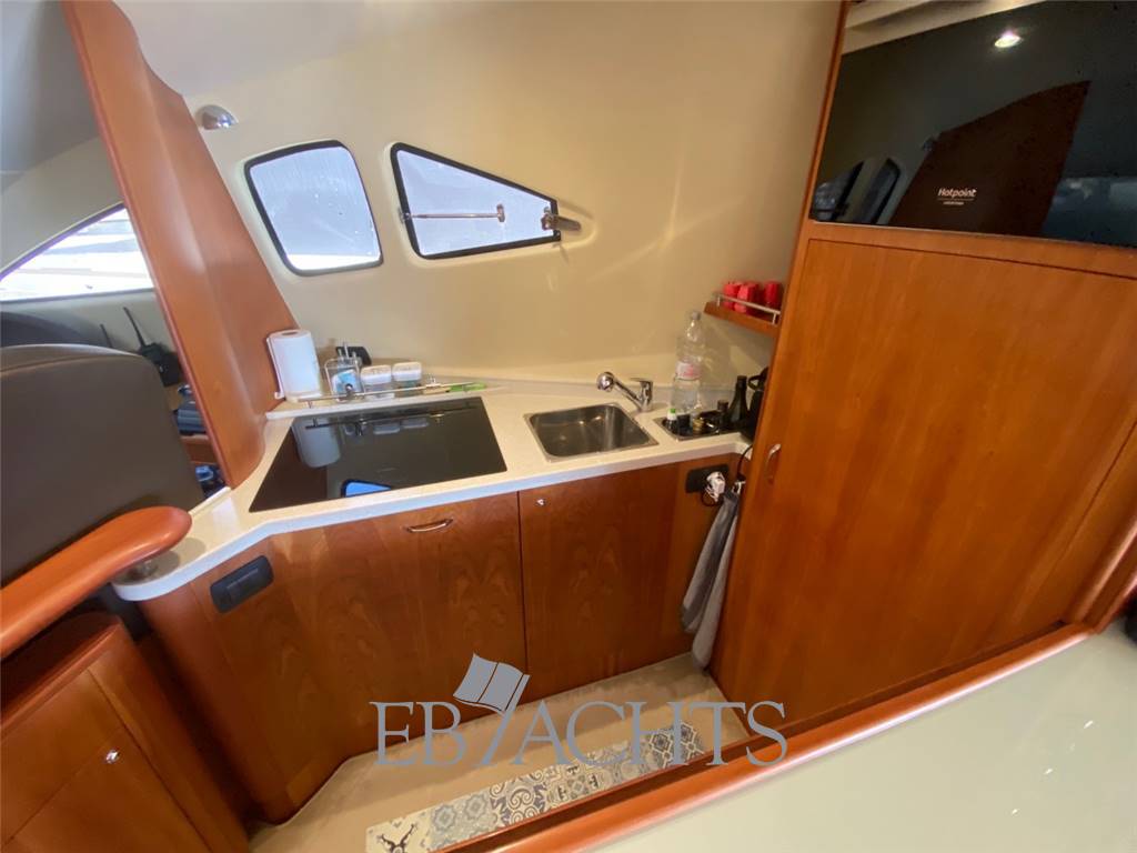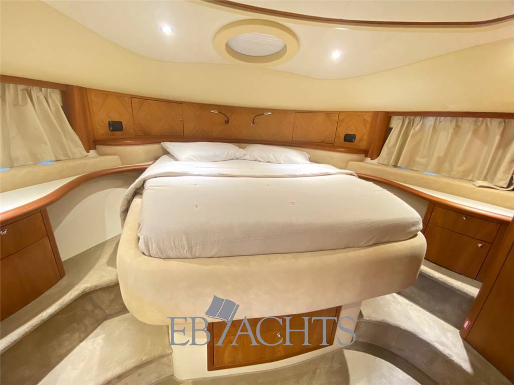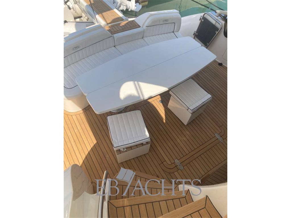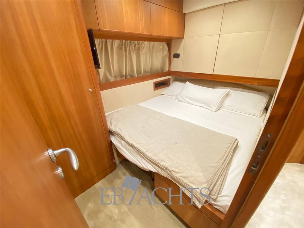 Notas internasGli interni sono in ciliegio con moquette su tutto il ponte principale e nella zona notte. La dinette è arredata con un divano a "U" in pelle chiara, un tavolo da caffè e un mobile sulla sinistra della barca con TV 40". La sala da pranzo, leggermente sollevata rispetto alla dinette, è dotata di un divano in pelle e due pouf, mentre il tavolo è estensibile e richiudibile a seconda delle necessità. Nella zona notte, la cabina armatoriale è situata al centro della barca, con un letto posizionato obliquamente per ottimizzare lo spazio. A destra si trova una zona beauty, che può essere utilizzata come piano di lavoro. Il bagno, in stile italiano, è dotato di bidet e box doccia. La cabina VIP a prua è spaziosa e luminosa, con un bagno privato e box doccia. La cabina ospiti, con due letti singoli, può essere trasformata in un letto matrimoniale, permettendo così di avere una imbarcazione di 56 piedi con ben 3 cabine matrimoniali. Infine, la cabina del marinaio si trova a poppa, con ingresso indipendente dal pozzetto. Notas de la instrumentaciónElica di poppaElica di prua Flap Autopilota Raymarine Barometro Computer di bordo Ecoscandaglio Raymarine GPS Raymarine LOG Plotter Radar Raymarine Stazione meteo VHF EPIRB Notas de armamentoAria condizionataRivestimenti e parquet in ciliegio Moquette in tutti gli spazi interni Generatore 12 Kw MASE Telecamera in pozzetto N. 2 telecamere in sala macchine Altoparlanti in pozzetto Altoparlanti sul fly Antenna satellitare Antenna TV Internet Lettore MP3, CD, Bluetooth Sistema satellitare TV satellitare in dinette e cabina armatoriale TV in tutte le cabine Cabina twin convertibile in letto matrimoniale Tavolo in dinette Illuminazione subacquea Cuscini prendisole sul fly Cuscini prendisole a prua Cuscini prendisole a poppa e pozzetto Doccia di poppa caldo/freddo Passerella idraulica Piattaforma da bagno integrata Pozzetto in Teak Plancetta in Teak Scaletta da bagno in acciaio inox Sistema lavaggio ponte Grill sul flybridge Cucina con piano cottura 4 fuochi in vetroceramica N. 2 Frigoriferi Freezer Lavastoviglie Forno combinato Lavatrice Tavolo in pozzetto convertibile in prendisole Tendalino a poppa microforato Tendalino sul flybridge Telo protezione cristalli estivi Telo copriconsolle sul fly e mobilio Uscita per ormeggio all’inglese in entrambi i lati Predisposizione per dissalatore Norvegese |