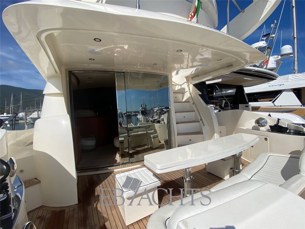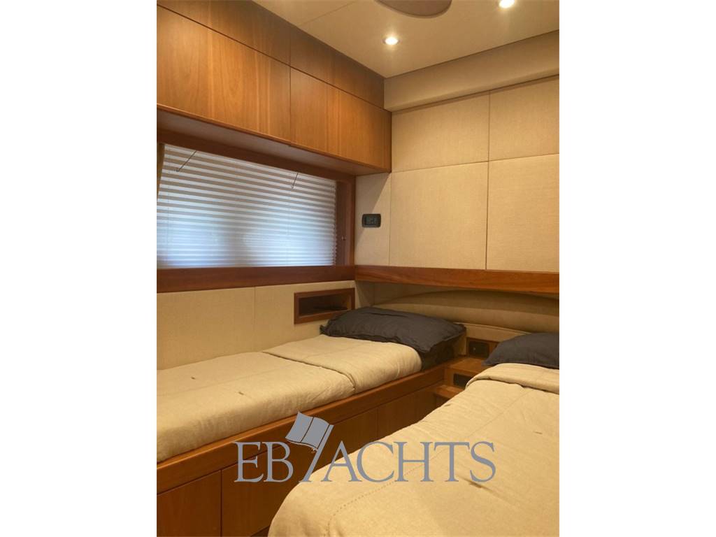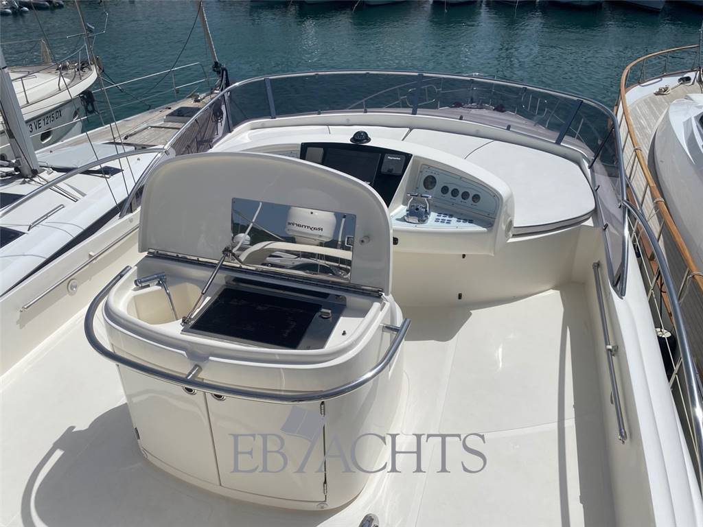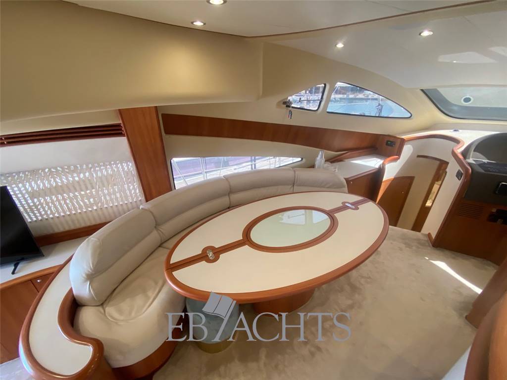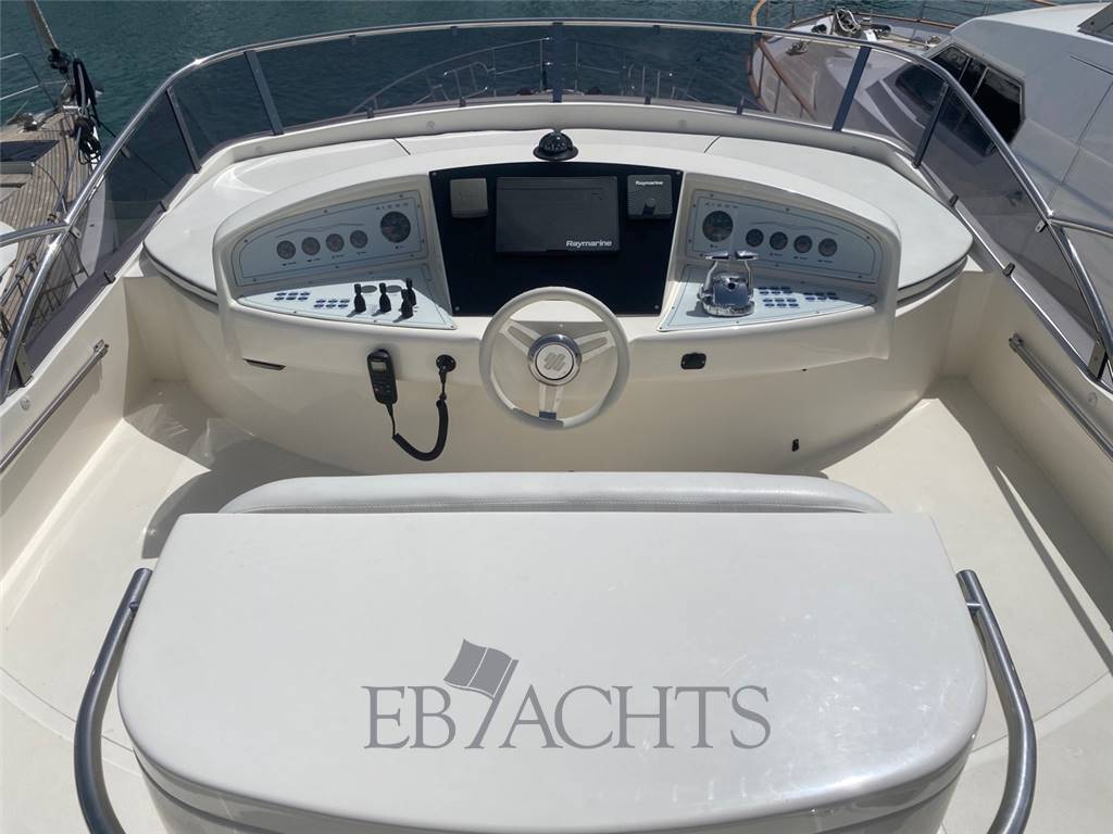 Notas internasGli interni sono in ciliegio con moquette su tutto il ponte principale e nella zona notte. La dinette è arredata con un divano a "U" in pelle chiara, un tavolo da caffè e un mobile sulla sinistra della barca con TV 40". La sala da pranzo, leggermente sollevata rispetto alla dinette, è dotata di un divano in pelle e due pouf, mentre il tavolo è estensibile e richiudibile a seconda delle necessità. Nella zona notte, la cabina armatoriale è situata al centro della barca, con un letto posizionato obliquamente per ottimizzare lo spazio. A destra si trova una zona beauty, che può essere utilizzata come piano di lavoro. Il bagno, in stile italiano, è dotato di bidet e box doccia. La cabina VIP a prua è spaziosa e luminosa, con un bagno privato e box doccia. La cabina ospiti, con due letti singoli, può essere trasformata in un letto matrimoniale, permettendo così di avere una imbarcazione di 56 piedi con ben 3 cabine matrimoniali. Infine, la cabina del marinaio si trova a poppa, con ingresso indipendente dal pozzetto. Notas de la instrumentaciónElica di poppaElica di prua Flap Autopilota Raymarine Barometro Computer di bordo Ecoscandaglio Raymarine GPS Raymarine LOG Plotter Radar Raymarine Stazione meteo VHF EPIRB Notas de armamentoAria condizionataRivestimenti e parquet in ciliegio Moquette in tutti gli spazi interni Generatore 12 Kw MASE Telecamera in pozzetto N. 2 telecamere in sala macchine Altoparlanti in pozzetto Altoparlanti sul fly Antenna satellitare Antenna TV Internet Lettore MP3, CD, Bluetooth Sistema satellitare TV satellitare in dinette e cabina armatoriale TV in tutte le cabine Cabina twin convertibile in letto matrimoniale Tavolo in dinette Illuminazione subacquea Cuscini prendisole sul fly Cuscini prendisole a prua Cuscini prendisole a poppa e pozzetto Doccia di poppa caldo/freddo Passerella idraulica Piattaforma da bagno integrata Pozzetto in Teak Plancetta in Teak Scaletta da bagno in acciaio inox Sistema lavaggio ponte Grill sul flybridge Cucina con piano cottura 4 fuochi in vetroceramica N. 2 Frigoriferi Freezer Lavastoviglie Forno combinato Lavatrice Tavolo in pozzetto convertibile in prendisole Tendalino a poppa microforato Tendalino sul flybridge Telo protezione cristalli estivi Telo copriconsolle sul fly e mobilio Uscita per ormeggio all’inglese in entrambi i lati Predisposizione per dissalatore Norvegese |