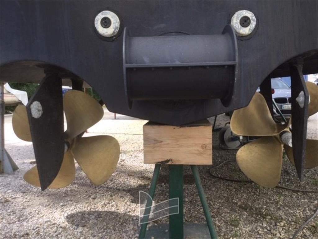 Notas internasNotas de la instrumentaciónAngolo barra, Antenna radar, Bussola, Contamiglia, Ecoscandaglio, Pilota automatico, Plotter con antenna GPS, Radar, Radio VHF.Notas de armamentoAllestimento tecnico e di coperta:Allarme motore, Ancora, Doccia esterna, Doppia timoneria, Elica di poppa - stern thruster, Elica di prua - bow thruster, 2 Flap elettrici, Lavandino nel Pozzetto, Passerella, Piattaforma, Pompa di sentina elettrica, Pozzetto Teak, Presa 220V banchina, Rollbar, Salpa Ancore Elettrico, Scaletta da bagno, Tavolo pozzetto, Tromba. Dotazioni domestiche di bordo: Aria condizionata, BBQ/ Grill, Impianto acque nere, Pavimento interno in legno, Prese interne 12v, Prese interne 220v, 3 WC marino elettrico. Intrattenimento: Antenna Satellitare TV, Impianto TV, Radio AM/FM, Stereo, TV. Cucina ed elettrodomestici: Cucina, Fornello, Frigorifero esterno, Frigorifero interno, Microonde. Tappezzerie: Bimini, Copripozzetto, Copriscafo, Cuscineria di poppa, Cuscineria di prua, Telo copriconsolle. |