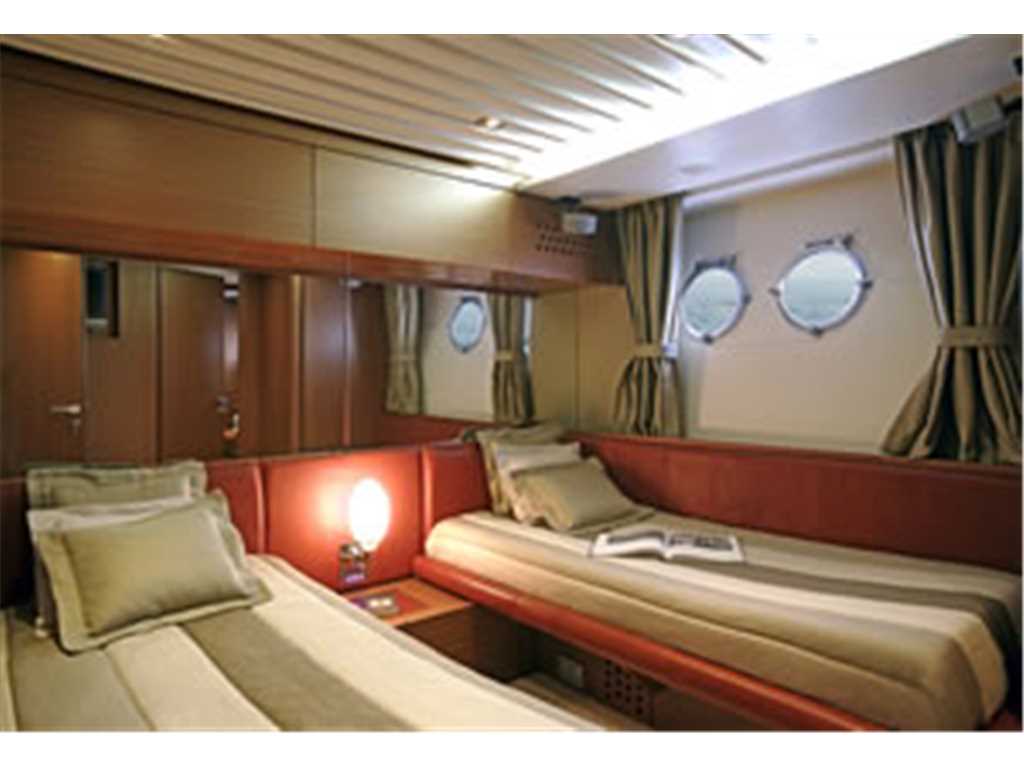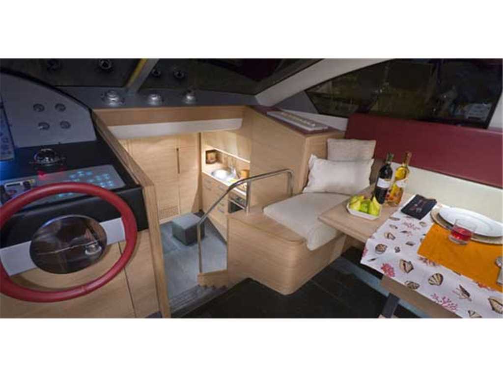Notas internasThe open galley has been placed in front of the cabins, bus is only a few steps away from the dinette. The area is particularly light thanks to a large windscreen on a higher level, increasing the feeling of space. The AICON 62 Open is fitted with three cabins and three bathrooms, a rare feature for a yacht of this size. The design exploits the space to the maximum, providing a large living area that is separate from the galley, combined with comfortable and spacious accommodations. Imbarcazione come nuova Aicon 62, il piccolo della linea Open, è un concentrato di tecnologia e design Aicon riconoscibile a partire dalle ben definite linee esterne e dall’ormai classico grande oblò tondo, segno distintivo dell’Aicon Style, posizionato in corrispondenza della cabina armatoriale. Uno yacht unico e inconfondibile nel suo stile e nelle sue performance per armatori dallo spirito sportivo. Cura dei dettagli, utilizzo di materiali pregiati e linee stylish fanno dell’Aicon 62 Open un motoryacht al di sopra delle attese.Aicon 62 Open sfrutta al massimo le zone esterne, filosofia che contraddistingue le imbarcazioni Aicon sin dagli esordi. Il prendisole dell’area di prua è tra i più ampi della categoria. L’Aicon 62 Open è caratterizzato da ampi ambienti per la vita diurna all’insegna del confort. Il pozzetto è quindi il fulcro della barca e rappresenta il nodo centrale del motoryacht, il naturale collegamento fra la spiaggetta e gli eleganti e raffinati interni. 3 cabine, 3 bagni :cabina armatore matrimoniale a centro barca con bagno, cabina matrimoniale a prua con bagno cabina con letti doppi in piano con bagno cabina equipaggio con servizio, cucina completa di elettrodomestici Interni in rovere sbiancato Notas de la instrumentaciónStrumentazione completa Raymarine: gps plotter cartografico a colori C 120 - ecoscandaglio - antenna radar Raymarine 72 mg. - vhf con ssb n. 02 antenne per HF SSB - pilota automatico st 600 con telecomando - stazione vento st 60 Raymarine- doppia antenna sat KNS per tv sat e - radio stereo cd con dvd - Tv lcd 32' in salone + tv lcd 19' in ogni cabina - manette elettroniche - Computer gestione controllo motorizzazione MAN - stazione metereologica analogica -Full instrumentation Raymarine GPS color chart plotter C 120 - Fishfinder - Raymarine radar antenna 72 mg. - VHF radio with ssb n. 02 antennas for HF SSB - st 600 autopilot with remote control - station Raymarine ST 60 wind-dual antenna for satellite tv and sat KNS - stereo radio with cd dvd - LCD TV 32 'LCD TV in the living room + 19' in each cabin - handcuffs electronic - Computer management control engine MAN - analog weather station - Notas de armamentoGangway electro hydraulic davit - Still Bruce 32 kg - galvanized chain 75 mt - Dvd - Air conditioning-heating - Barbecue cockpit - teak side decks - bow thruster - Oven - Fridge cockpit - generator plus - Ice maker - Parquet bathrooms and kitchen - Stereo - teak swim platform Teak cockpit - mooring winch No. 2 - Holding tank - Crew cabin with bathroom - Safe in the cabin - leather sofas - safety equipment - Stern thruster - lighting sidewalks -Dishwasher Washer Dryers - Norwegian aft - Flooring in the lounge and dinette -Table cockpit with chairs - Decore prestige - LCD TV in the living room - LCD TV in the cabins No. 3 - LED underwater stern - cushionsPasserella elettro idraulica con gruetta - Ancora Bruce 32 kg - Catena zincata 75 mt - Dvd Impianto aria condizionata-riscaldamento - Barbecue pozzetto - Camminamenti laterali in teak - Elica di prua Forno - Frigo pozzetto - Generatore maggiorato - Ice maker - Parquet bagni e cucina - Stereo - Plancetta in teak Pozzetto in teak - Winch tonneggio n° 2 - Serbatoio acque nere - Cabina equipaggio con bagno - Cassaforte in cabina armatoriale - Divani in pelle - Dotazioni di sicurezza - Elica di poppa - Illuminazione camminamenti laterali Lavasciuga Lavastoviglie - Norvegese a poppa - Parquet nel salone e nella dinette -Tavolo pozzetto con sedie Decore prestige - Tv lcd nel salone - Tv lcd nelle cabine n° 3 - Illuminazione subacquea a poppa - Cuscineria |