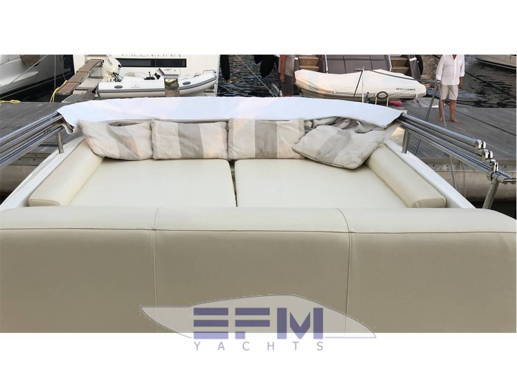 Notas internasheads 3 crew 2 1 Master cabin ensuite full bean 1 Vip cabin ensuite on bow 1 Guest cabin ensuite 1 crew cabin 2 beds + head Notas de la instrumentación• Raymarine navigation (chartplotter 120, autopilot, radar, VHF, radio)• Radar • Audio system Bose • 2x Generator Kohler • Bow thruster Notas de armamento• Watermaker• Teak on cockpit • Teak on side decks • Teak table in cockpit • Electric awning in cockpit • Tender Legar Suzuki 20 kw 330 • Bimini in cockpit • Bimini on bow • Sunbathing cushions on bow • Big fridge in galley • Icemaker • Dishwasher • Freezer • Washing-dryer machine • Flaps • Open roof • Hydraulic swimming platform • Electric swimming ladder • Hydraulic gangaway in teak • Bidet in owner's bathroom • Hydraulic garage opening |