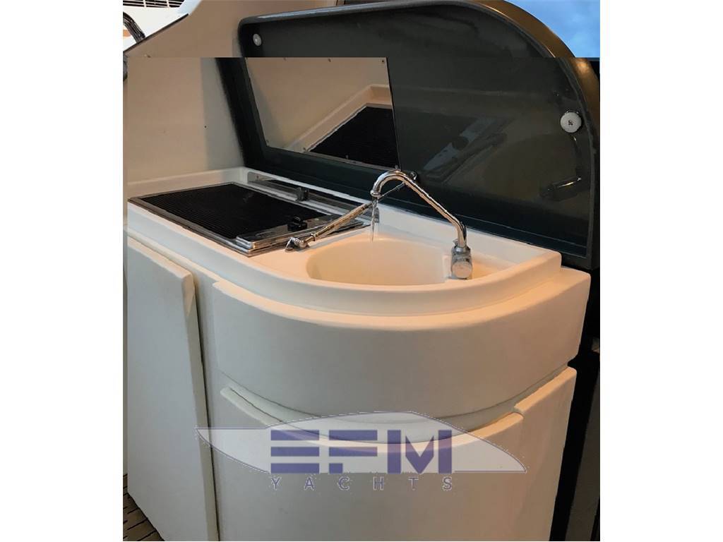 72 'Hard Top con scafo bianco e fascia grigia - 3 cabine e 3 bagni + equipaggio quartier layout - FULL OPTIONAL - Elica di prua e di poppa - Doppia pompa di calore aria condizionata con ciclo inverso - Antenna TV SAT - 2 generatori Kohler - Impianto HIFI con DOLBY - Porta laterale esterna - Interni in rovere satinato e bellissimi pavimenti in teak - Tetto apribile elettroidraulico - Garage di poppa con piattaforma idraulica per l'immersione - Scaletta bagno e passerella idraulica Besenzoni - Luci subacquee e luci cortesia led blu - Dotazione elettronica Raymarine completa con plotter cartografico C 120, autopilota + VHF con DSC - Rifacimento completo e completo di nuovi cuscini - Tendalino bimini ellettrico nel pozzetto - Cucina comoda e spaziosa completa di lavastoviglie, piano cottura a 4 fuochi in vetroceramica, doppio frigo + congelatore e icemaker - lavasciuga - Cabina equipaggio separata con accesso diretto nella sala macchine |