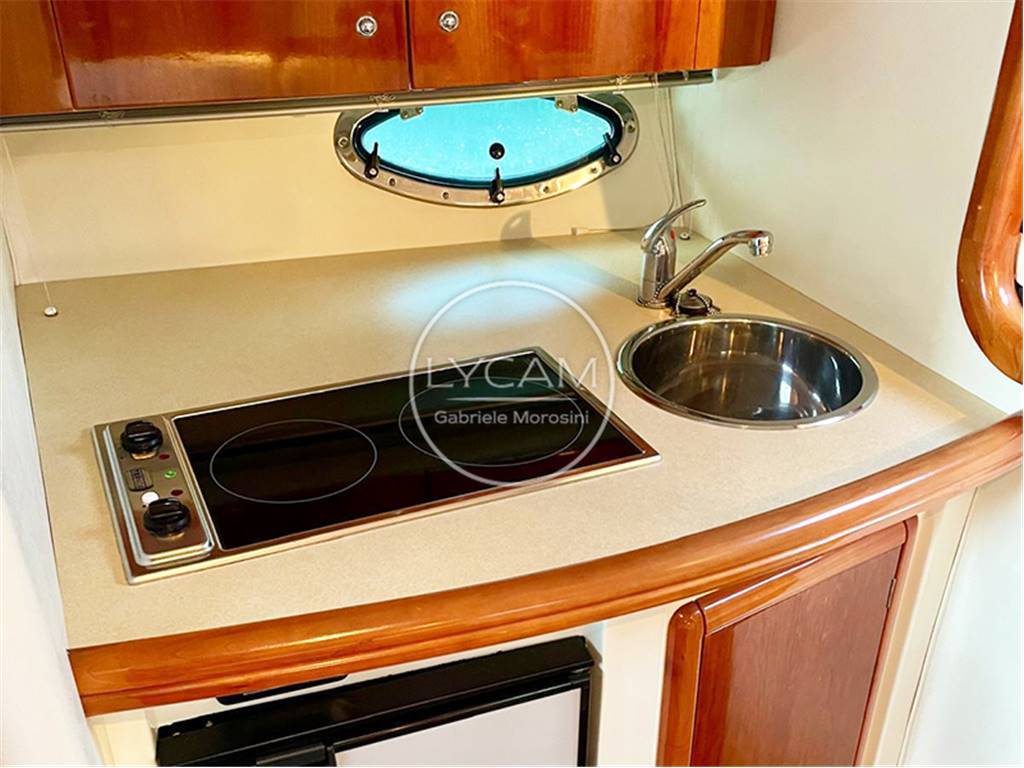 Notas de armamentoIl natante è equipaggiato con: Luci di navigazione; Luce di fonda; Ancora; Verricello salpa-ancora 700W; 30 mt catena; Scudo prua inox; Bitte di ormeggio; Volante in legno; Timoneria moncavo; Pulpito prua inox; Cuscinerie prendisole/dinette poppa; Tavolo esterno in legno; Altoparlanti pozzetto; Telo chiusura barca; Cancelletto pozzetto inox; Plancetta di poppa con scaletta bagno a scomparsa; 2 Batterie; 2 Staccabatterie; Presa 12V; Doccia esterna pozzetto; Impianto antincendio automatico; Asta portabandiera; Cucina con lavello + piastra vetroceramica + frigo (50 lt); pavimentazione interna in teak; 3 Pompe di sentina automatiche; 1 Pompa di sentina manuale; Mezzomarinaio