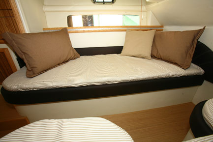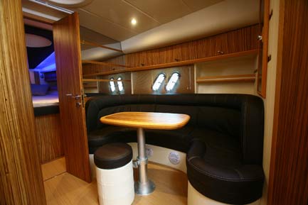 Notas internasA continuación gran disturbio de cubierta de maderas preciosas y tapices. El diseño es tÃpico Airon Marine, que proporciona: un gran comedor para recámaras en cabina proa en medio ambiente independiente doble cabina y más severo, una sola cama (bajo la cabina) descendente desde la cabina externa, inmediatamente a la izquierda, el propietario es la cocina, rediseñada por y disponible y totalmente equipada con placas eléctricas de cocina, armarios, fregadero y microondas, todo lo necesario para el crucero largas estancias también. Cocina racional y bien equipado para la estiba de la galera y vajilla cómodo con cómodo sofá y mesa de comedor plegable apreciamos la optimización constante de los espacios y el cuidado de los detalles que el astillero ha puesto en marcha en estos largos años de presencia en el mercado: aún recuerdo con cariño la presentación de los primeros modelos de una cierta importancia de astillero