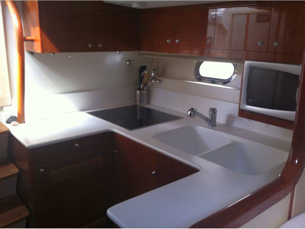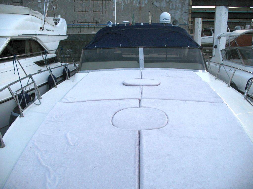 Imbarcazione fatturabile interamente . imbarcazione in buone condizioni generali . Pozzetto teak , piattaforma bagno teak, NEL 2013 CREAZIONE MOBILE BAR IN POZZETTO COMPLETO DI LAVELLO E FRIGO E DIVANO MAGGIORATO, MODIFICATO INGRESSO CABINA DI POPPA, CREAZIONE GAVONE SU PEDANA DI POPPA, RIFACIMENTO CRUSCOTTO E TENDALINI NEL 2014 RIFACIMENTO TAPPEZZERIA ESTERNA E SBARCO MOTORI PER REVISIONE STRAORDINARIA NEL 2015 SOSTITUZIONE TOP CUCINA CON PIANO IN CORIAN, PIANO COTTURA AD INDUZIONE, INSTALLAZIONE TV SAT, RIFACIMENTO DEI BAGNI E DELLE TAPPEZZERIE INTERNE 2016 : teak massello pozzetto e piattaforma poppa nuovi - tendalino completo con laterali nuovi - impianto elettrico revisinato ; sostituite pompe sentina- autoclave - carica batterie - sfilati assi e sostituite le boccole con astucci a tenuta stagna- lucidatura completa dello scafo e della coperta - sostituito motore della passerella- sostituito carabottino della passerella - Antenna sat Tv nuova (2016) |