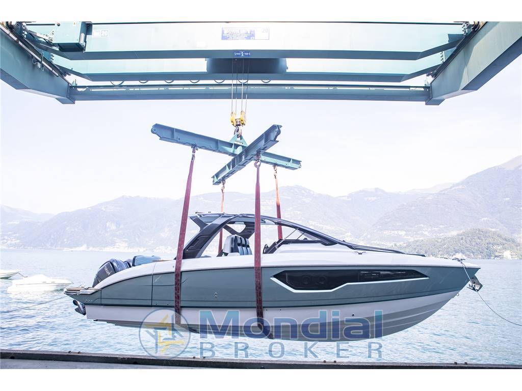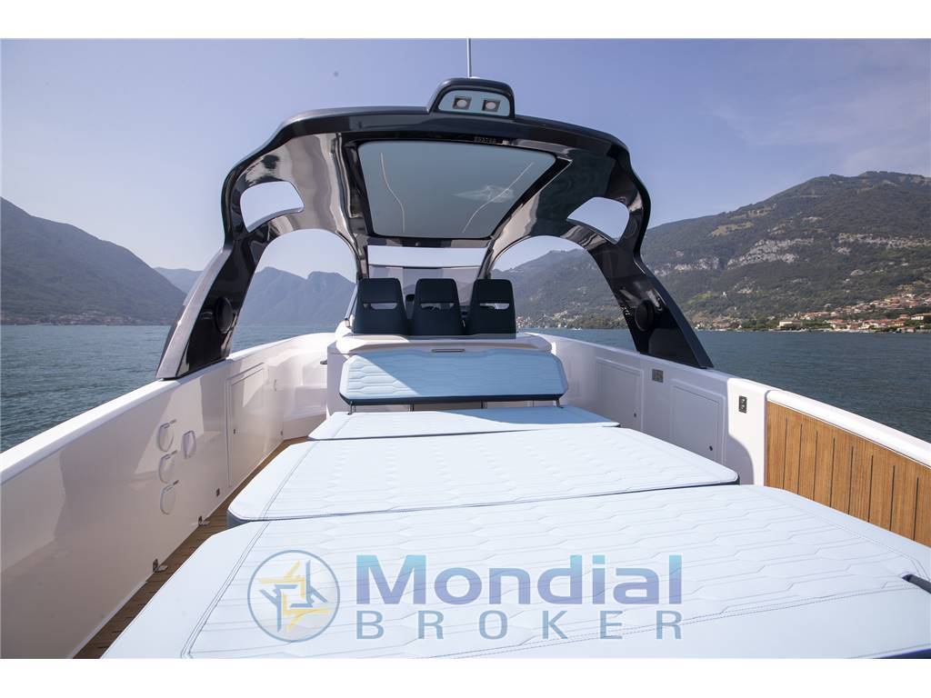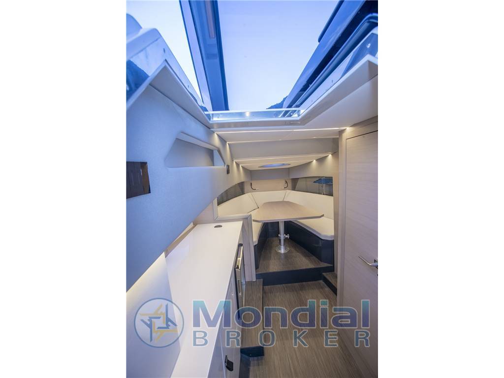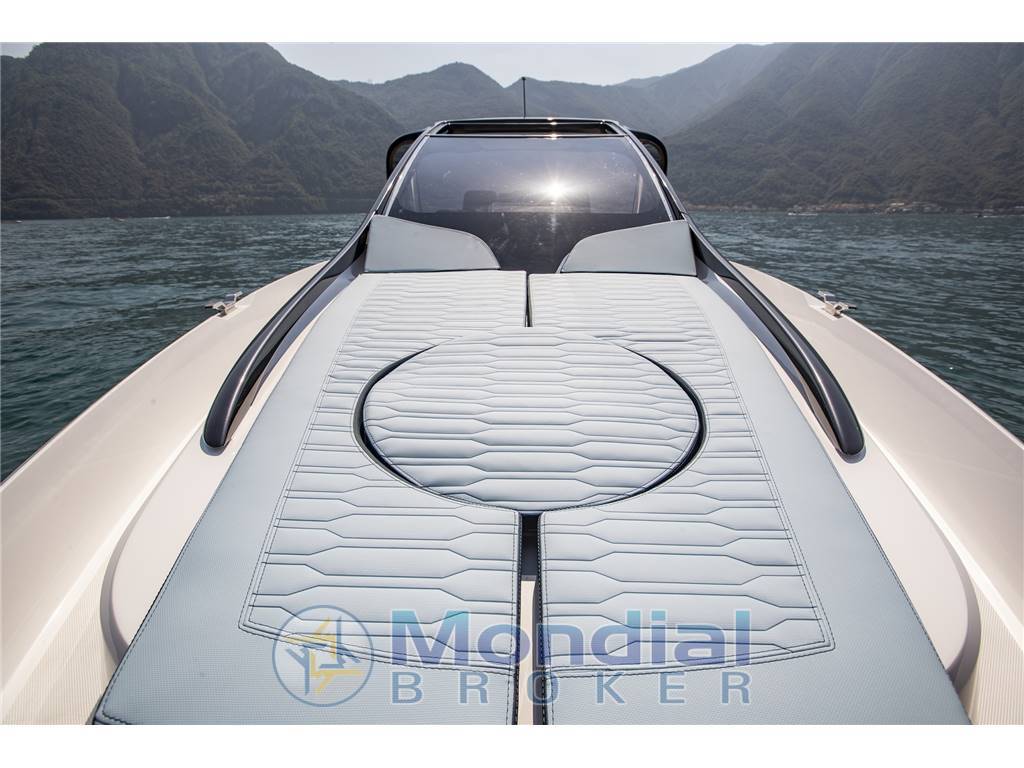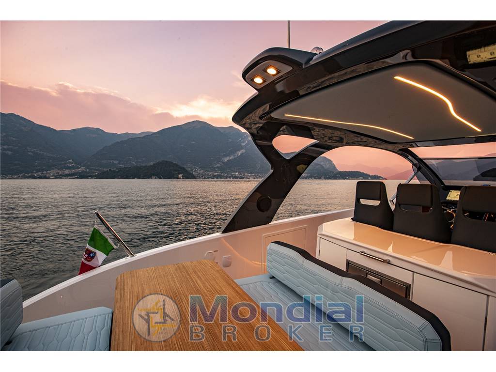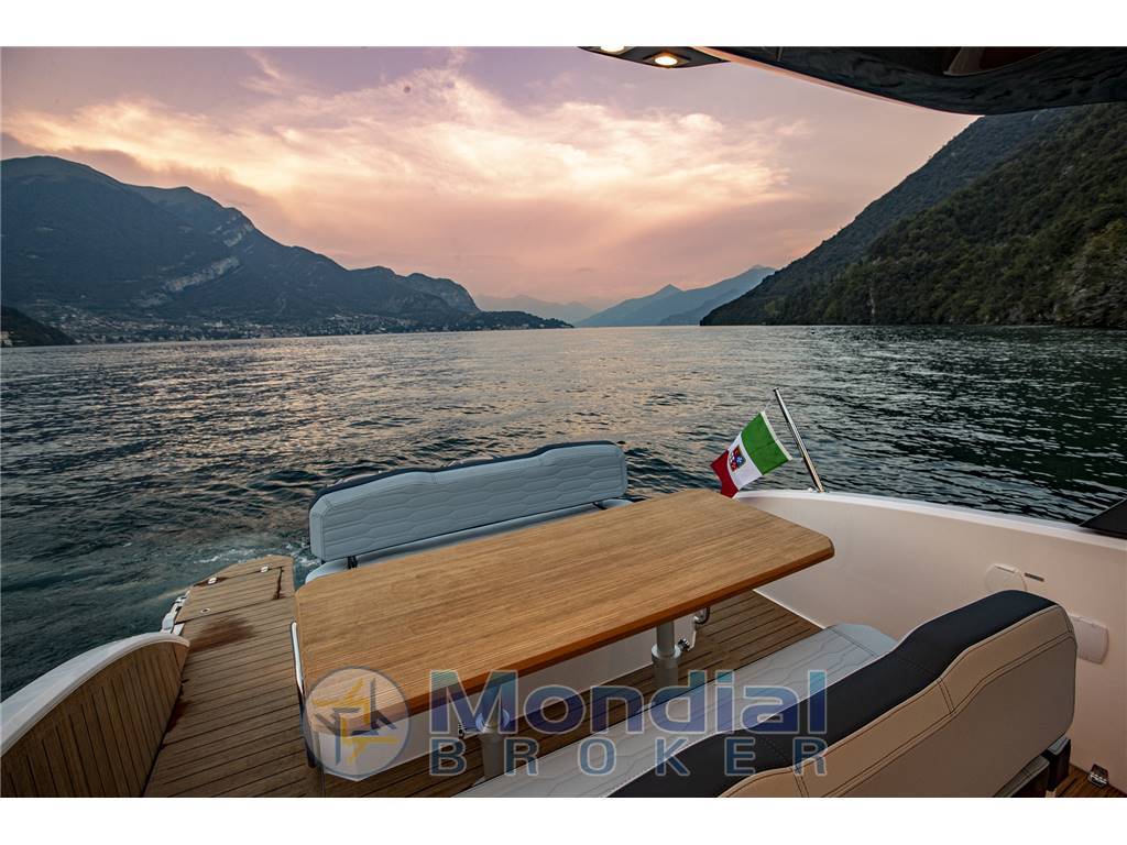 Notas internasLa cabina principale, curata nei minimi dettagli, è impreziosita da mobili in essenza pregiata e pavimenti di alta qualità. Le ampie finestrature laterali garantiscono grande luce naturale, mentre l’illuminazione a LED integrata nel cielino esalta il design moderno. L’altezza interna consente una comoda abitabilità anche in piedi. A dritta è presente un bagno completo con doccia separata, mentre a sinistra un elegante mobile in Corian ospita una cantinetta per i vini e, su richiesta, un secondo fuoco con forno. A poppa è situata una seconda cabina per gli ospiti, accessibile tramite una scala d’ingresso sollevabile elettricamente che può essere sollevata a mano in caso di emergenza. Notas de la instrumentación- Plancia di comando ergonomica con display multifunzione- Strumentazione elettronica personalizzabile (Raymarine o Garmin su richiesta) - GPS/plotter, ecoscandaglio, VHF - Controlli digitali motori - Indicatori livello carburante e acqua - Impianto elettrico 12V/220V - Quadro comandi completo - Caricabatterie e prese USB Notas de armamento- Hard Top con aperture laterali e frontali- Estensione in tela dell’hard top per zona living a poppa - Sponda laterale idraulica apribile - Due plancette di poppa - Cuscineria completa interna ed esterna - Tendalino e coperture - Impianto doccia esterno - Serbatoi acqua e carburante di grande capacità - Ampio frigorifero con ghiacciaia - Lavandino, piano cottura (elettrico o a gas), griglia su richiesta - Cabina ospiti - Illuminazione LED interna ed esterna - Salpa ancora elettrico - Scaletta bagno inox |