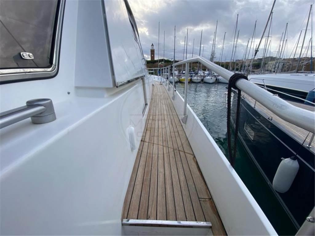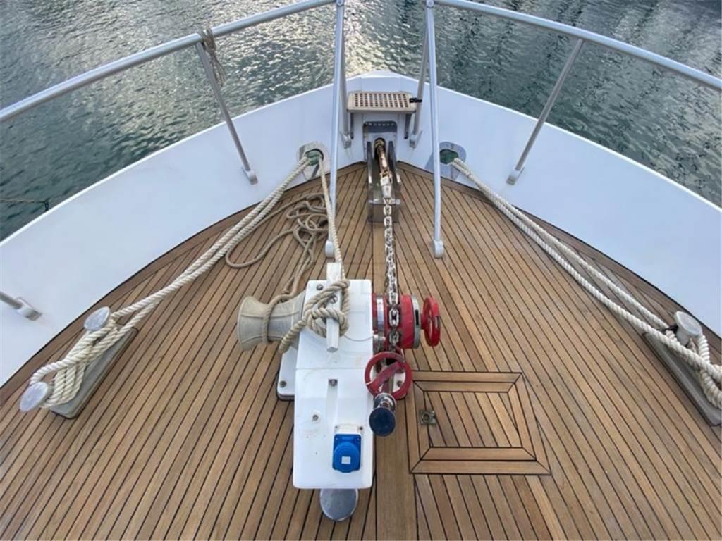 Notas internasNotas de la instrumentaciónBussola, Ecoscandaglio, GPS, Pilota automatico, Radar, Radio VHF.Notas de armamentoAllestimento tecnico e di coperta:Ancora, Passerella, Tavolo pozzetto, Winch. Dotazioni domestiche di bordo: Aria condizionata. Intrattenimento: Ricevitore satellitare, TV. Cucina ed elettrodomestici: Lavatrice. Tappezzerie: Bimini. |