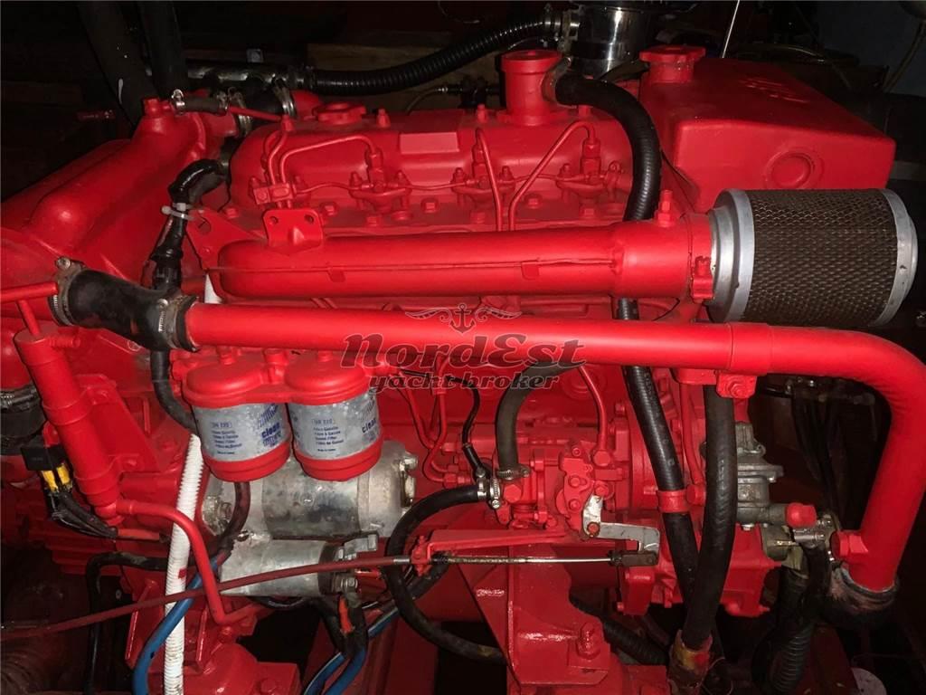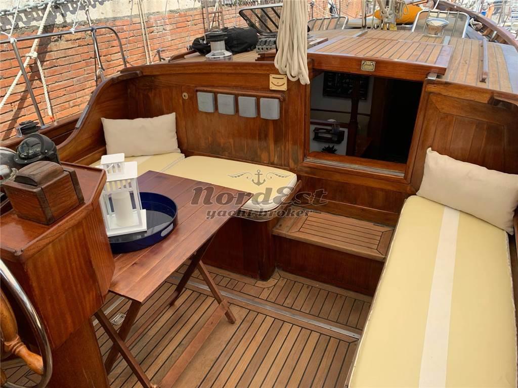 Notas internasInterni: DESCRIZIONE INTERNI 2 Cabine Ospiti 1 Cabina Marinaio 2 bagni con 2 docce Interni: legno di mogano e iroko Tappezzeria interna Cotone bianco e Blue ----- Impianto stereo Bagni: 2 Cabine: 2 Posti letto: 6 Cucina Frigorifero Notas de la instrumentaciónStrumentazione: Log, deep, Speed e bussola e VHFVhf: Presente Notas de armamentoDESCRIZIONE IMPIANTISTICA Materiale scafo: Fasciame Mogano e Full Teak Salpa ancora, Ancora CQR 27kg, 110mt catena Cuscinerie esterne Serbatoio acqua nere Impianto idrico nuovo 2 autoclavi Pompa Acqua mare Impianto idrico centralizzato da banchina Impianto 12V e 220v nuovo 2023 Illuminazione a Led 6 pompe sentina 2 pompe acqua nere Boiler 30lt 220V Boiler 40lt per acqua calda con motore acceso Webasto Accessori interni: Freezer, Frigo e cucina a gas ed estrattore fornelli, Estrattore aria sala motore, Ventilazione forzata sala motore. 2 Alberature in alluminio con avvolgi randa, rolla fiocco e rolla genoa. 4 vele complete ottime condizioni in dacron 2000 Deriva: Ghisa ----- Cuscineria prendisole Doccia esterna Riscaldamento |