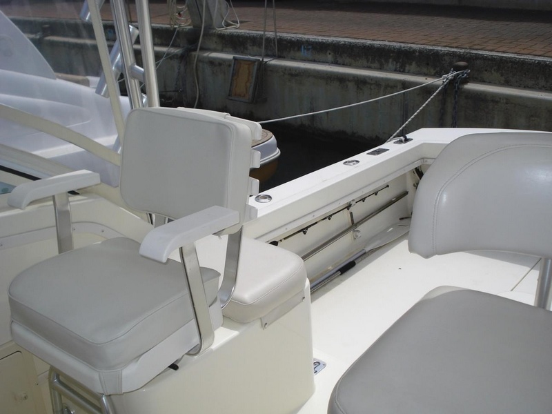 Notas de armamentoCableado de muellaje-110V con interruptores-Conmutadores eléctricos AC/DC con arco ferroviario de aluminio anodizado -Protección contra incendios halones ® automático -Cargador de viaje -Sopladores sentina -Bombas de sentina (2) -Púlpito Bow -Seacocks bridas de bronce -Cabina Rod almacenamiento -Alarma de monóxido de carbono -Cabina Rod almacenamiento -La brújula -Guión diseñado para empotrar electrónica -Dual-Air trompeta cuerno -Escotilla de proa delantera -Cuatro titulares cobro de varilla -Lavable agua dulce -Instrumentación completa -Cojines de V-litera completos -Cocina con encimera GraniCoat ® y receptor,microondas,nevera y mesa de comedor Asistida por gas motor escotilla ascensor -Pesado rozan deber vinilo con riel -Insertar acero inoxidable -Helm sillas con cojines -Hidráulico de dirección -Recortar fontanero de fichas -Moldeado de fibra de vidrio,Self-bailing -Luces de navegación y cabina -Anti Slip cubierta -Prewiring para electrónica -Agua lavable SeaKey ®-instalación Kit -Ãrbol cinc -Ojo de arco acero inoxidable -Arco acero inoxidable,Stern,y grapas de primavera -Acero inoxidable tubo cubia -Stand Up cabeza con ducha -Bastidor por debajo de la litera -Almacenamiento tackle -Cross-puente y fishboxes -Aluminio recubierto de polvo blanco de parabrisas -Limpiaparabrisas Otro