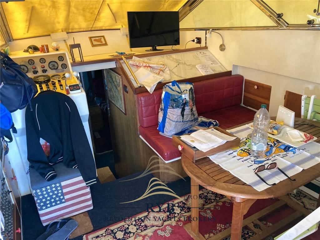 Notas internasNotas de la instrumentaciónAngolo barra, Bussola, Contamiglia, GPS, Radio VHF.Notas de armamentoAllestimento tecnico e di coperta:Ancora, Doccia esterna, Flap idraulici (N°2), Passerella (A SCOMPARSA), Piattaforma (SPECCHIO DI POPPA IDRAULICO), Pompa di sentina automatica, Pompa di sentina elettrica, Pompa di sentina manuale, Porta ingresso, Pozzetto Teak, Presa 220V banchina, Salpa Ancore Elettrico, Scaletta da bagno, Tromba. Dotazioni domestiche di bordo: Prese interne 12v, Prese interne 220v, WC marino elettrico. Intrattenimento: Impianto TV. Cucina ed elettrodomestici: Frigorifero interno. Tappezzerie: Tendalino. |