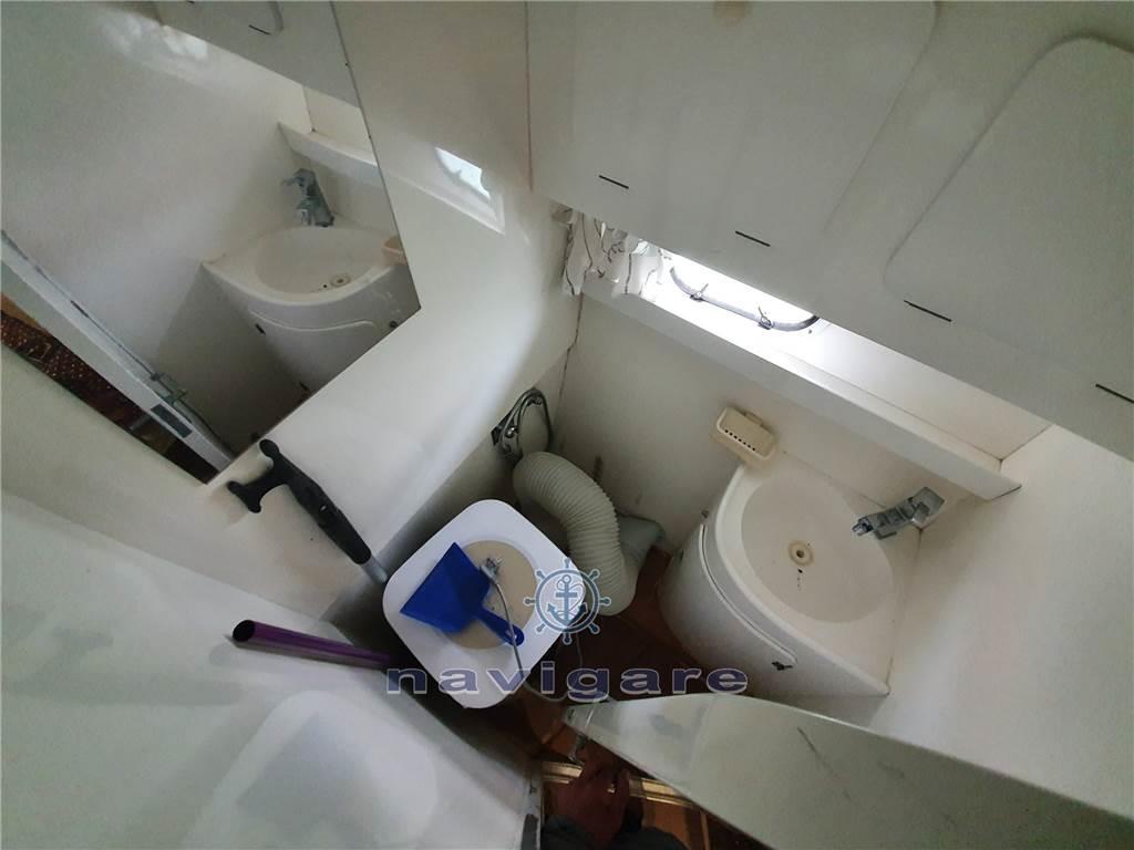 Notas internas- DX ; POLTRONA DI GUIDA CON STRUMENTAZIONE,LEVE DI COMANDO MOTORI,TIMONERIA E RUOTA DI GOVERN - SX ; DIVANO A "C" CON TAVOLO CENTRALE SOTTOCOPERTA : - PRUA ; CABINA PADRONALE CON LETTO MATRIMONIALE A PENISOLA - A CENTRO BARCA CABINA CON DUE LETTI IN PIANO E MOBILE - BAGNO ARMATORIALE CON ACCESSO DIRETTO DALLA CABINA,COMPLETO DI MOBILE SOTTOLAVELLO,STIPETTO,MISCELATORE,LAVABO,BOX DOCCIA E WC ELETTRICO - BAGNO OSPITI CON ACCESSO DIRETTO DALLA CABINA,COMPLETO DI MOBILE SOTTOLAVELLO,STIPETTO,MISCELATORE,LAVABO,BOX DOCCIA E WC ELETTRICO - DINETTE CON DIVANO E TAVOLO CENTRALE TELESCOPICO TRASFORMABILE IN LETTO - SCENDENDO IN CABINA SULLA DX ; MOBILE CUCINA COMPLETO DI PIANO LAVORO,MISCELATORE,LAVELLO,PIANO COTTURA,FORNO E FRIGORIFERO ESTERNO : - CAMMINAMENTI LATERALI PROTETTI DA PULPITO IN ACCIAIO INOX - PRENDISOLE DI PRUA COMPLETO DI CUSCINERIA - SEDUTA POZZETTO - PLANCETTA DI POPPA COMPLETA DI SCALA DA BAGNO Notas de la instrumentaciónAllarme motore, Ancora (DANFORTH 20 KG), Autoclave, Autogonfiabile (12 POSTI ZEFIRO), 4 Batterie (4 X 100 AMP/H), 2 Doccia esterna (PRUA E POPPA), Ecoscandaglio (HUMMINBIRD), Flap idraulici, GPS (GARMIN gps MAP 700), Impianto antincendio (IN SALA MACCHINE), Passerella (manuale), Plotter (GARMIN chartplotter 7"), Pompa di sentina automatica, Pompa di sentina elettrica, Pompa di sentina manuale, Porta ingresso, Pozzetto Teak, Presa 220V banchina, Presa acqua banchina, Raddrizzatore, Radio VHF (fisso : POLMAR SHARK e portatile : COBRA ELETTRONICS MR HH 125 EU), Rollbar, Salpa Ancore Elettrico, Scaletta da bagno, Tender (ARIMAR 1.90), TrombaNotas de armamentoBoetta fumogena, Boiler, 2 Cucina (interna ed esterna), Cuscineria di prua, Impianto TV, Prese interne 12v, Prese interne 220v (A BANCHINA), Radio AM/FM, TV (14"), WC marino elettrico (E L'ALTRO PREDISPOSTO), Zattera di salvataggio (12 PERSONE ZEFIRO) |