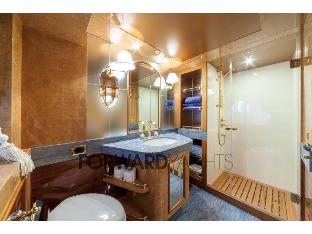 Notas internas- Cabina armatoriale matrimoniale sul ponte principale completa con bagno privato en-suite; - N. 3 Cabine ospiti doppie nel Lower deck ognuna con bagno privato completo; - Ampia cucina completa di: congelatore, forno Miele, frigorifero interno,ICE maker, lavatrice e lavasciuga Miele, lavastoviglie Notas de la instrumentaciónStrumentazione:-Plotter, - GPS, Radar, - Pilota automatico, - Ecoscandaglio, - Stereo, - Antenna satellitare, - Stazione meteo, - Touch screen Domotica: SIMRAD - Indicatori Flaps Notas de armamentoAccessori:- Stabilizzatori Seakeeper 26 e pinne Humphree- - Elica di prua Quick - - 3° postazione di comando; - Camminamenti laterali in teak - Doccia esterna fari fissi a poppa - Flap elettrici Humphree intruder - Garage per tender garage - Luci subacquee passerella - Pozzetto teak - Aria condizionata - Dissalatore - Altoparlanti - Antenna satellitare TV |