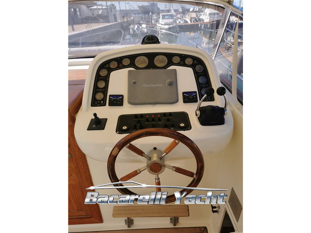 Notas internas1 cabina armatoriale di pura a "V" 1 dinette a dritta con tavolo a idraulico 1 bagno completo di lavello e doccia 1 piano cottura con lavello 2x fuochi e 1 frigo Notas de la instrumentaciónbussola magneticaangolo barra elica di pura Raymarine C 80 autopilota Notas de armamentoElica di pruamanette elettroniche aria condizionata cuscineria completa tendalino di poppa e di pura |
