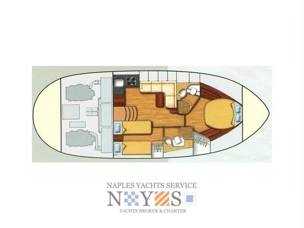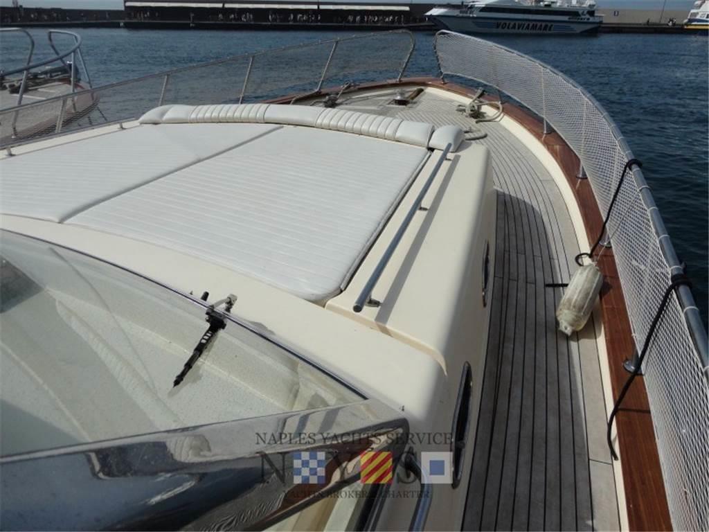 Notas internasNotas de la instrumentaciónBussola, Ecoscandaglio, GPS (RAYMARINE), Pilota automatico (RAYMARINE), Radar (RAYMARINE), Radio VHF.Notas de armamentoAllestimento tecnico e di coperta:Ancora, Camminamenti laterali in teak, Elica di prua - bow thruster, Flap idraulici, Passerella (BESENZONE), Presa 220V banchina, Raddrizzatore, Scaletta da bagno, Winch. Dotazioni domestiche di bordo: Aria condizionata, BBQ/ Grill, Prese interne 12v, Serbatoio Acque Nere. Intrattenimento: Antenna Satellitare TV, Stereo, TV. Cucina ed elettrodomestici: Cucina, Ghiacciaia, Microonde. Tappezzerie: Cuscineria completa, Tendalino. |
