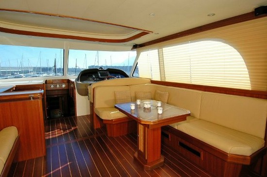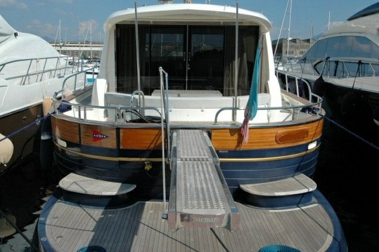 Notas internas3 baños 1 cabina cocina con vitrocerámica nevera congelador lavavajillas horno lavadora Notas de la instrumentaciónpiloto automáticoradar GPS/Plotter VHF Eco registro antena de satélite Notas de armamentopasarela arco idraulicelicagrupo electrógeno aire acondicionado hélice de proa cojines gran plataforma de popa cubierta de teca puente y bañera teca escalera de baño |