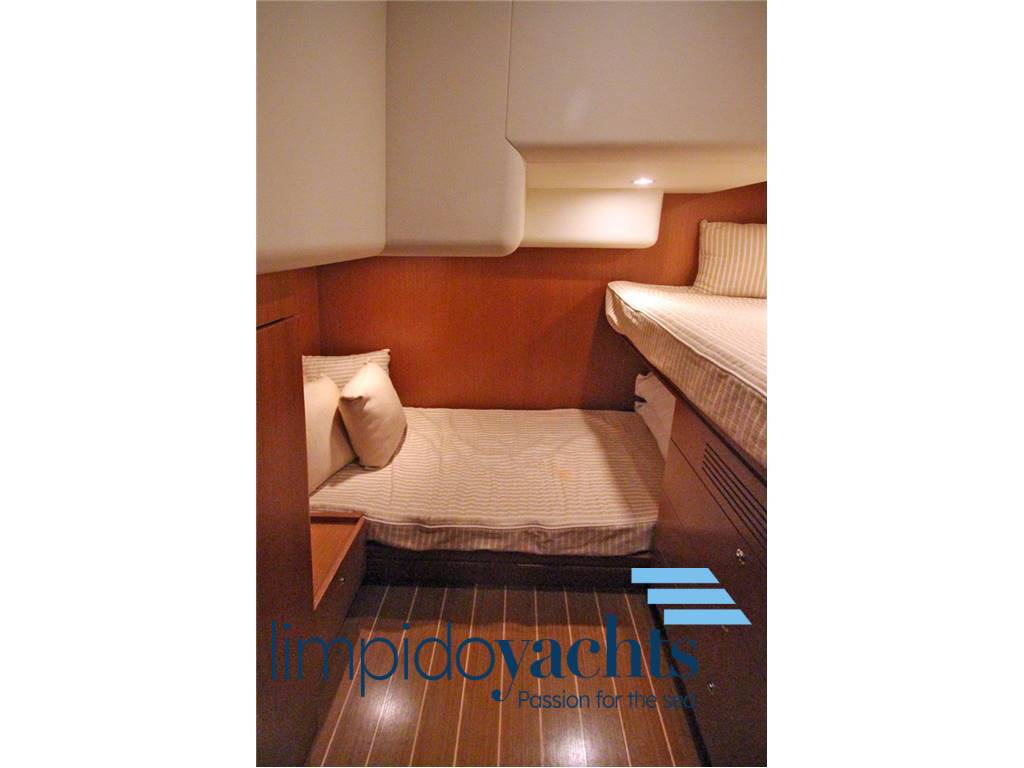 Notas internasAMPIA DINETTE CON DIVANO A U IN PELLE CHIARA, PARQUETTE, DIVANO A MURATA CABINA ARMATORIALE A PRUA CON BAGNO DEDICATO, CABINA OSPITI CON LETTI A L, CABINA VIP CON LETTI IN PIANO CUCINA OPEN COMPLETA CON VETROCERAMICA E FRIGO A COLONNA BAGNO DIURNO Notas de la instrumentaciónSISTEMA YACHT CONTROLLER NEMESIS CON ELICA DI POPPA VIRTUALEGPS CARTOGRAFICO A COLORI, MANETTE ELETTRONICHE ZF, ELICA DI PRUA CONTA METRI CATENA, FLAPS, ANGOLO DI BARRA, COMPUTER MAN FARO ORIENTABILE STRUMENTAZIONE RIPETUTA SUL FLY Notas de armamentoPOZZETTO IN TEAK, PASSAGGI LATERALI E PONTE IN TEAK, SPIAGETTA IN TEAK, ANTENNA SATCUSCINERIA COMPLETA, 4 FRIGORIFERI + CONGELATORE, BIMINI, CHIUSURE INVERNALI, OMBREGGIANTI, PASSERELLA IDRAULICA, DISSALATORE ZEN 100 lt/h GENERATORE, ARIA CONDIZIONATA, LUCI SUB, GRILL, DOTAZIONI DI SICUREZZA |