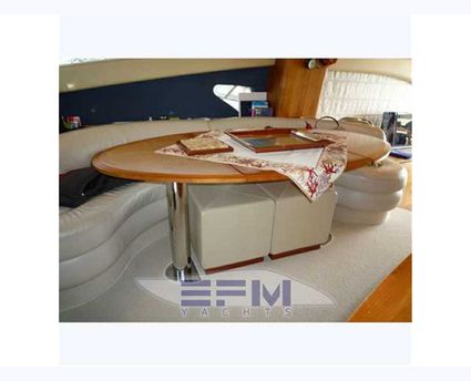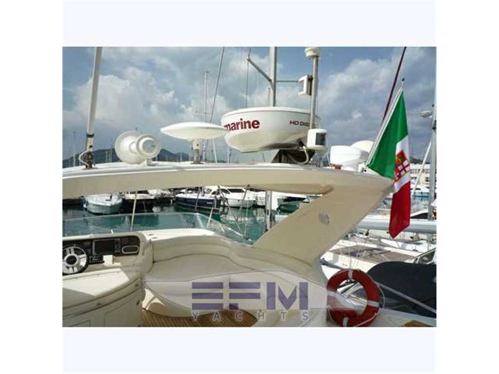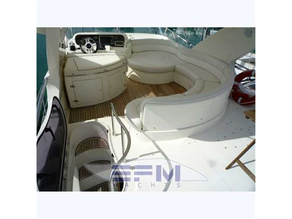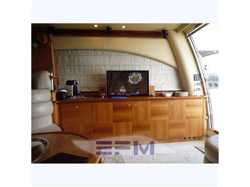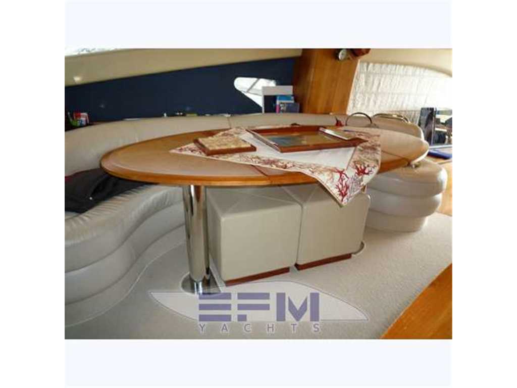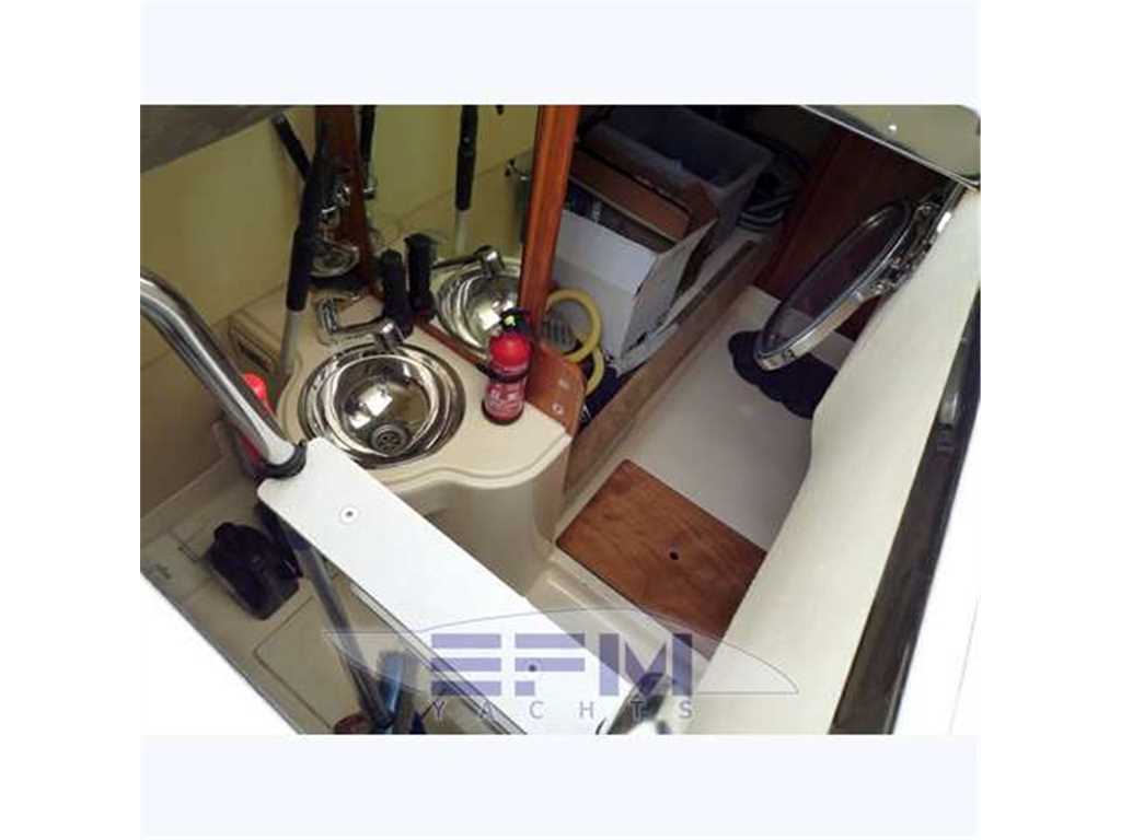 Notas internas1 Master cabin ensuite 1 VIP cabin ensuite 1 Twin cabin 1 Day head 1 crew cabin (2 beds) She can accommodate up to 6 guests overnight in three elegant cabins, distributed on the lower deck: a Master stateroom, a VIP stateroom, a Twin cabin with direct access to the day head The full-beam Master stateroom is located at the stern of the ship and features large closets, a generous double bed, flat-screen TV and an en-suite bathroom with shower. On the other side of the hallway there is the VIP stateroom, positioned in front of the Master, and it features a double bed, built-in wardrobes, a flat-screen TV and an en-suite bathroom with shower. Between the Master and the VIP staterooms, we find the Twin cabin; it features two single beds and direct access to the day head with shower Notas de la instrumentaciónDrive shaft Engine controls electricalEngine controls at Stern deck Bowthruster & Sternthruster Propeller shaft material stainless steel Electric bilge pump Electrical installation 12/24/230v Ssecond Generator Mase 12 KW Battery charger Inverter Shorepower with cable Winder Insulation transformer Gyroscopic Mitsubishi Stabilizers Trimtabs Third drive station on cockpit NAVIGATION INSTRUMENTS REPETED ALSO ON FLYBRIDGE Depth sounder ,Log ,VHF , Autopilot, Radar, GPS, Plotter . Notas de armamentoBimini on flybridegeSun awning retractable at cockpit Cockpit cushions Cockpit table Bathing Platform Boarding ladder Transom door Gangway Retractable Hyd. Deck shower Anchor Anchor chain Windlass 2000 W Capstan 2 x 700 W Deck wash Deck crane on Fly Sea railing stainless steel Life raft Horn Fenders yes Mooring lines 3 flat TV (40',26',20') TV receiver Direct HD Satellite KHV Trac Vision DVD player Surround Sound System BOSE Cockpit speakers Speakers in salon Speakers in cabin Extinguisher in engine room yes tender garage Swim Platform electric openening |