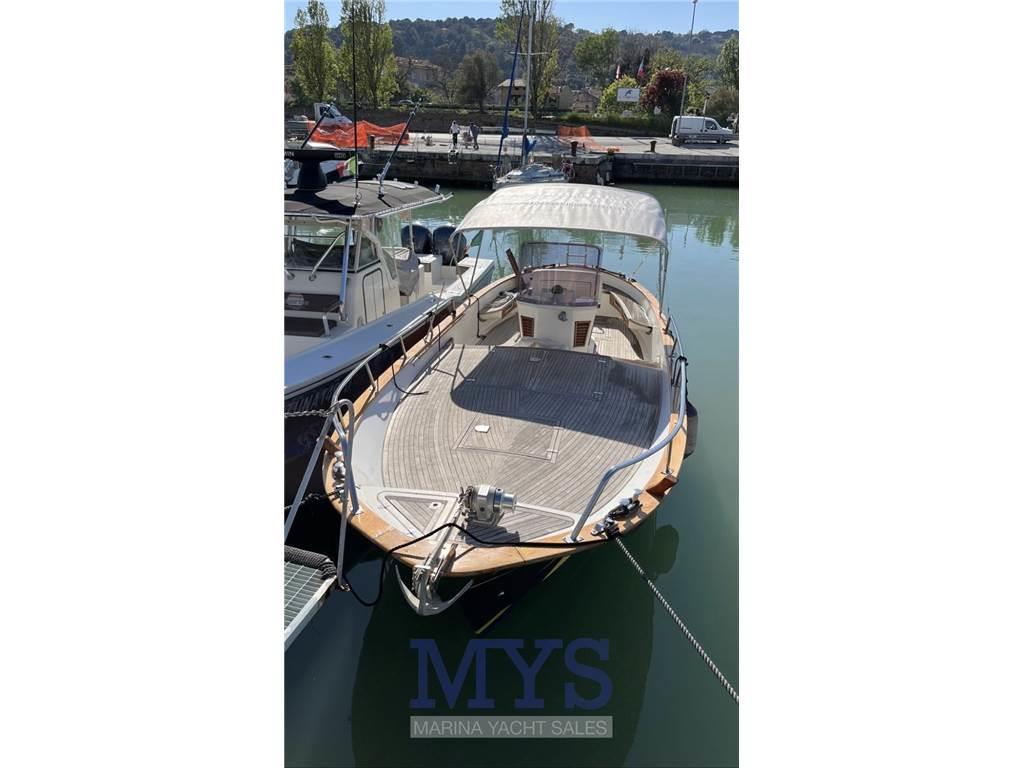 Notas internasNotas de la instrumentaciónStrumenti motorePilota automatico Vericcello elettrico Elica di prua Batterie Caricabatteria Autoclave Doccetta esterna Pompa di sentina manuale Pompa di sentina elettrica Notas de armamentoPozzetto e coperta in teakCuscineria completa Tendalino parasole centro barca Telo copriconsole Telo coprisedile Scafo color verde Barca manutentata in maniera impeccabile. Tutti gli anni il rimessaggio invernale è stato fatto al coperto. Lavori di manutenzione eseguiti negli ultimi anni: 2020 carteggiate e verniciate banda e fiancate 2019 montata nuova bussola retroilluminata 2017 rifatta tutta la coperta in teak |