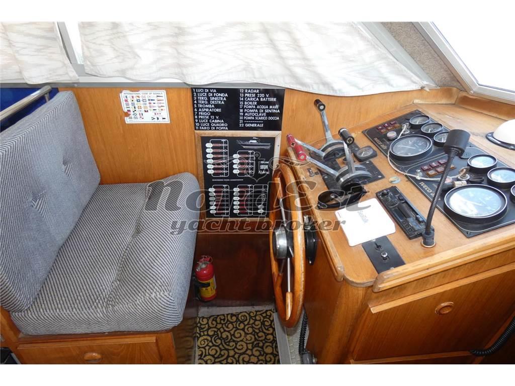 Notas internasBagni: 1 Cabine: 1 Cucina Frigorifero Notas de la instrumentaciónPilota automatico: Presente Ecoscandaglio: Presente GPS: Presente Plancetta: Presente Radar: Presente Vhf: Presente Notas de armamentoImpianto antincendio Doccia esterna Flaps Zattera di salvatagio |