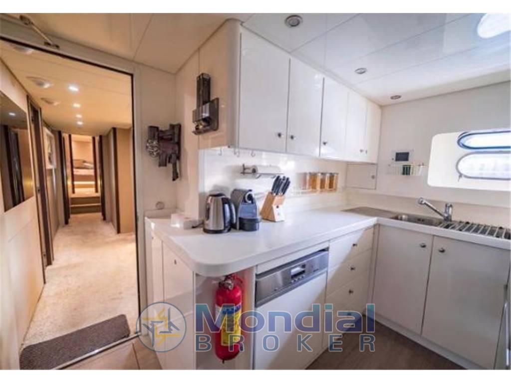 Notas internasThere is also a Queen VIP which can convert to a Twin, a Twin cabin and a Single cabin. Timeless styling, beautiful furnishings and sumptuous seating feature throughout to create an elegant and comfortable atmosphere. There is also ample exterior living on deck. Her aft deck boasts a large sunbathing area on sun pads and steps that lead down to the swim platform with hot and cold shower. Forward is a double sun pad Galley Fully equipped kitchen, dishwasher, fridge, freezer, (second freezer available), oven. Bosh Dryer and Washing machine. Notas de la instrumentaciónRadar Furuno, TV Set, VCR, DVD Player, Autopilot – Simrad, Radio, Compass, CD Player, GPS – FurunoNotas de armamentoDishwasherBow Thruster - Hydraulically divren off 2 PTOs Washing Machine - + Dryer BOSCH Oven Air Conditioning - Chilled water system by Marine Hot Water - 2 x 50L Refrigerator Fresh Water Maker - Idromar 200l/h • Deep Freezer Battery Charger Shore Power Inlet • Generator - 2 KOHLER (27kw – 800 hrs + 17 kw - 5,450 hrs) Teak Cockpit Cockpit Shower Shore Power Inlet Teak Sidedecks Hydraulic Gangway - Besenzoni Cockpit Cushions Swimming Ladder Entertainment Equipment All the audio and multimedia is controlled by SONOS. Any iPhone, iPad or computer can access and control the playlist in each and every room of the yacht, including the outside areas. All cabins have built in TV, DVD/CD), Dune HD. Salon TV Samsung 65’ Home Cinema Entrainment Electrical System Fresh water pumps: 2 x Autoclave 24V, 220V Grey water pumps: 2 x Jabsco Black water pump: Jabsco Black water pump: Jabsco Fuel transfer: 2 x Jabsco Tankage Black water: 700L Grey water: 300 L |