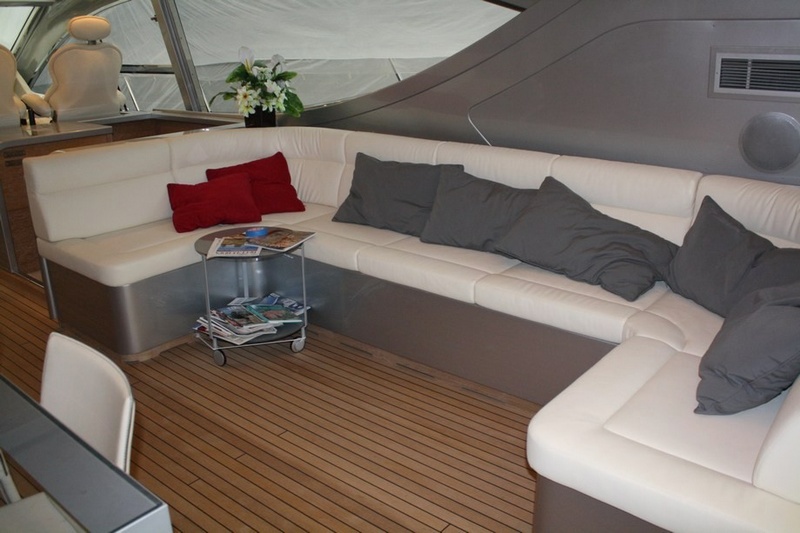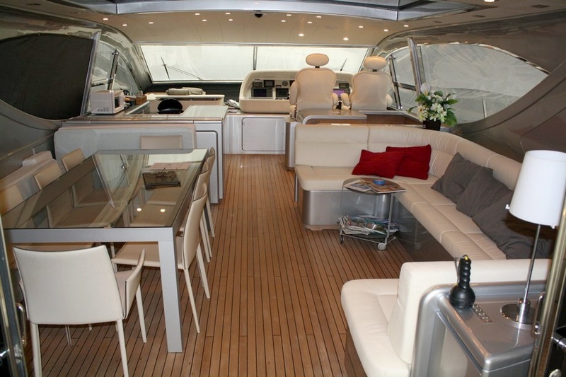 Notas internascubierta: terraza bañera, amplio salón con sofá-ca, área de comedor con mesa y ocho sillas contraste, bar y sistemas de control. piso inferior: en medio del barco camarote doble principal, armario, baño con ducha independiente, y una cabina con una cama doble francesa, baño con ducha separada, y una cabina con camas planas y el rollo de tercera-lejos de cama, baño con ducha independiente, cocina con estufa de vitrocerámica, frigorÃfico doble / columnas congelador, lavavajillas y la combinación de microondas. Tripulación: una cabina doble con camas literas, ale mesa del comedor con un sofá, baño con ducha. Interior de roble blanco, sofás de cuero, que viven en el suelo de la sala de teca.