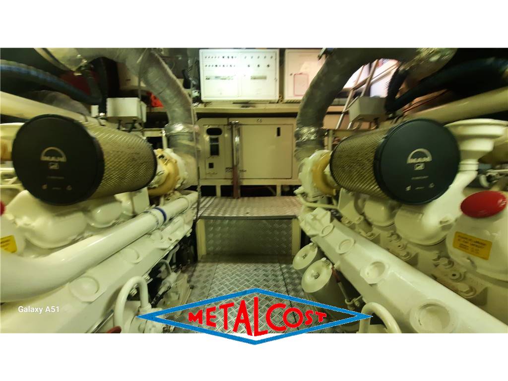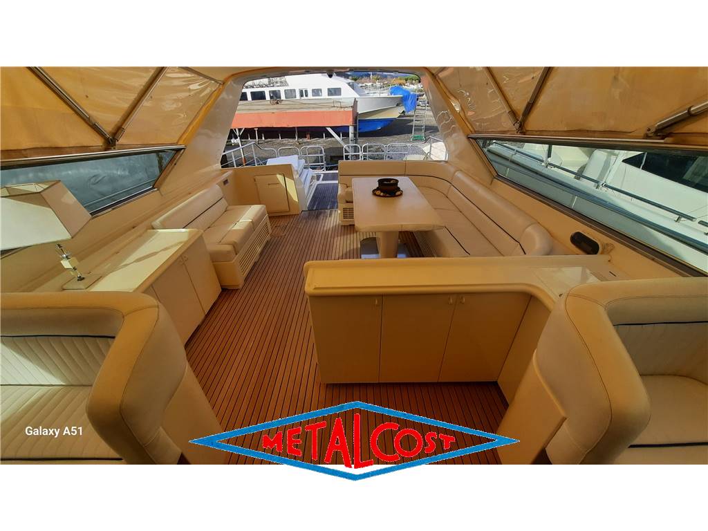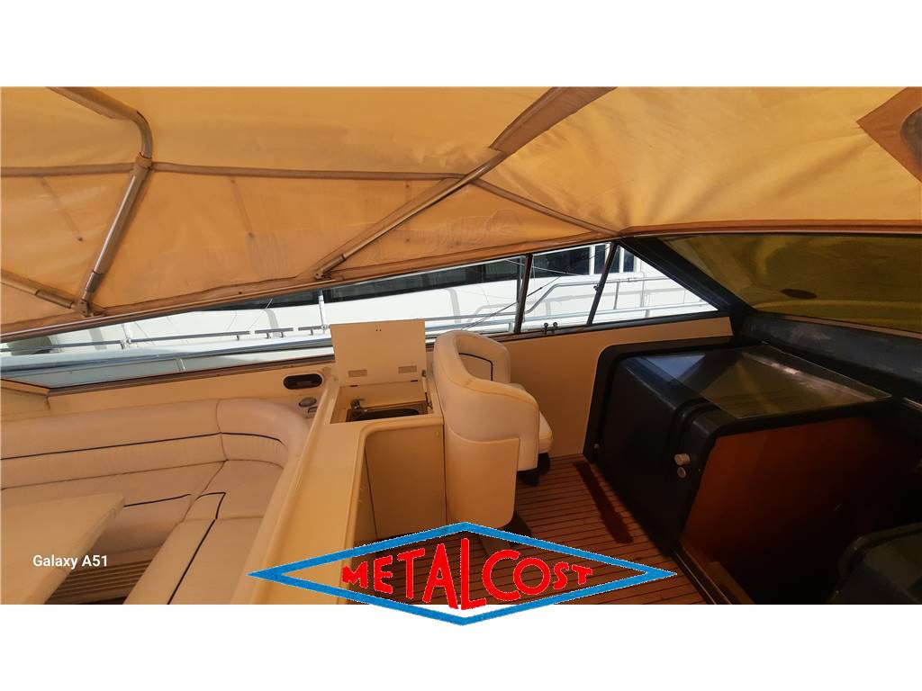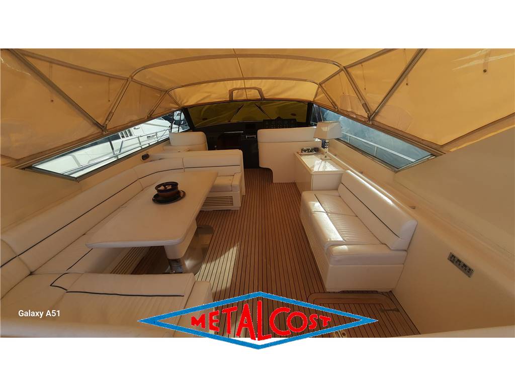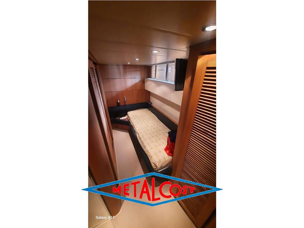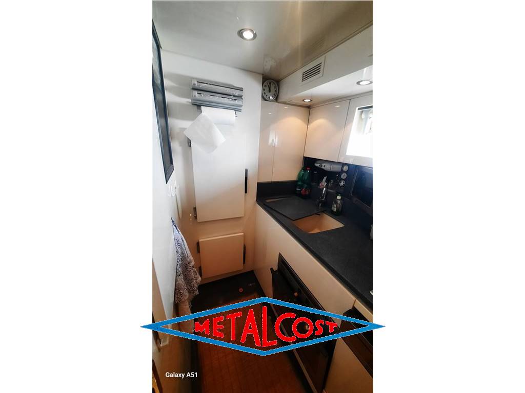 Notas internas1 Doppia in piano, 1 Matrimoniale italiana, 1 Cabina equipaggio, 3 Toilette. Notas de la instrumentaciónAngolo barra, Antenna radar, Bussola, Comando motori elettronico, Contamiglia, Ecoscandaglio, Fax, GPS, Interfono, Log, Pilota automatico, Plotter, Radar, Radio VHF.Notas de armamentoAllestimento tecnico e di coperta:Allarme fumo/gas, Allarme motore, Allarme sentina, Apertura Vano Motore Elettrica, Asse di rispetto, Autogonfiabile scaduto , Colorazione speciale (scafo colore crema), Doccia esterna (calda e fredda), Elica di prua - bow thruster, Faro orientabile, Flap elettrici, Flap idraulici, Garage per tender (con gruette besenzoni elettrica), Impianto antincendio, Indicatori Flaps, Lavaggio catena, Lavandino nel Pozzetto, Luci di cortesia, Luci subacquee, Passerella (idraulica), Piattaforma, Pompa di sentina automatica, Pompa di sentina elettrica, Pompa di sentina manuale, Pozzetto Teak, Presa 220V banchina, Raddrizzatore, Rollbar, Salpa Ancore Elettrico, Scaletta da bagno, Tavolo pozzetto, Winch tonneggio di poppa, Winch tonneggio di prua. Dotazioni domestiche di bordo: Aria condizionata (calda e fredda anche nel pozzetto), Cassaforte, Impianto acque nere, Prese interne 12v, Prese interne 220v, Serbatoio Acque Nere, 2 Telecamera (pozzetto e sala macchine), Telefono Interno, 3 WC marino elettrico. Dotazioni di sicurezza: Dotazioni di sicurezza oltre 50 miglia, E.P.I.R.B.. Intrattenimento: Altoparlanti, Impianto TV, Meccanismo saliscendi per TV (nel pozzetto), Radio AM/FM, Stereo, 3 TV (pozzetto dinette e cabina di prua). Cucina ed elettrodomestici: Congelatore, Cucina, Fornello, Forno, Frigorifero esterno, Frigorifero interno, Ghiacciaia, ICE Maker (in pozzetto), Lavastoviglie, Lavatrice, Microonde. Tappezzerie: Bimini, Cappottina, Copripozzetto, Cuscineria completa, Cuscineria di poppa, Cuscineria di prua, Cuscineria Pozzetto, Teli copri finestra, Telo copriconsolle, Tendalino. |