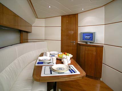 Notas internasNotas de la instrumentaciónGPS, piloto automático, registro, más sólida, eco radar, estéreo, bar, tv, lcd tv en el salón, vhf, pasillo hidráulico, deformación winch asà como propulsor de proa y popa hélice, aire acondicionado, microondas, nevera y congelador, cerámica cristal vitrocerámica, lavavajillas, esposas, parrilla en la cabina, nevera en cabina, eléctricamente orentibale faroNotas de armamentoCabina de teca y madera de teca, toldos, cojines al aire libre |
