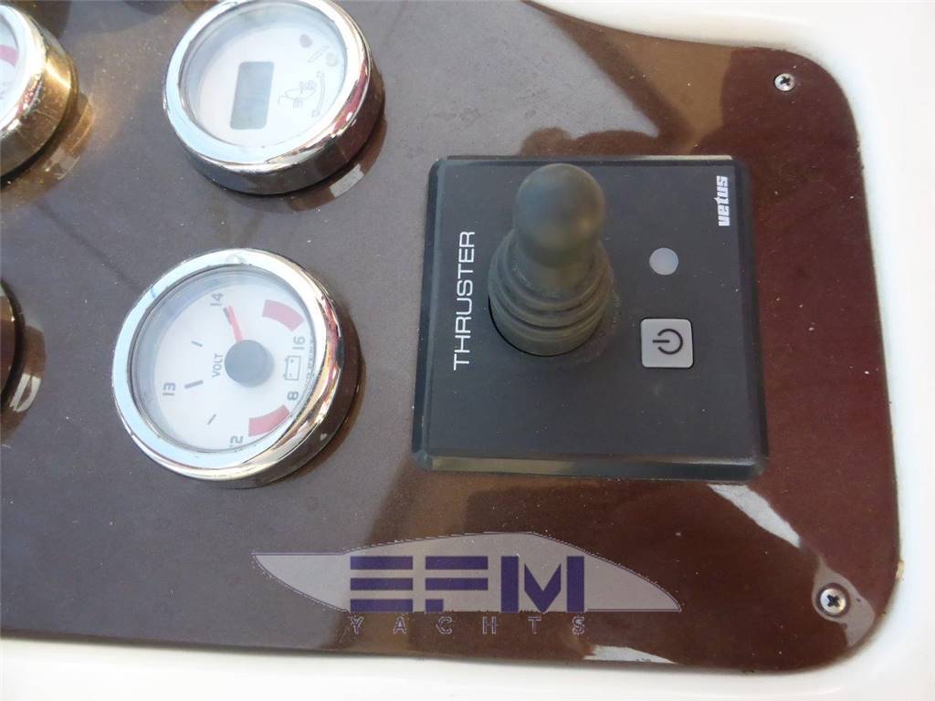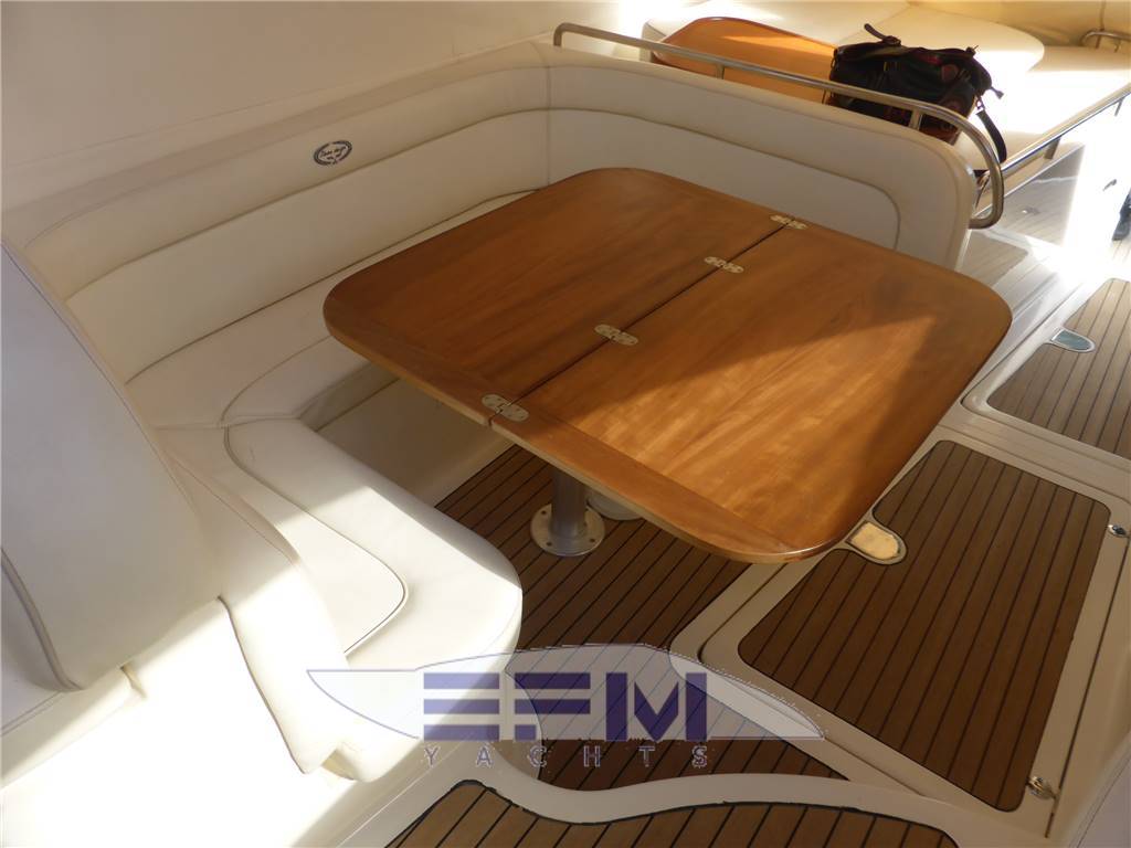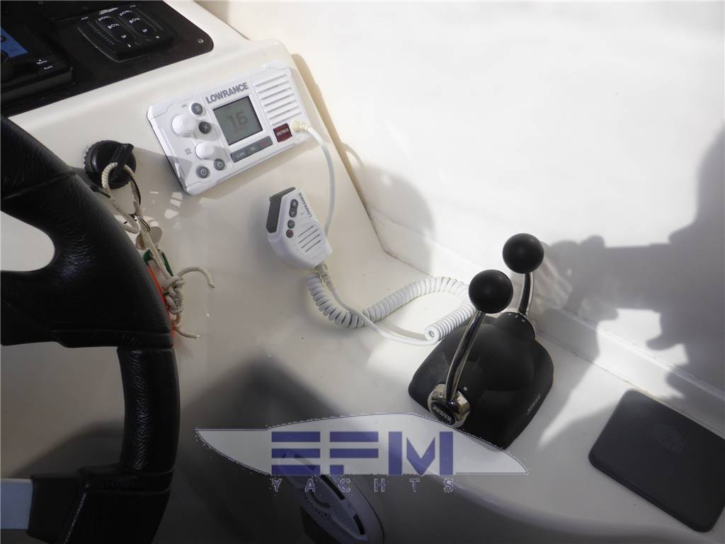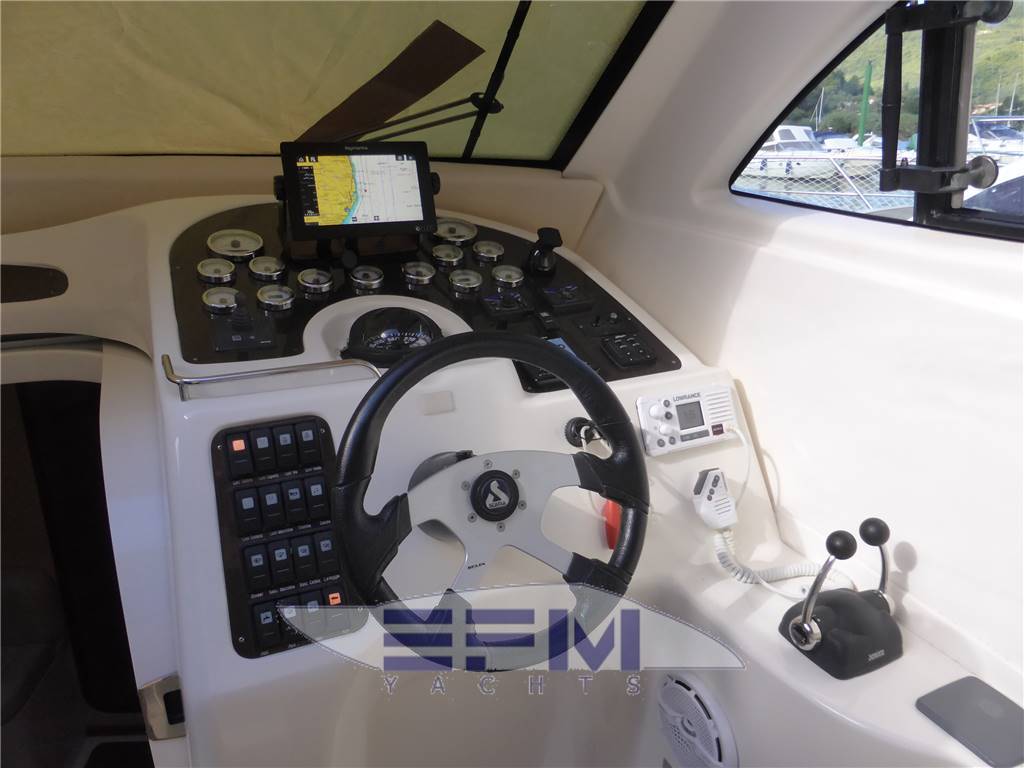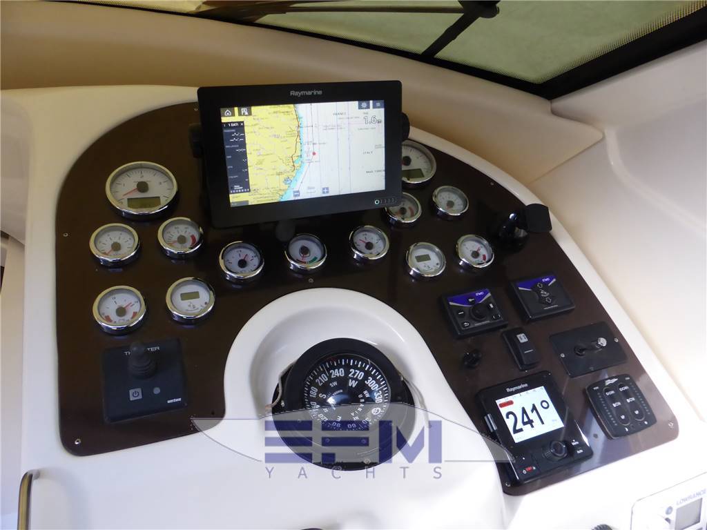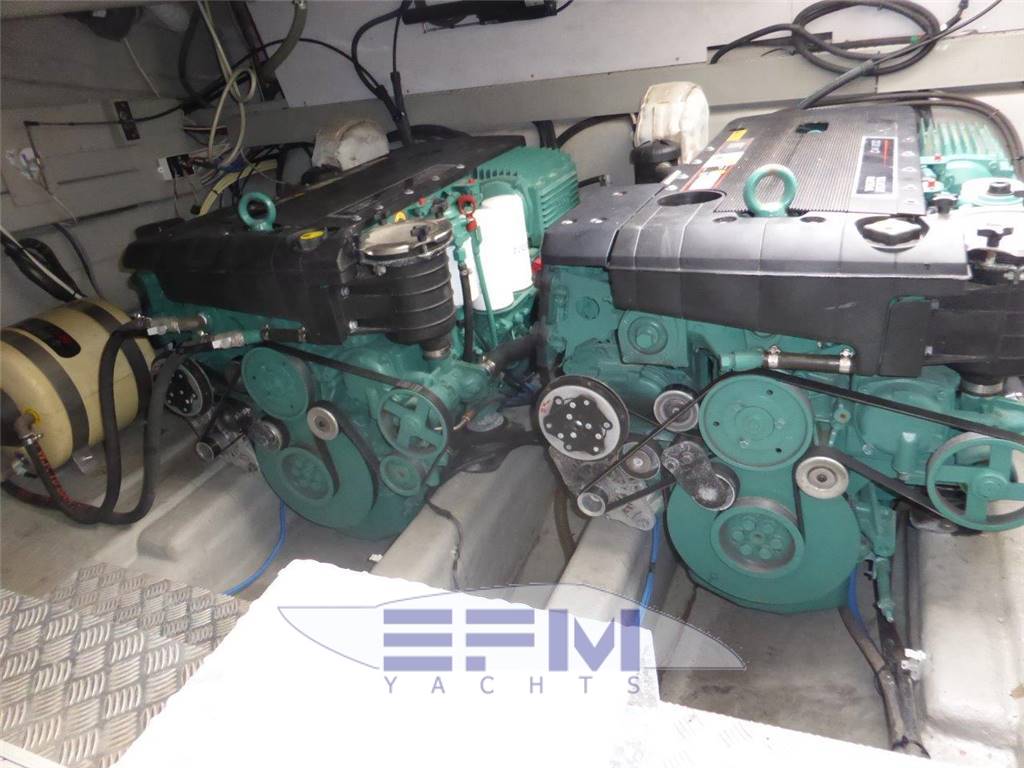 Notas internasLungi dall'essere semplicemente una copertura rigida del pozzetto, è invece una struttura complessa che, in termini automobilistici, chiameremmo "cabrio". Grazie ad essa, i diversi ambienti dell'articolato pozzetto - la plancia di guida, la dinette, l'ampio prendisole - risultano ancor più intimi e funzionali. E persino la profonda plancetta poppiera, che certamente non può essere definita come un vero e proprio ambiente, finisce per acquisire una maggiore importanza quale superficie più esposta di tutto lo scafo. Il piacere di una guida confortevole determina l'entusiasmo di viaggiare. Lo stile è ciò che distingue ogni cosa in modo inconfondibile. Il nostro ci ha portati a creare dei capolavori che si guidano con il cuore. Per conquistare il successo la competenza non basta. Serve la passione. Interni in ciliegio con divaneria in ski, pannelli rivestiti in ski e pavimenti in PARQUET - Cabina matrimoniale a prua, con letto ad isola e comodo armadio guardaroba, cassettiere e pensili a parete - Unico grande bagno esterno con doppia entrata sia dalla Armatoriale che dalla dinette completo di mobile con lavabo, pensile e wc elettrico e box doccia con con ante in plexiglass fume' - Seconda cabina ospiti a poppa con due letti in piano trasformabile in unico grande e comodo letto matrimoniale, mobile armadio , lavabo e entrata separata dalla dinette - grandi oblo' in acciaio su ogni lato rendono molto luminosa ed ampia la dinette composta da un comodo divano a L in ski e con il tavolo in ciliegio di forma rettangolare abbattibile per possibile trasformazione in letto, - contrapposto a murata sx il mobile cucina a attrezzato con grande lavello inox completo di miscelatore e fornello a 2 fuochi vetroceramica ,frigo 60 lt. , forno micronde , pensili, e dispensa di buone dimensioni - Esternamente nel pozzetto in teak troviamo: un comodo divano a C con sedute in Ski e con il tavolo rettangolare in vtr abbattibile con movimento elettrico , il mobile dotato di frigorifero e lavello , piu' a prua il secondo divano con 2 sedute , a dritta la doppia seduta del pilota con timoneria , ampio prendisole a poppa sopra il garage tender. Notas de la instrumentaciónStrumentazione elettronica completa : Gps/plotter RAYMARINE 2017 cartografico a colori , autopilota Raymarine 2017 , vhf Lowrance - indicatore angolo di barra - comando elica di prua - ecoscandaglio - stereo con cd - tv lcd salone - radio stereo con cd e dvd - antenna tv - manette elettroniche - comando salpancora elettrico in pozzetto con conta catena quick- comando assetto flaps idraulici - strumentazione analogica vdo per controllo parametri motori - Antenna tv - Comandi Volvo Penta EVC (trip computer) -Notas de armamentoULTERIORI OPTIONAL•Parabrezza in cristallo termoformato •Tergicristalli •N° 2 finestrini laterali apribili con movimento verticale •Tettuccio elettrico su rotaie •Gruppo di sicurezza per chiusura tettuccio •N° 4 tientibene in acciaio per passaggio a prua •Pavimenti interni in LEGNO •Faretti ad incasso nel pozzetto |