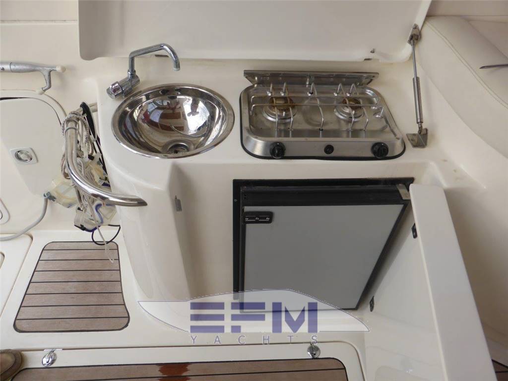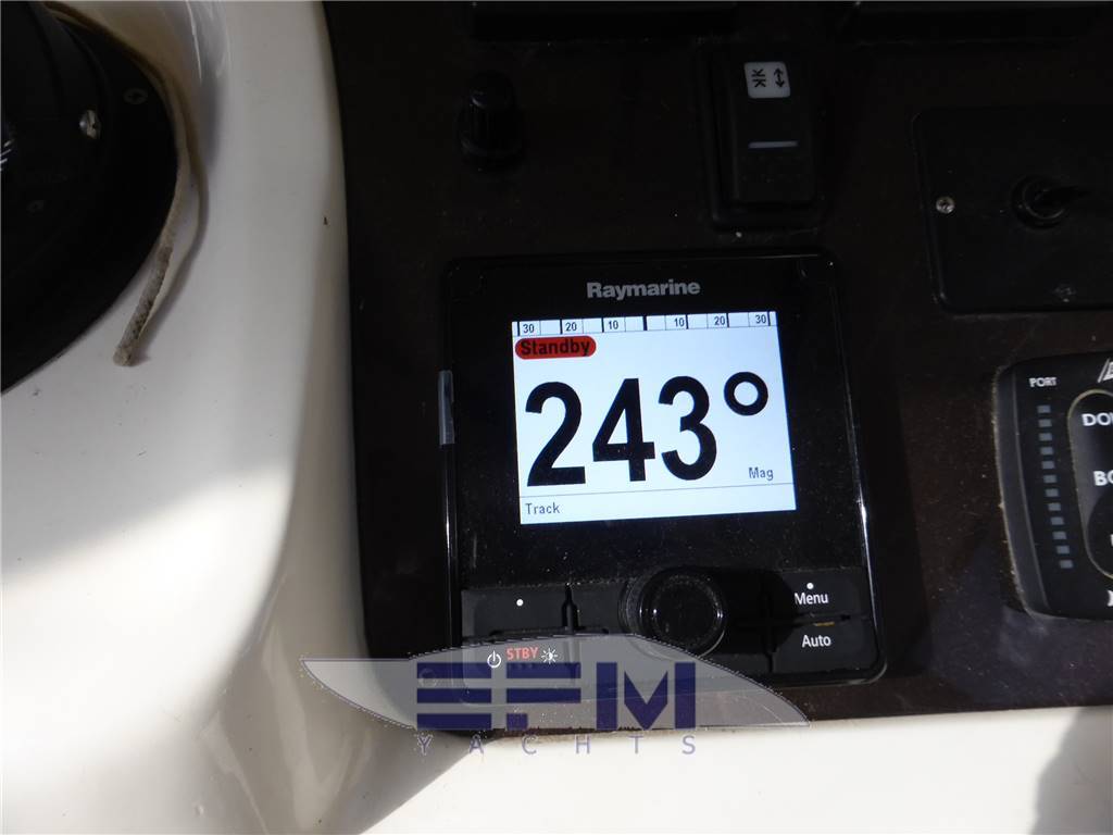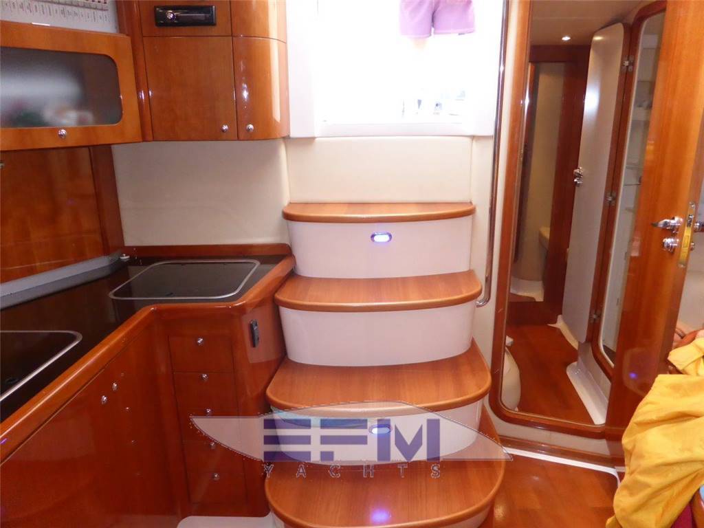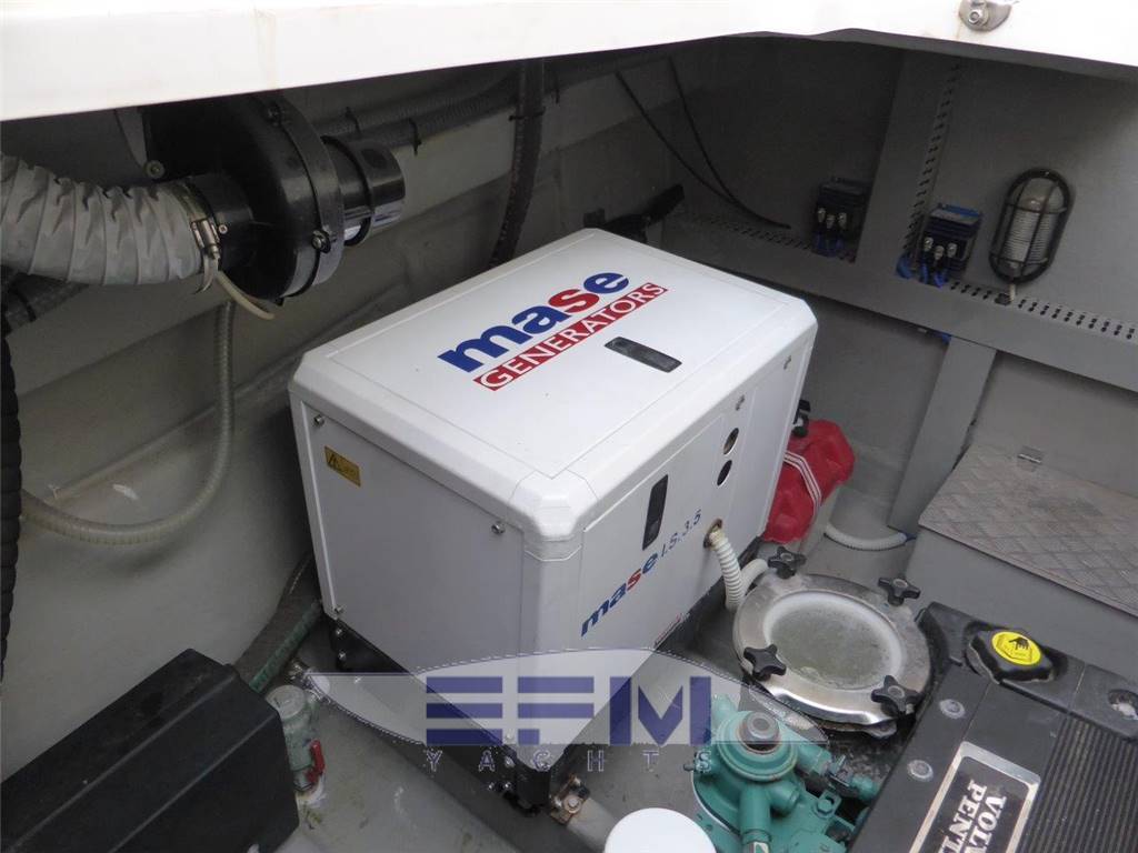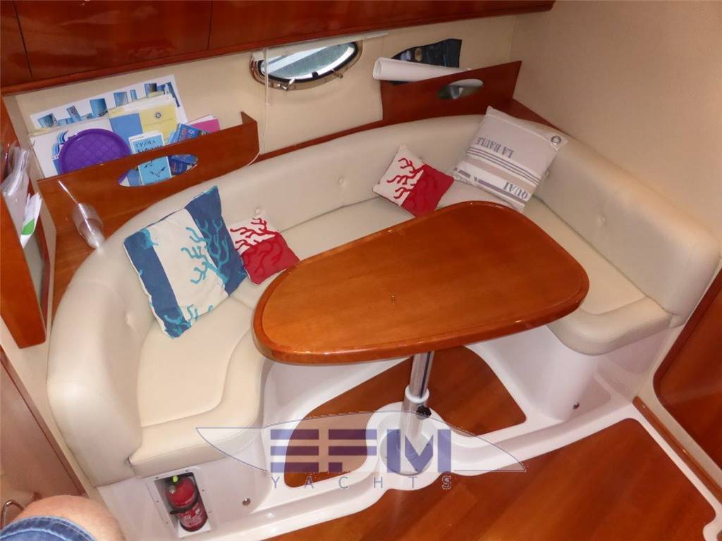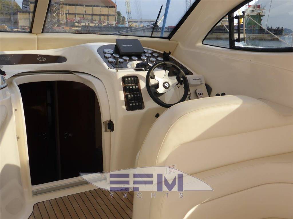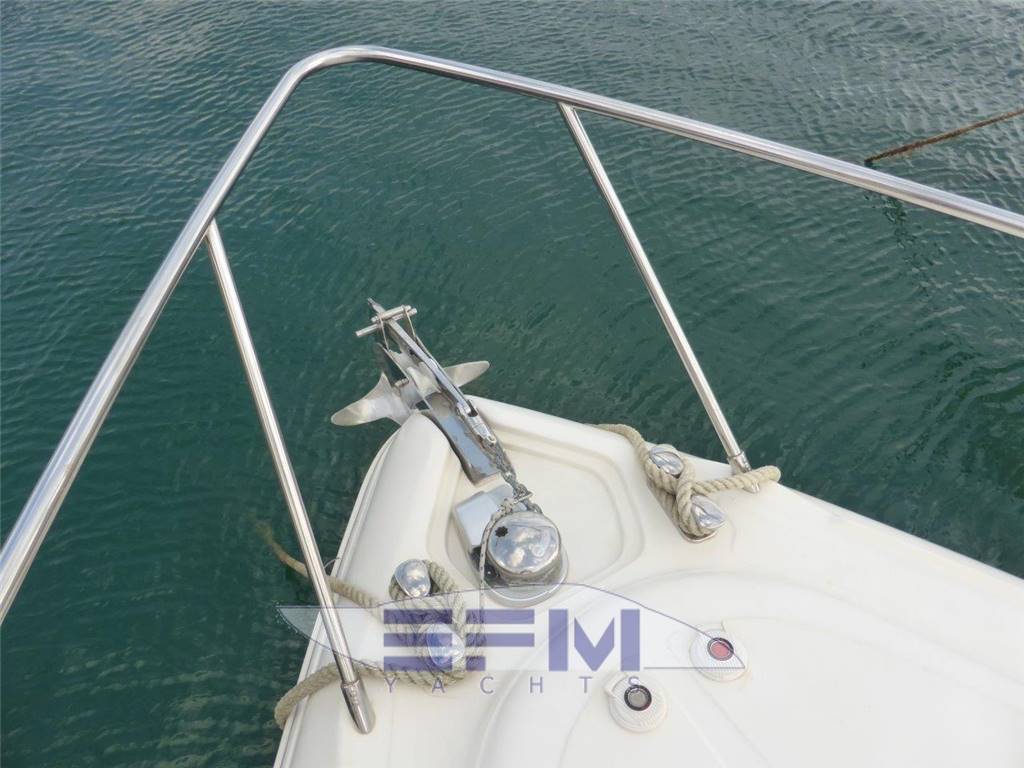 Notas internasLungi dall'essere semplicemente una copertura rigida del pozzetto, è invece una struttura complessa che, in termini automobilistici, chiameremmo "cabrio". Grazie ad essa, i diversi ambienti dell'articolato pozzetto - la plancia di guida, la dinette, l'ampio prendisole - risultano ancor più intimi e funzionali. E persino la profonda plancetta poppiera, che certamente non può essere definita come un vero e proprio ambiente, finisce per acquisire una maggiore importanza quale superficie più esposta di tutto lo scafo. Il piacere di una guida confortevole determina l'entusiasmo di viaggiare. Lo stile è ciò che distingue ogni cosa in modo inconfondibile. Il nostro ci ha portati a creare dei capolavori che si guidano con il cuore. Per conquistare il successo la competenza non basta. Serve la passione. Interni in ciliegio con divaneria in ski, pannelli rivestiti in ski e pavimenti in PARQUET - Cabina matrimoniale a prua, con letto ad isola e comodo armadio guardaroba, cassettiere e pensili a parete - Unico grande bagno esterno con doppia entrata sia dalla Armatoriale che dalla dinette completo di mobile con lavabo, pensile e wc elettrico e box doccia con con ante in plexiglass fume' - Seconda cabina ospiti a poppa con due letti in piano trasformabile in unico grande e comodo letto matrimoniale, mobile armadio , lavabo e entrata separata dalla dinette - grandi oblo' in acciaio su ogni lato rendono molto luminosa ed ampia la dinette composta da un comodo divano a L in ski e con il tavolo in ciliegio di forma rettangolare abbattibile per possibile trasformazione in letto, - contrapposto a murata sx il mobile cucina a attrezzato con grande lavello inox completo di miscelatore e fornello a 2 fuochi vetroceramica ,frigo 60 lt. , forno micronde , pensili, e dispensa di buone dimensioni - Esternamente nel pozzetto in teak troviamo: un comodo divano a C con sedute in Ski e con il tavolo rettangolare in vtr abbattibile con movimento elettrico , il mobile dotato di frigorifero e lavello , piu' a prua il secondo divano con 2 sedute , a dritta la doppia seduta del pilota con timoneria , ampio prendisole a poppa sopra il garage tender. Notas de la instrumentaciónStrumentazione elettronica completa : Gps/plotter RAYMARINE 2017 cartografico a colori , autopilota Raymarine 2017 , vhf Lowrance - indicatore angolo di barra - comando elica di prua - ecoscandaglio - stereo con cd - tv lcd salone - radio stereo con cd e dvd - antenna tv - manette elettroniche - comando salpancora elettrico in pozzetto con conta catena quick- comando assetto flaps idraulici - strumentazione analogica vdo per controllo parametri motori - Antenna tv - Comandi Volvo Penta EVC (trip computer) -Notas de armamentoULTERIORI OPTIONAL•Parabrezza in cristallo termoformato •Tergicristalli •N° 2 finestrini laterali apribili con movimento verticale •Tettuccio elettrico su rotaie •Gruppo di sicurezza per chiusura tettuccio •N° 4 tientibene in acciaio per passaggio a prua •Pavimenti interni in LEGNO •Faretti ad incasso nel pozzetto |