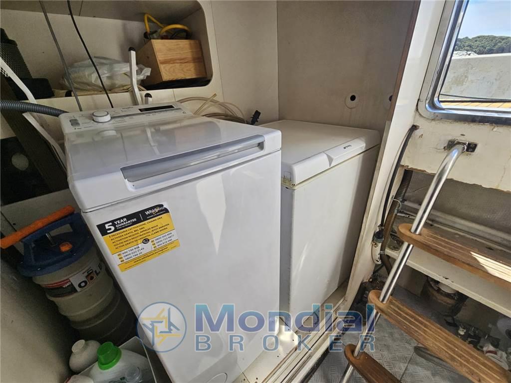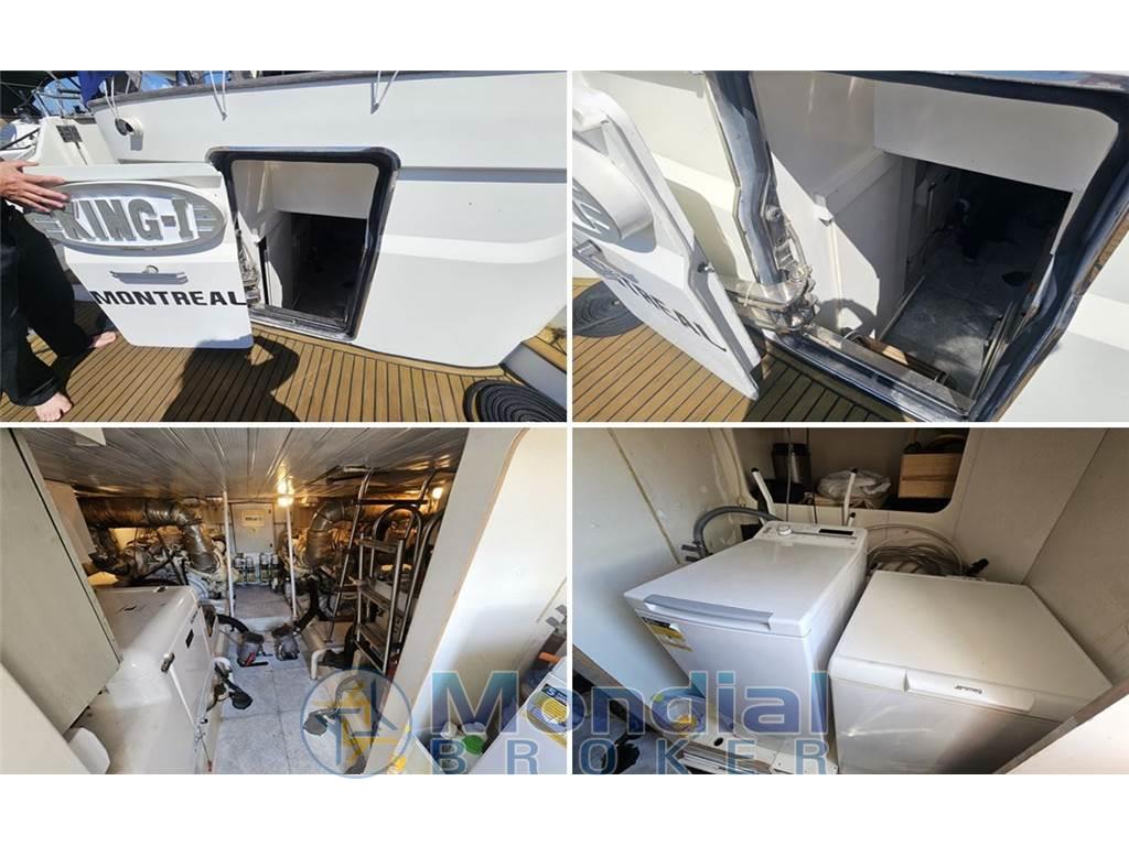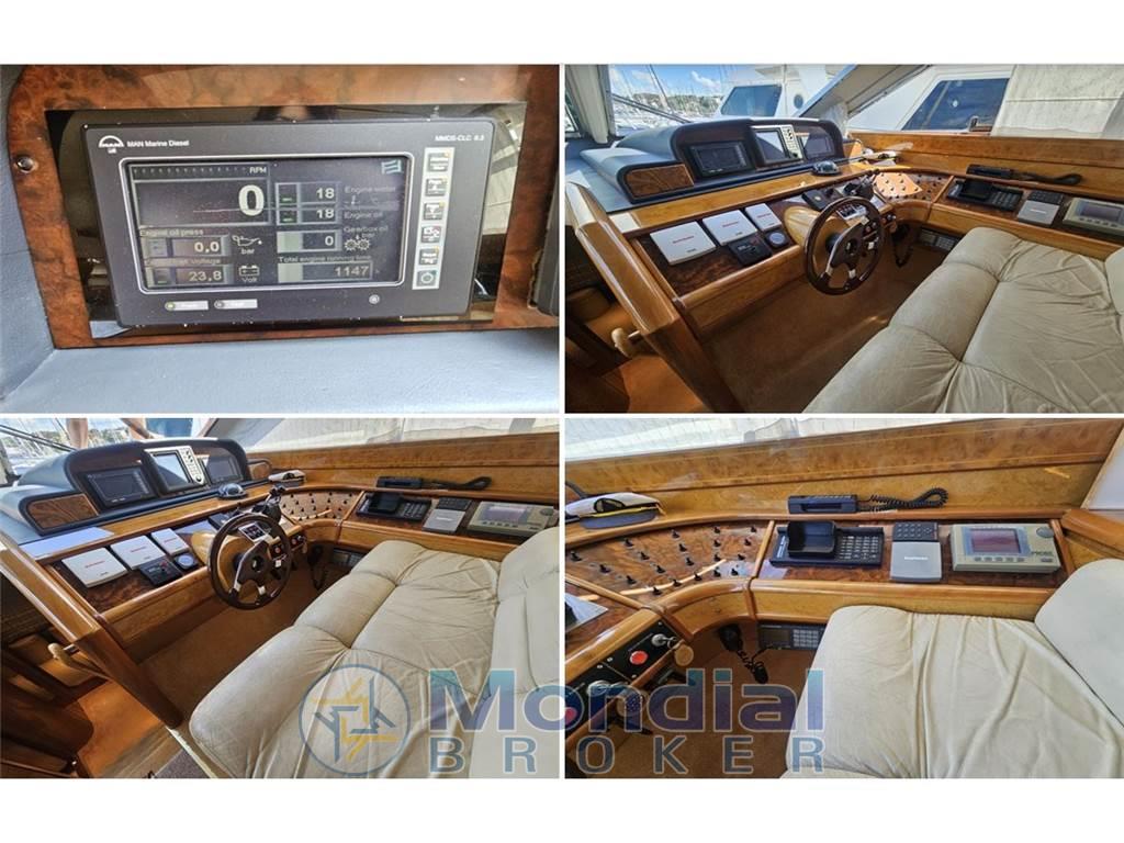 Notas internasNotas de la instrumentaciónAngolo barra, Bussola, Ecoscandaglio, GPS, Plotter, Radar, Radio VHF.Notas de armamentoAllestimento tecnico e di coperta:Allarme motore, Ancora, Doccia esterna, Doppia timoneria, Elica di prua - bow thruster, Gruette per tender su fly, Passerella, Pompa di sentina automatica, Pozzetto Teak, Presa 220V banchina, Presa acqua banchina, Salpa Ancore Elettrico, Scaletta da bagno, Tavolo pozzetto, Winch tonneggio di poppa. Dotazioni domestiche di bordo: Aria condizionata, Clima reversibile, Prese interne 12v, Prese interne 220v, 3 WC marino elettrico. Intrattenimento: Altoparlanti, Impianto TV, Stereo, TV. Cucina ed elettrodomestici: Cucina, Fornello, Forno, Frigorifero esterno, Frigorifero interno, ICE Maker, Lavasciuga, Lavatrice. Tappezzerie: Cappottina, Cuscineria completa, Cuscineria fly, Tendalino, Zanzariere. |