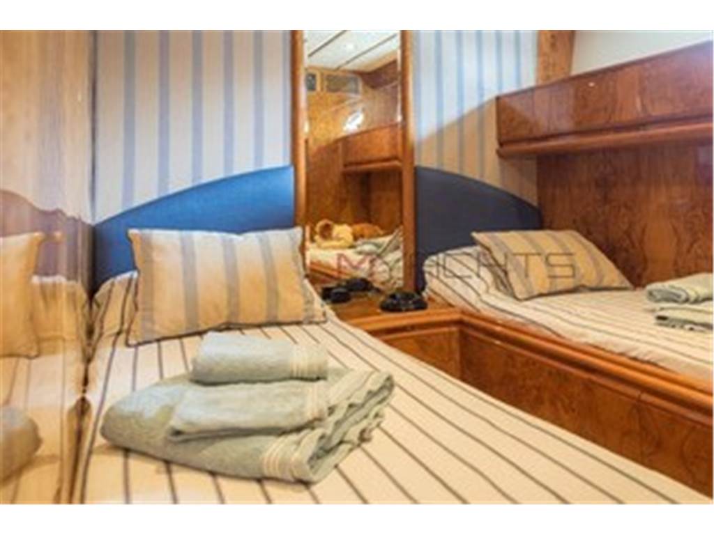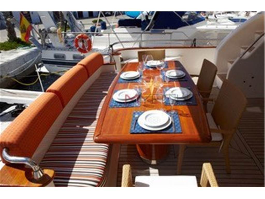 Notas internasTotal Guests (Sleeping): 8 Total Guests (Cruising): 10 Cabin Configuration: 2 Double, 2 Twin Bed Configuration: 1 King, 1 Queen, 4 Single Notas de la instrumentaciónBussola, Contamiglia, Ecoscandaglio, GPS, Interfono, Log, Pilota automatico, Plotter, Radar, Radio VHF, SSB, Stazione vento, Telefono satellitare.Notas de armamentoAllestimento tecnico e di coperta:Ancora, Autogonfiabile, Camminamenti laterali in teak, Doccia esterna, Doppia timoneria, Gruette, Passerella, Pozzetto Teak, Presa 220V banchina, Tender, Winch. Dotazioni domestiche di bordo: Aria condizionata, Impianto acque nere, Prese interne 12v, Prese interne 220v, Riscaldamento. Dotazioni di sicurezza: E.P.I.R.B.. Intrattenimento: Altoparlanti, DVD, Home Theater, Stereo, TV. Cucina ed elettrodomestici: Cucina, Lavastoviglie, Lavatrice. Tappezzerie: Bimini, Cappottina, Cuscineria completa, Cuscineria di poppa, Cuscineria di prua, Cuscineria fly, Cuscineria Pozzetto, Telo copriconsolle, Tendalino. |