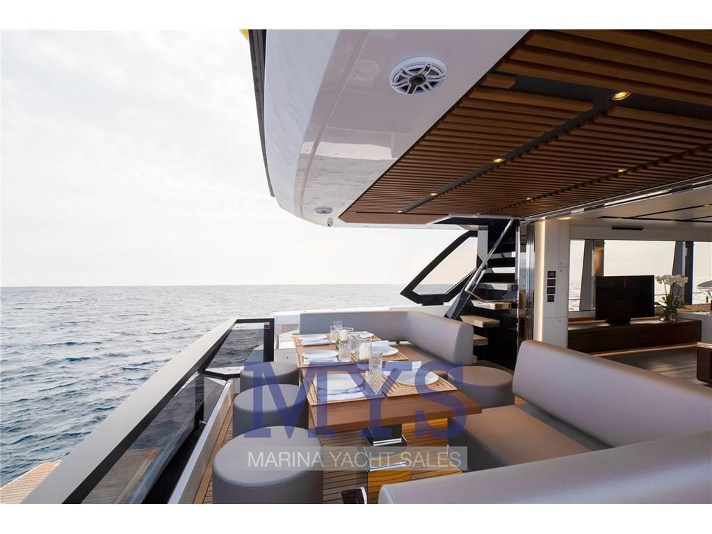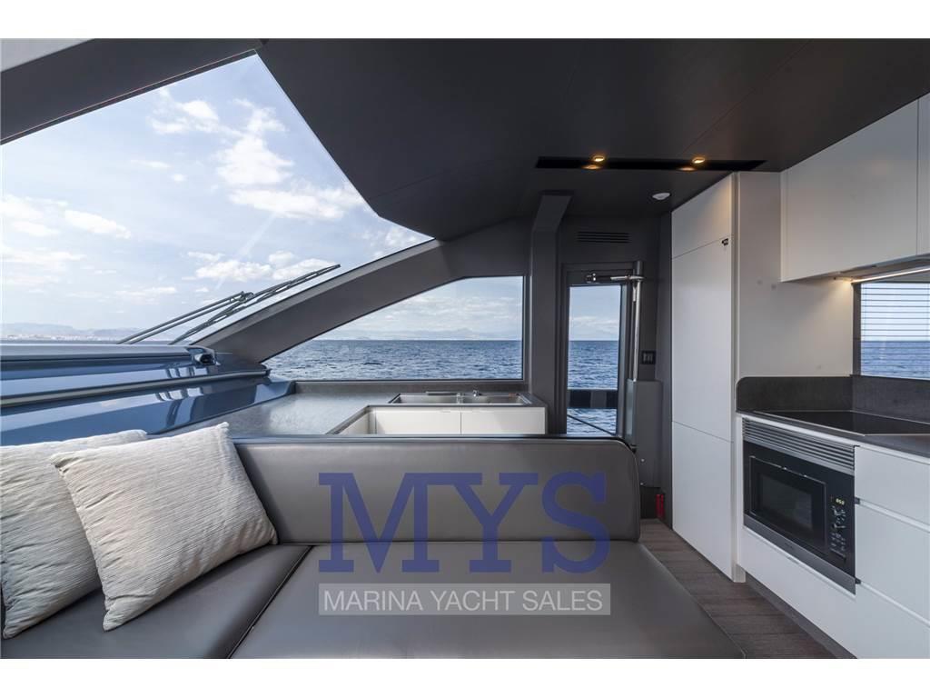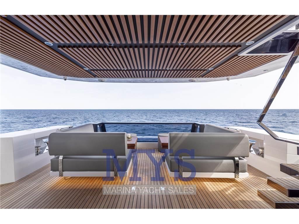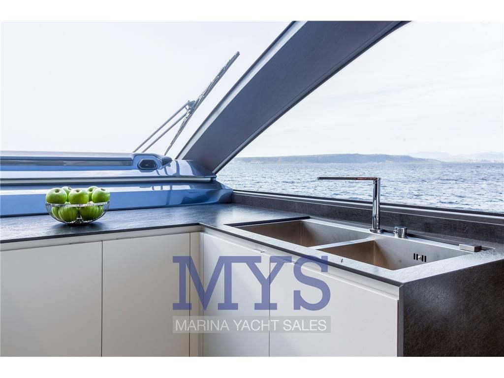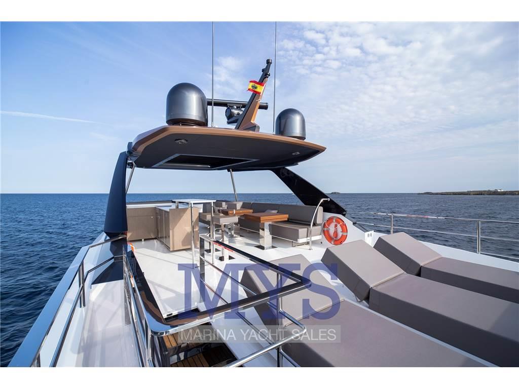 Notas internasCabina di prua con letto matrimoniale e bagno privato Cabina ospiti destra con letto matrimoniale alla francese e bagno Cabina ospiti sinistra con 2 letti singoli in piano e bagno Cabina armatoriale a centro barca tutto baglio con bagno privato Salone, cucina, sala da pranzo, bagno e plancia comando sul ponte di coperta Decorazione Deluxe standard Pavimento interno del ponte di coperta in legno Pavimento delle cabine del sottocoperta in moquette Cucina con frigorifero, lavastoviglie, forno/microonde e piano cottura a induzione Servizi igienici Tecma Cassaforte nella cabina armatoriale Tende del ponte di coperta a funzionamento elettrico Tende della cabina armatoriale a funzionamento elettrico Tende del sottocoperta a funzionamento manuale Notas de la instrumentaciónPacchetto elettronico:3 x Display Multifunzione 16" nel quadro di comando principale 2 x Display Multifunzione 16" nel flybridge Antenna radar open array HALO4, pilota automatico, trasduttore VHF nel quadro di comando principale e nel flybridge, e ricevitore AIS Sistema di gestione domotica con display da 16" Elica di poppa Intercettori Terza stazione di comando motori MAN nel pozzetto di poppa Presa 220v da Banchina con sistema Glendenning (2) Illuminazione indiretta nei passavanti Illuminazione indiretta nel flybridge Luci LED Dimmer per il salone e per il pozzetto di poppa Dimmer nel sottocoperta Luci subacquee (4) Hardtop con pannelli ad apertura elettrica, altoparlanti e illuminazione LED Installazione Wifi Elica di prua Flaps Faro orientabile Impianto audio del salone Yamaha Impianto audio della cabina armatoriale Yamaha Impianto audio del pozzetto Yamaha Impianto audio del flybridge e di prua Yamaha Impianto audio del sottocoperta Yamaha Calotta Dummy KVH TV6 (2) TV 50" nella cabina armatoriale TV 50" nel salone TV 32" nella cabina vip TV 32" nella cabina ospiti di destra TV 24" nella cabina ospiti di sinistra TV 24" nella cabina dell'equipaggio Videocamere nel pozzetto di poppa (2) e nella sala macchine (1) Videocamera aggiuntiva Mobilio del flybridge comprensivo di barbecue, lavandino e frigorifero Cantinetta per il vino Lavatrice e asciugatrice tutto in uno Aria condizionata 144.000 BTU (Tropical) Riscaldamento Piattaforma idraulica Tenderlift Passerella idraulica con corrimano automatici Sistema di stabilizzatori per pinne Sleipner Generatori 2 x 20,5 kW 50 Hz Notas de armamentoAncora in acciaio galvanizzatoTendalino bimini di prua elettrico Hardtop in vernice metallizzata Cabina superiore in vernice metallizzata Sistema di accessori per la navigazione in vernice metallizzata Stazione flybridge in vernice metallizzata Corrimano di prua in carbonio Tavolo del flybridge con piedistallo fisso in teak Tendalino del pozzetto elettrico Tendalino bimini di prua manuale Linea di galleggiamento Pavimento del pozzetto in teak Pavimento dei passavanti in teak Piattaforma da bagno fissa Porta Waterlight dal salone al corridoio di dritta Cancelli d'imbarco laterali (2) Telo di copertura del parabrezza Coperture della cuscineria esterna e dei tavoli Cuscineria da esterno del pozzetto, del flybridge e del prendisole di prua Tetto del pozzetto di poppa rivestito con listelli in teak Palo delle luci di navigazione GRP color bianco Astondoa Stazione flybridge color bianco Astondoa Verricelli di ormeggio di poppa (2) Pavimento di prua e dei passavanti in teak Pavimento del flybridge in teak Pavimento della piattaforma da bagno in teak Pavimento delle cabine del sottocoperta in legno Tavoli del pozzetto con piedistallo elettrico Tavolo di prua con piedistallo elettrico Doccia esterna |