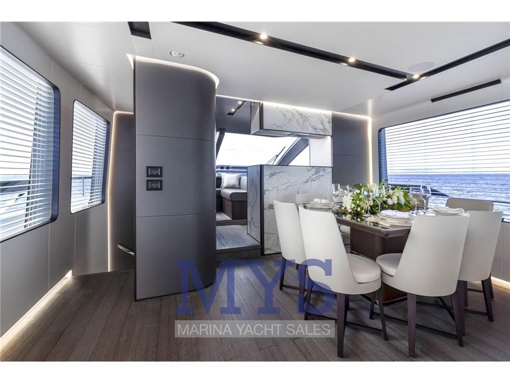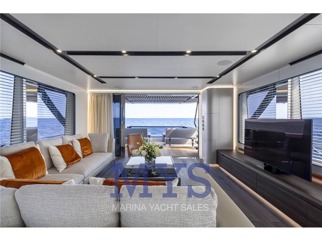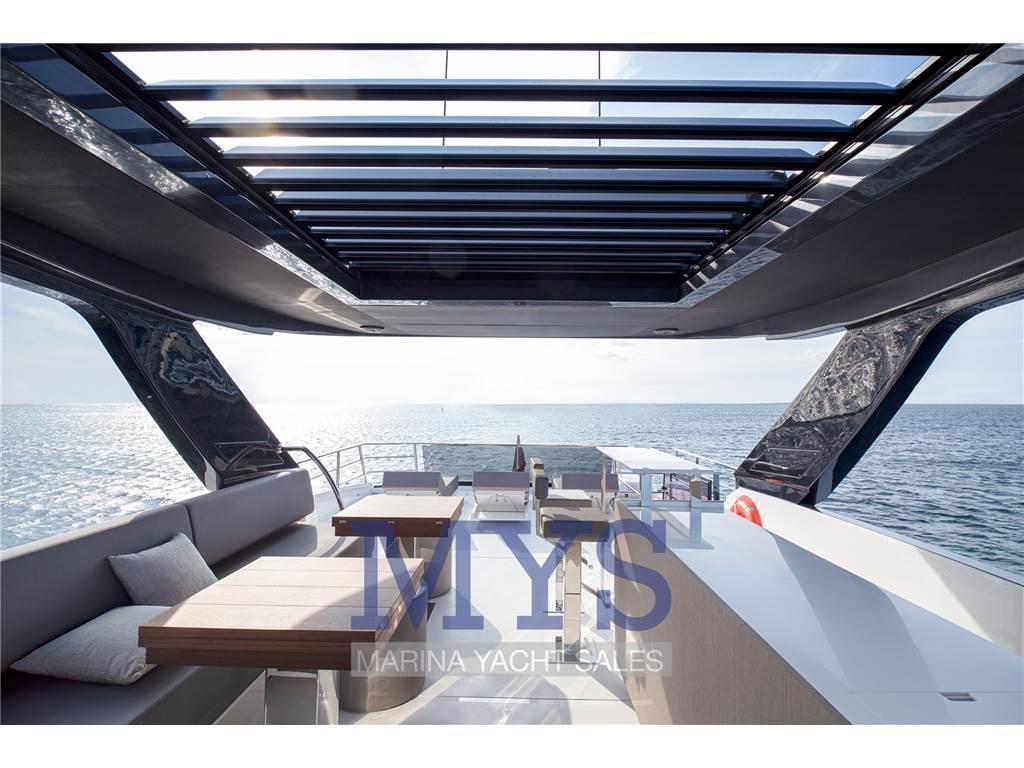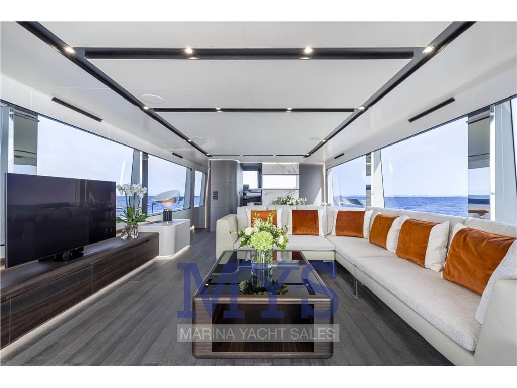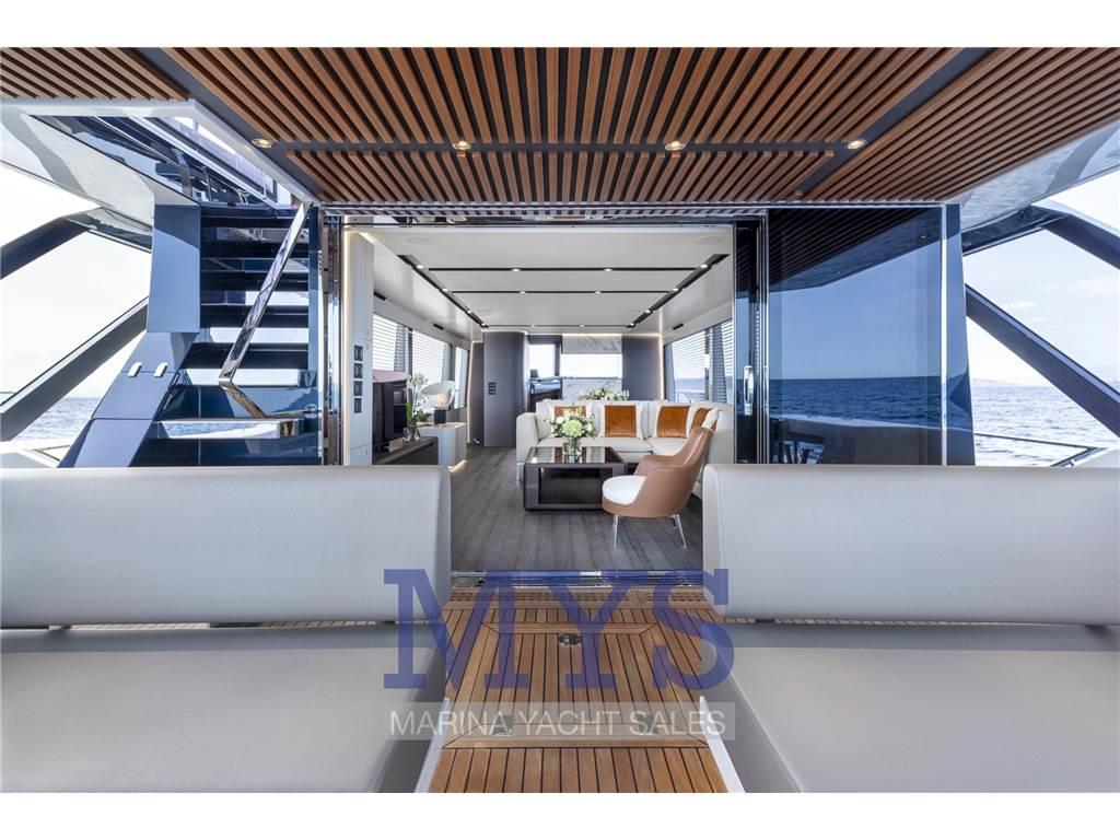 Notas internasCabina di prua con letto matrimoniale e bagno privato Cabina ospiti destra con letto matrimoniale alla francese e bagno Cabina ospiti sinistra con 2 letti singoli in piano e bagno Cabina armatoriale a centro barca tutto baglio con bagno privato Salone, cucina, sala da pranzo, bagno e plancia comando sul ponte di coperta Decorazione Deluxe standard Pavimento interno del ponte di coperta in legno Pavimento delle cabine del sottocoperta in moquette Cucina con frigorifero, lavastoviglie, forno/microonde e piano cottura a induzione Servizi igienici Tecma Cassaforte nella cabina armatoriale Tende del ponte di coperta a funzionamento elettrico Tende della cabina armatoriale a funzionamento elettrico Tende del sottocoperta a funzionamento manuale Notas de la instrumentaciónPacchetto elettronico:3 x Display Multifunzione 16" nel quadro di comando principale 2 x Display Multifunzione 16" nel flybridge Antenna radar open array HALO4, pilota automatico, trasduttore VHF nel quadro di comando principale e nel flybridge, e ricevitore AIS Sistema di gestione domotica con display da 16" Elica di poppa Intercettori Terza stazione di comando motori MAN nel pozzetto di poppa Presa 220v da Banchina con sistema Glendenning (2) Illuminazione indiretta nei passavanti Illuminazione indiretta nel flybridge Luci LED Dimmer per il salone e per il pozzetto di poppa Dimmer nel sottocoperta Luci subacquee (4) Hardtop con pannelli ad apertura elettrica, altoparlanti e illuminazione LED Installazione Wifi Elica di prua Flaps Faro orientabile Impianto audio del salone Yamaha Impianto audio della cabina armatoriale Yamaha Impianto audio del pozzetto Yamaha Impianto audio del flybridge e di prua Yamaha Impianto audio del sottocoperta Yamaha Calotta Dummy KVH TV6 (2) TV 50" nella cabina armatoriale TV 50" nel salone TV 32" nella cabina vip TV 32" nella cabina ospiti di destra TV 24" nella cabina ospiti di sinistra TV 24" nella cabina dell'equipaggio Videocamere nel pozzetto di poppa (2) e nella sala macchine (1) Videocamera aggiuntiva Mobilio del flybridge comprensivo di barbecue, lavandino e frigorifero Cantinetta per il vino Lavatrice e asciugatrice tutto in uno Aria condizionata 144.000 BTU (Tropical) Riscaldamento Piattaforma idraulica Tenderlift Passerella idraulica con corrimano automatici Sistema di stabilizzatori per pinne Sleipner Generatori 2 x 20,5 kW 50 Hz Notas de armamentoAncora in acciaio galvanizzatoTendalino bimini di prua elettrico Hardtop in vernice metallizzata Cabina superiore in vernice metallizzata Sistema di accessori per la navigazione in vernice metallizzata Stazione flybridge in vernice metallizzata Corrimano di prua in carbonio Tavolo del flybridge con piedistallo fisso in teak Tendalino del pozzetto elettrico Tendalino bimini di prua manuale Linea di galleggiamento Pavimento del pozzetto in teak Pavimento dei passavanti in teak Piattaforma da bagno fissa Porta Waterlight dal salone al corridoio di dritta Cancelli d'imbarco laterali (2) Telo di copertura del parabrezza Coperture della cuscineria esterna e dei tavoli Cuscineria da esterno del pozzetto, del flybridge e del prendisole di prua Tetto del pozzetto di poppa rivestito con listelli in teak Palo delle luci di navigazione GRP color bianco Astondoa Stazione flybridge color bianco Astondoa Verricelli di ormeggio di poppa (2) Pavimento di prua e dei passavanti in teak Pavimento del flybridge in teak Pavimento della piattaforma da bagno in teak Pavimento delle cabine del sottocoperta in legno Tavoli del pozzetto con piedistallo elettrico Tavolo di prua con piedistallo elettrico Doccia esterna |