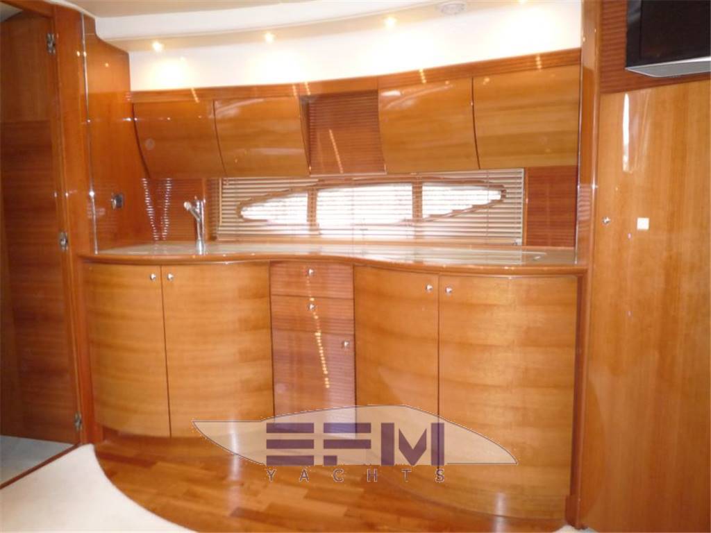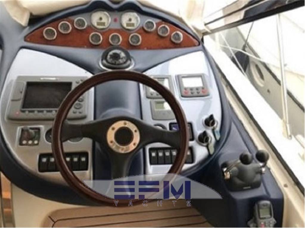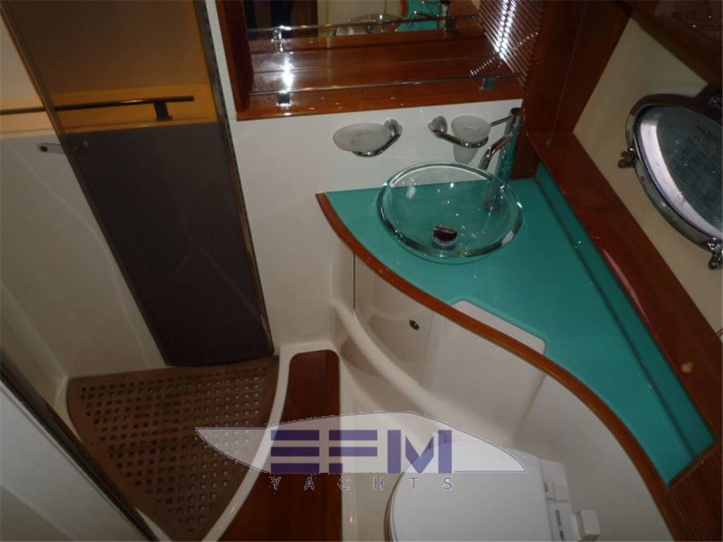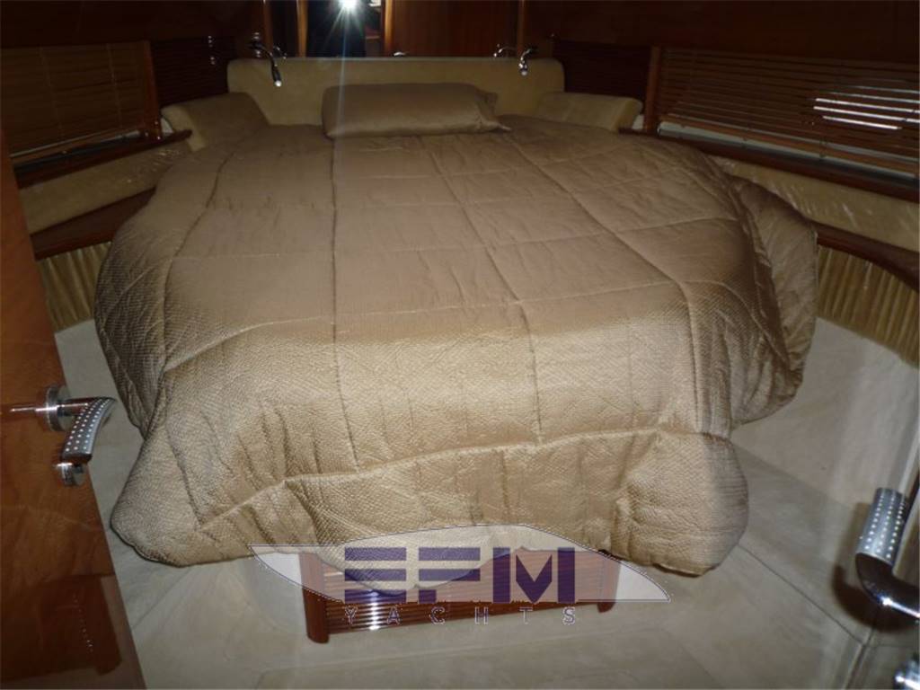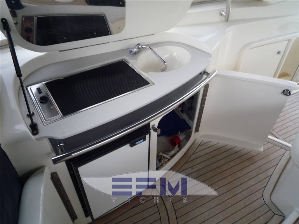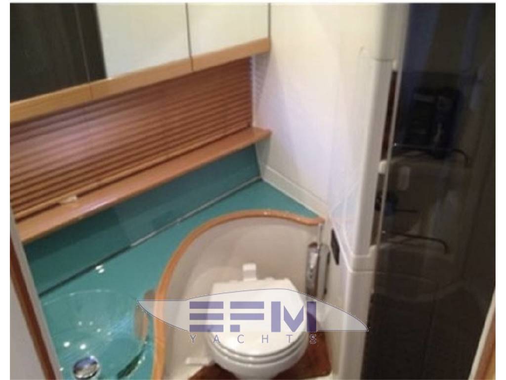 Notas internas- VIP CABIN ENSUITE ON BOW - FULL BEAM MASTER CABIN ENSUITE AFT Beautiful interior with gloss cherry wood and white carpet in the cabins - Bright VIP cabin forward with island bed and private bathroom with frosted glass sink and shower - The living room and consists of a large U-shaped sofa covered fabric ivory and wood table with glass top - as opposed to the full kitchen with larder and comfortable with hanging cupboards and drawers, stainless steel double sink, large fridge with freezer, 4 burner stove, microwave Wirlpool with tv lcd 32 'stereo and sony cd - Aft large and small suites spacious full beam master bedroom with detached island, cherry wood furniture polish and a private bathroom with shower box - teak cockpit with galley unit with sink, refrigerator teak table and sofa with u for 6 people, large aft deck above the garage for the tender and gateway to the UP&DOWN swimming platform with teak. Notas de la instrumentaciónELECTRONIC RAYMARINE: Autopilot, Echo sounder, GPS, Plotter, Plotter with GPS, Radar, Rudder angle indicator, Sumlog, VHF radio - GPS, VHF, SAT antenna - Electric light - Electric/hydraulic trim tabs - Bow and stern thruster - MASE 8kw Generator - Shore power 230V - Opening soft top - Electric opening tender garage - Hydraulic gangway rectratil -Notas de armamento12V socket, 220V socket, Anchor, Anchor locker, Battery, Battery charger, Bilge pump autoatically, Electric bilge pump, Electric Bow windlass, Pressure water pump, 2 Refrigerator, Anchor chain, Swimming ladder, Swimming Platform up & down, Bow cushions, Bow and stern thruster, Cockpit cushions, Cockpit table, Deck hatch, Pressure washer, Color Led TV, Fender, Mooring line, Electric gangway, Stern door to bath platform, Air conditioning , Environmental control system, Speaker, Cushions, Radio, Satellite antenna, Sun cushion on the bow, Anti-fouling, Water heater, other extras , Bimini tent aft, Camper cover awing -Safety Bilge alarm, Engine alarm, Night lighting, navigation lights Equipment Owner's cabin, Guest cabin, Equipment rack, Interior navigation station, Saloon, Teak swimming up & down platform, Teak cockpit Pantry Double sink, Stove, Refrigerator, Ceramic hob, Sink unit |
