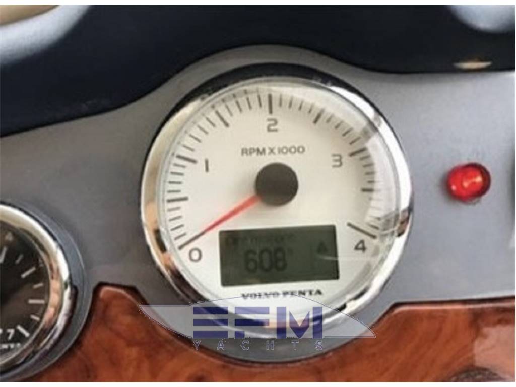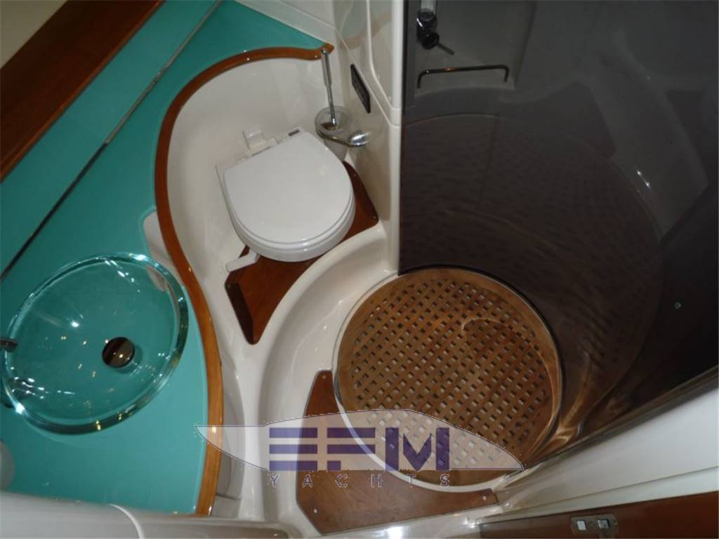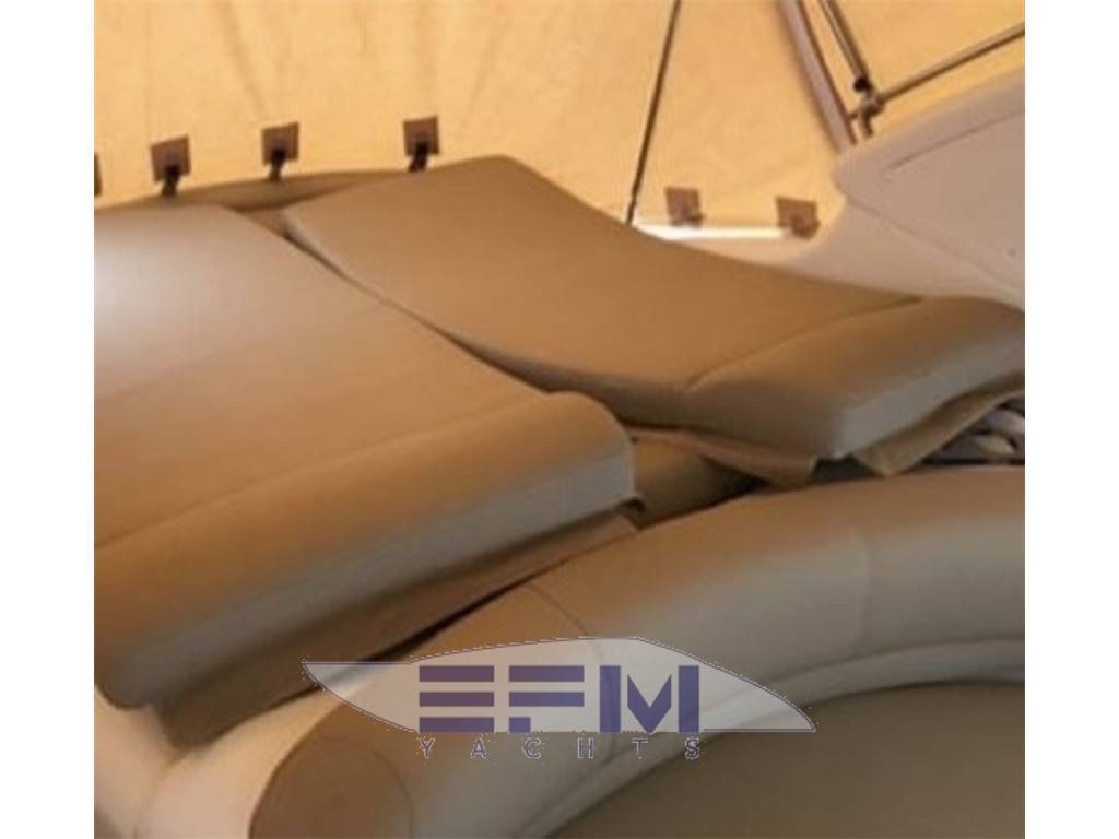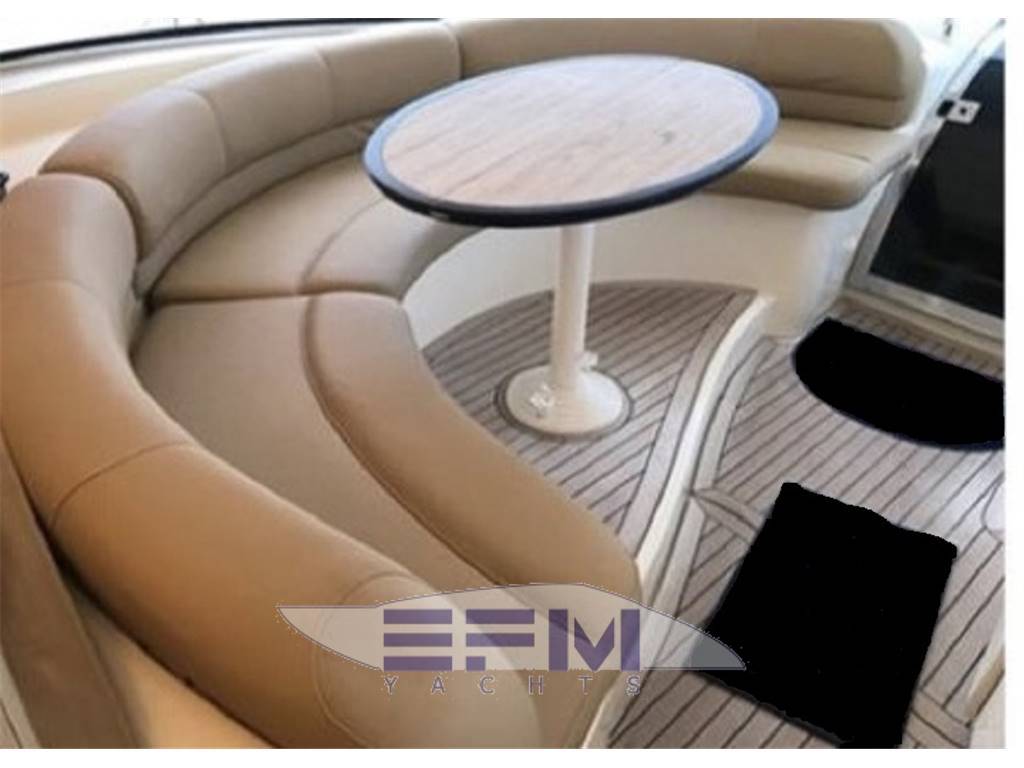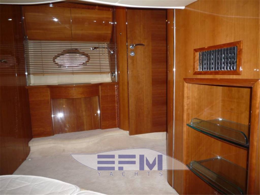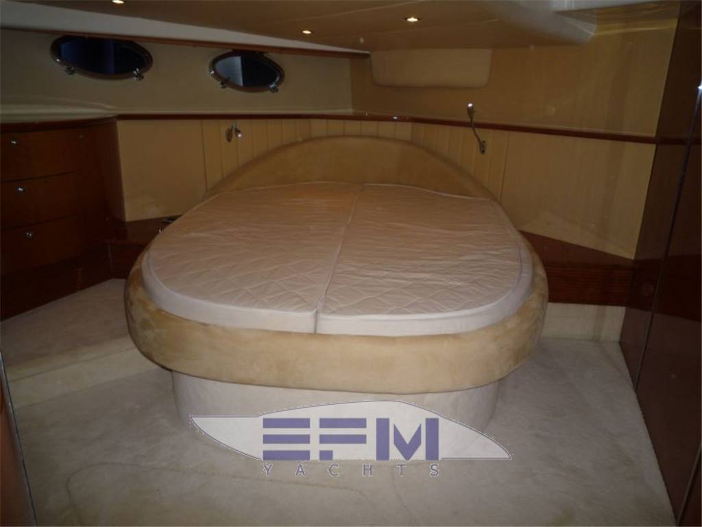 Notas internas- VIP CABIN ENSUITE ON BOW - FULL BEAM MASTER CABIN ENSUITE AFT Beautiful interior with gloss cherry wood and white carpet in the cabins - Bright VIP cabin forward with island bed and private bathroom with frosted glass sink and shower - The living room and consists of a large U-shaped sofa covered fabric ivory and wood table with glass top - as opposed to the full kitchen with larder and comfortable with hanging cupboards and drawers, stainless steel double sink, large fridge with freezer, 4 burner stove, microwave Wirlpool with tv lcd 32 'stereo and sony cd - Aft large and small suites spacious full beam master bedroom with detached island, cherry wood furniture polish and a private bathroom with shower box - teak cockpit with galley unit with sink, refrigerator teak table and sofa with u for 6 people, large aft deck above the garage for the tender and gateway to the UP&DOWN swimming platform with teak. Notas de la instrumentaciónELECTRONIC RAYMARINE: Autopilot, Echo sounder, GPS, Plotter, Plotter with GPS, Radar, Rudder angle indicator, Sumlog, VHF radio - GPS, VHF, SAT antenna - Electric light - Electric/hydraulic trim tabs - Bow and stern thruster - MASE 8kw Generator - Shore power 230V - Opening soft top - Electric opening tender garage - Hydraulic gangway rectratil -Notas de armamento12V socket, 220V socket, Anchor, Anchor locker, Battery, Battery charger, Bilge pump autoatically, Electric bilge pump, Electric Bow windlass, Pressure water pump, 2 Refrigerator, Anchor chain, Swimming ladder, Swimming Platform up & down, Bow cushions, Bow and stern thruster, Cockpit cushions, Cockpit table, Deck hatch, Pressure washer, Color Led TV, Fender, Mooring line, Electric gangway, Stern door to bath platform, Air conditioning , Environmental control system, Speaker, Cushions, Radio, Satellite antenna, Sun cushion on the bow, Anti-fouling, Water heater, other extras , Bimini tent aft, Camper cover awing -Safety Bilge alarm, Engine alarm, Night lighting, navigation lights Equipment Owner's cabin, Guest cabin, Equipment rack, Interior navigation station, Saloon, Teak swimming up & down platform, Teak cockpit Pantry Double sink, Stove, Refrigerator, Ceramic hob, Sink unit |